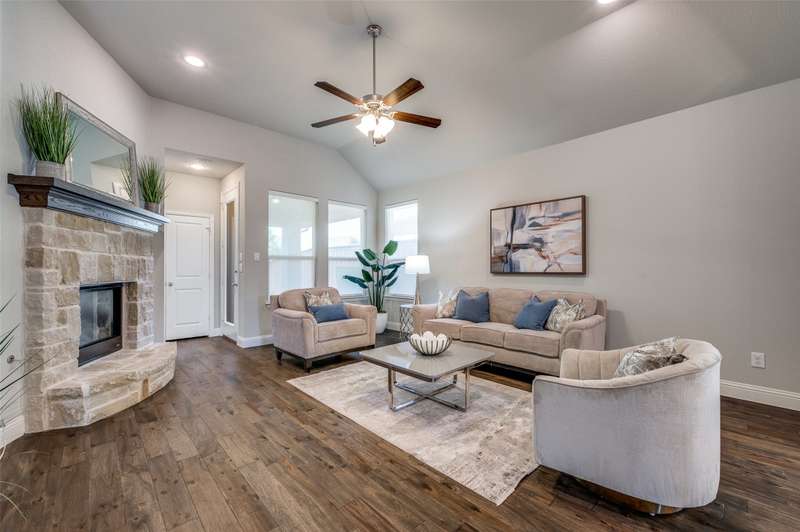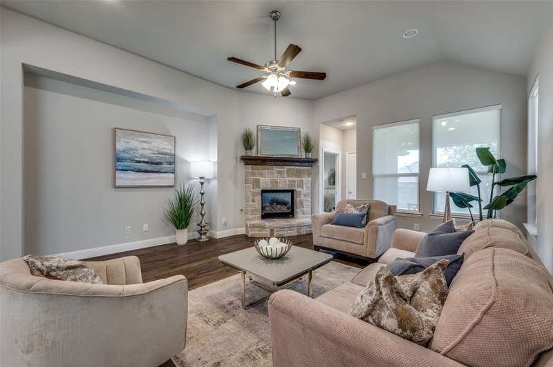 Like new, this Charming English Cottage design from Highland Homes offers a perfect blend of elegance and modern comfort.The heart of this home, the kitchen, is a chef's delight, featuring stainless steel appliances, pristine white cabinets, and granite countertops with a convenient eat-in breakfast bar. The oversized primary bedroom provides a tranquil retreat with a dedicated sitting area. Its en-suite primary bath boasts double vanities and a generous walk-in closet.Home features generous size Study, perfect for dedicated home office work or flex room. This home also features a generously sized study, perfect for a dedicated home office or a versatile game room. The secondary bedrooms are spacious and thoughtfully located in a separate area from the primary suite, ensuring privacy for all. Step outside to a spacious backyard, complete with an extended outdoor living area, perfect for entertaining or unwinding.The home is tucked within a vibrant and growing master-planned community surrounded by scenic hike and bike trails, stocked fishing ponds, disc golf, and more. With two resort-style pools, a state-of-the-art gym, and year-round neighborhood events, theres truly something for everyone.
