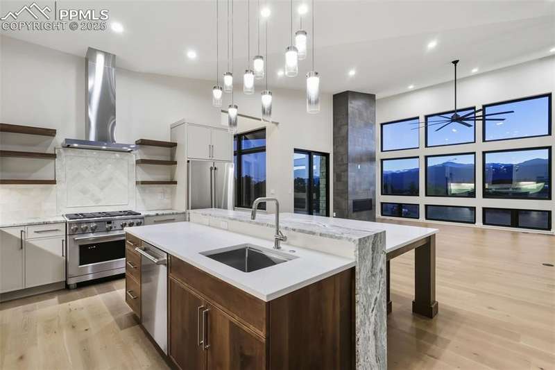 You cannot get a better view, MASSIVE Pikes Peak, Air Force Academy & Front Range Vistas await * Introducing an architectural masterpiece that blends striking Mountain Modern design & state of the art interior finishes * From the moment you drive up, this spectacular residence will not disappoint, curb appeal is a "10" * This luxury residence will captivate your senses & check all boxes * Featuring 4 spacious bedrooms, 4 luxurious baths & sleek oversized 3-car garage with custom, modern doors, perfectly positioned on a gently sloping lot to maximize privacy & sought after Rocky Mountain Views * With bold rooflines, soaring ceilings, expansive walls of glass, every space is flooded with natural light, designed to frame the massive views * The heart of the home is a chef’s dream kitchen featuring high-end "Cafe" appliances, custom cabinetry, oversized center island & the solid surface tops are gorgeous, ideal for both daily living & expert entertaining * Open-concept layout flows seamlessly into the great room featuring a modern gas fireplace with full wall tile accenting, custom folding slider doors invite you to a covered, outdoor living area, creating the perfect indoor-outdoor connection for enjoying Colorado’s four seasons, sunsets & majestic mountains * The primary suite is a true retreat, complete with a spa-inspired bath, oversized walk-in closet & private deck access. 2nd main level bedroom & separate office are a bonus * The lower level offers 10' ceiling heights, flexible living with 2 additional bedrooms including ensuite baths, family room, wet bar & billiard / media spaces with walk-out access to a private patio, yes with huge views * Multiple Decks & Patios * From refined materials to meticulous craftsmanship, every detail has been thoughtfully curated for luxury, comfort and stlish impact * One-of-a-kind modern sanctuary with privacy & views in every direction * Home is BRAND NEW and ready for immediate occupancy, act now - this home is a stunner, WOW!