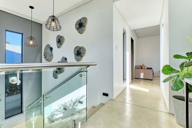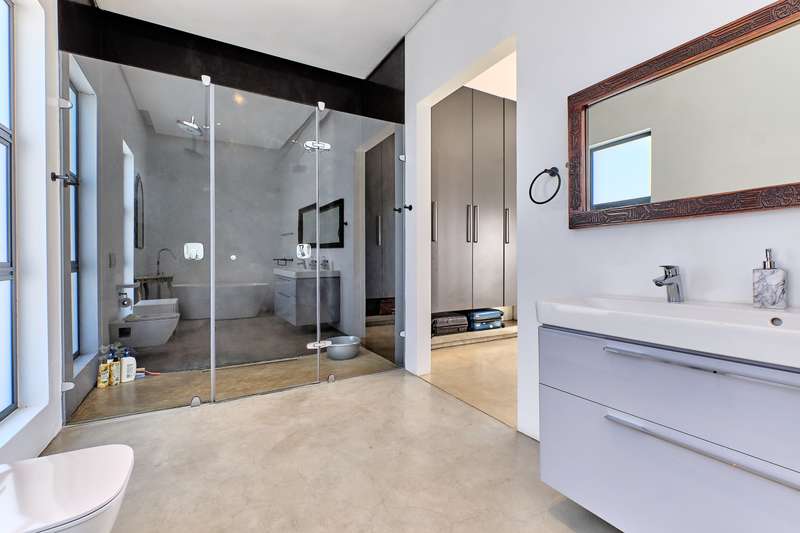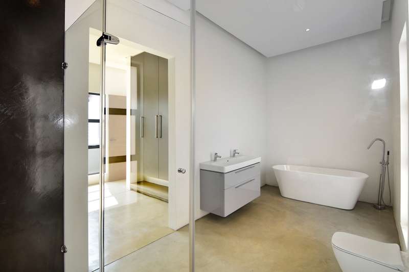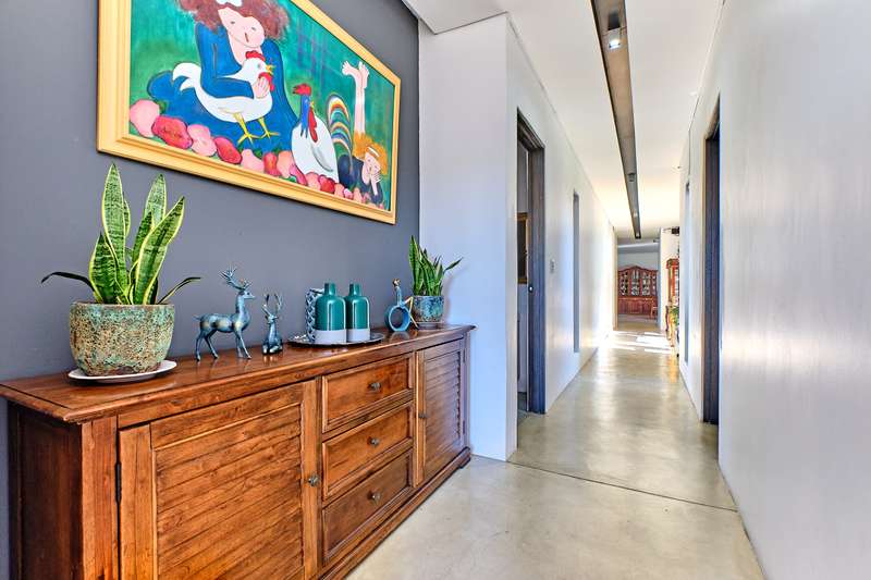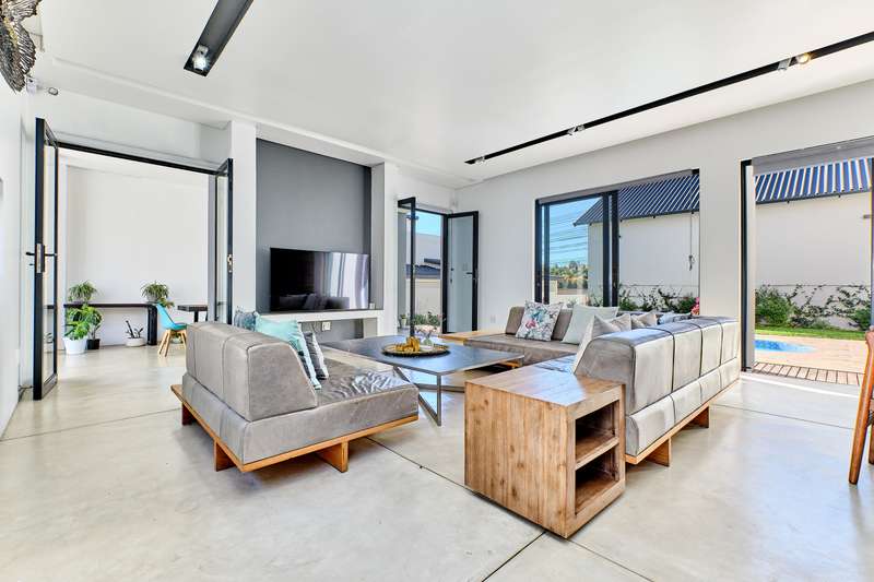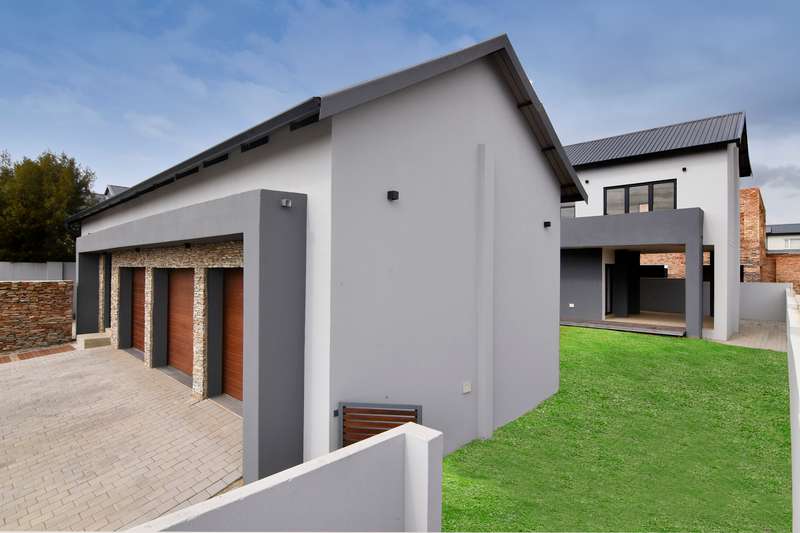 This lovely home offers 4 bedrooms, all of which have their own en-suite bathrooms, 3 of which are situated upstairs with the 4th guest bedroom downstairs that has its own entrance. Screed flooring throughout the home with Geberit and Grohe finishes. Large open plan living area leads off the modern kitchen. Stacker doors open onto the covered patio and garden. Triple garage, staff accommodation, swimming pool and back-up power complete this beautiful home. Disclaimer: Whilst every care has been taken in the preparation of this listing we cannot be held responsible for any errors/ omissions that may occur.
