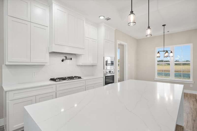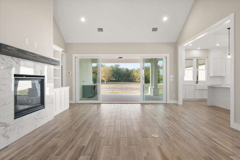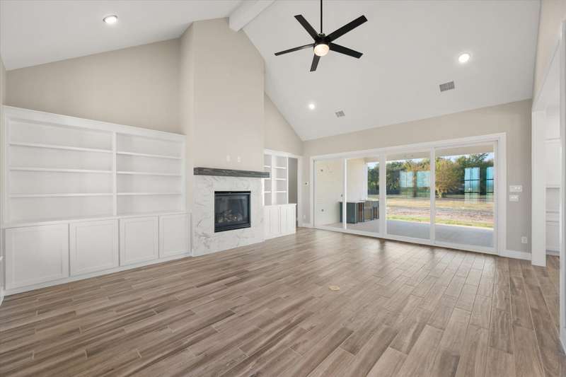 This beautifully designed four-bedroom, three and a half bath home sits on a spacious one-acre lot and features a thoughtful split floor plan, combining luxury, efficiency, and everyday comfort. The open concept living area boasts a high vaulted ceiling, with tray ceilings adding elegance to both the kitchen and primary bedroom. The chefs kitchen is equipped with Bosch appliances, a large island for casual dining, custom cabinetry, and Moen plumbing fixtures. The primary suite offers a spacious mud-set shower, a freestanding tub, and dual vanities for a spa-like retreat. Bedrooms two and three share a convenient Jack-and-Jill bathroom, while the fourth bedroom enjoys privacyperfect for guests or a home office. Built with quality in mind, this home includes open-cell foam insulation, two HVAC units, a fully insulated three-car garage, and two tankless water heaters located safely in the garage. Its also pre-wired for an electric vehicle charger. Exterior highlights include a welcoming front porch with a raised seam metal roof and 5' by 8' front door, a brick and board-and-batten faade, and full brick on the remaining three sides. The large back porch features an outdoor kitchen and a 15' by 8' sliding glass door, perfect for entertaining. Additional features include double hung Low E vinyl windows, a front yard light pole, cabinetry in the family and utility rooms, and insulated garage doors. This home offers a rare combination of elegance, efficiency, and functionality, an ideal choice for those looking to enjoy upscale living in a peaceful setting.