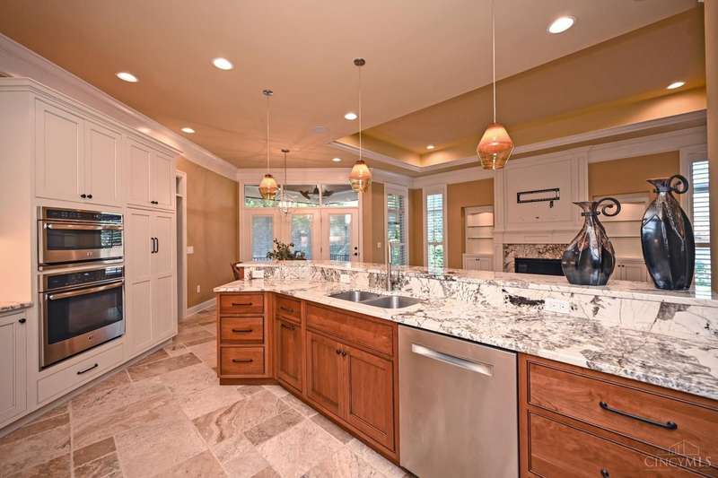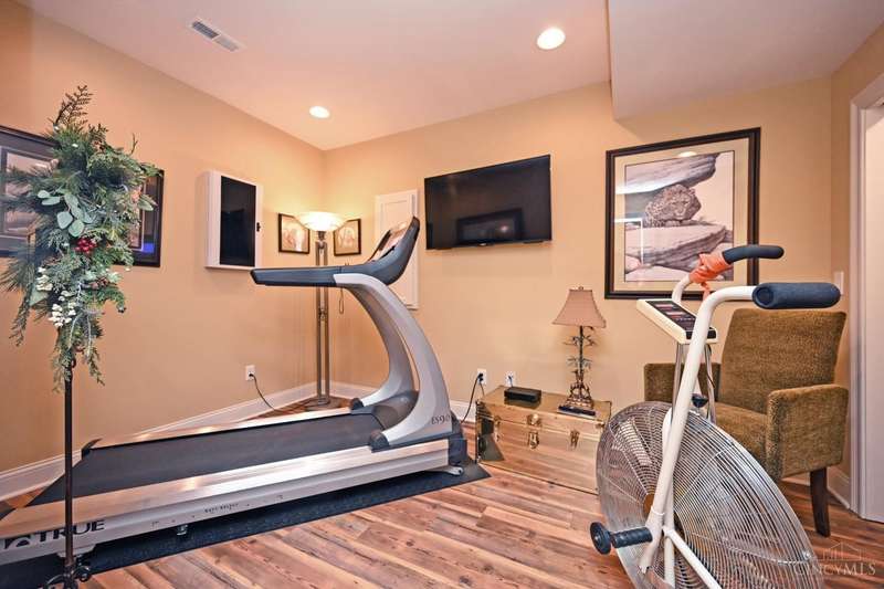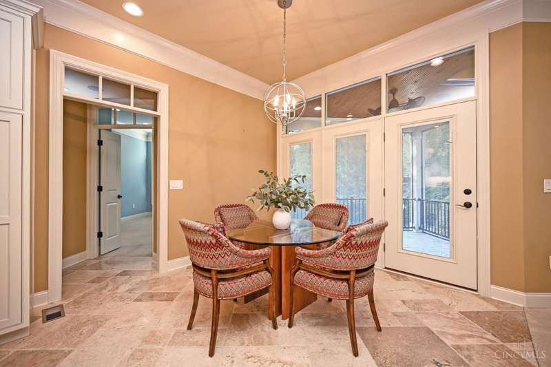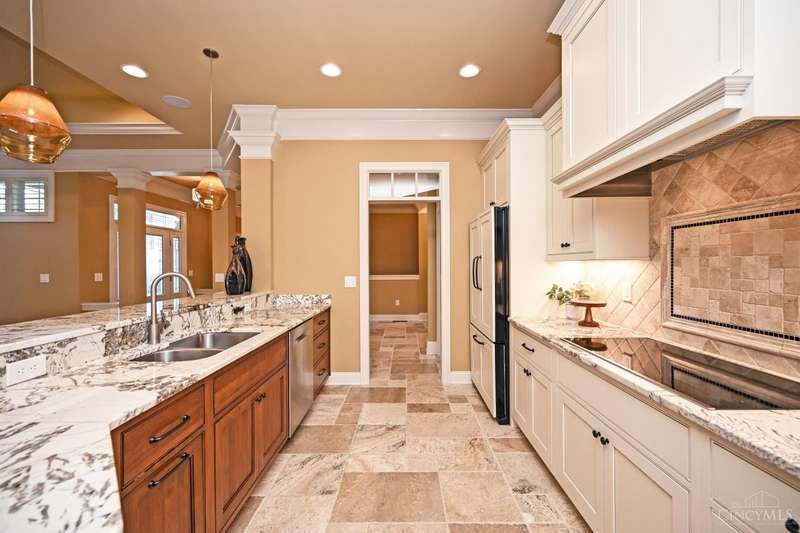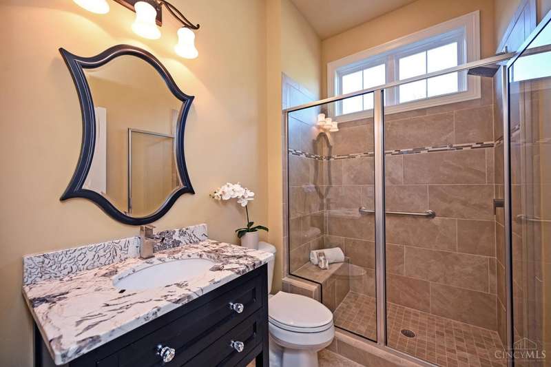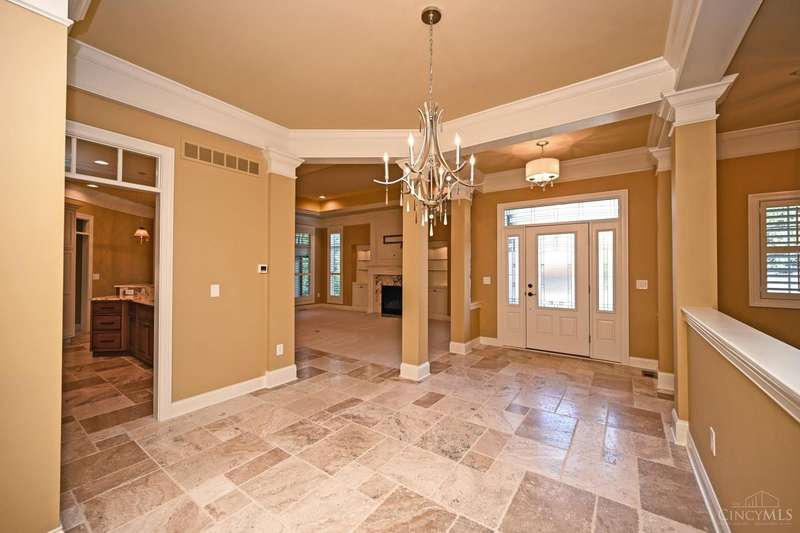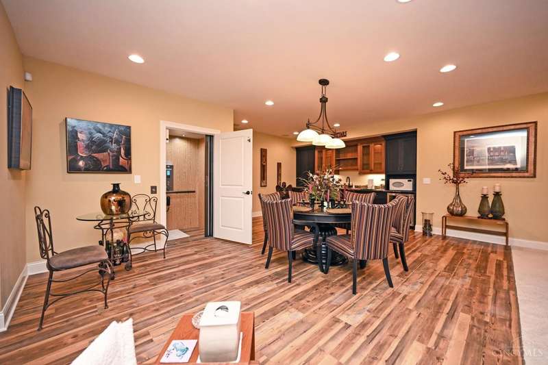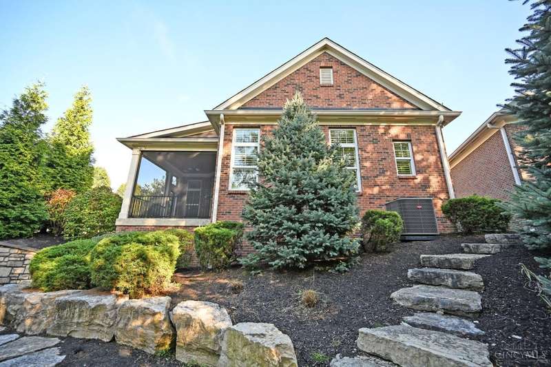 Stunning 2017 Traditions Ranch with Elevator in gated Harbour Town Village! 3,633 SF of luxury living with soaring ceilings, crown molding, tray ceiling, gas fireplace & custom built-ins. Elegant travertine flooring, custom closets & post-build upgrades. Gourmet kitchen with inset cabinetry, granite & stone backsplash. Primary suite & breakfast room open to screened porch with wooded & water views. Spacious Everyday Room (laundry & pantry) with walkout to patio. Finished LL with 3rd BR, full bath, wet bar, exercise room & storage. Upscale, low-maintenance living in a prime location across from Liberty Center & minutes to I-75!