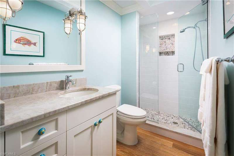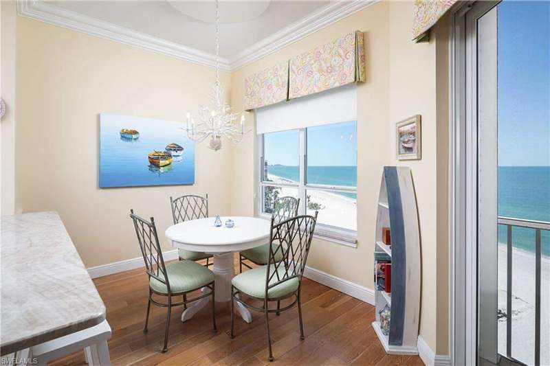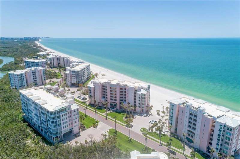 THE FIRST DIRECT BEACHFRONT D-UNIT PENTHOUSE OFFERED IN BAREFOOT BEACH IN 5 YEARS! This beautifully renovated unit offers one of the 2 largest floor plan types in the Barefoot condos! Indulge in sweeping, panoramic views of the Gulf and breathtaking sunsets. This coastal delight features an open floor plan spanning 2,266 sq ft under air, with 3 spacious bedrooms, 3 bathrooms, wood flooring, & extra-high ceilings exclusive to penthouses. Equipped with full storm protection, this unit boasts hurricane impact windows and sliders, electric hurricane shutters, and a newly installed roof on the building. Relax and unwind on your screened-in lanai, where you'll enjoy views of boaters cruising by, along with occasional sightings of dolphins and manatees in the distance. The spacious chef's kitchen includes beautiful quartz countertops, crisp white cabinetry, & high-end stainless-steel appliances. Adjacent to the kitchen, you'll find a formal dining area with custom built-ins and a wine fridge, ideal for entertaining guests. The well-designed split floor plan ensures privacy and comfort, with two guest bedrooms located at the front of the unit, while the serene primary suite is positioned on the waterfront side offering a peaceful retreat with breathtaking Gulf views and private lanai access. The suite also features an expansive walk-in closet and a spa-like bath with dual vanities, a soaking tub, and a frameless glass shower. The Club at Barefoot Beach includes fine & casual dining, private pool, tennis courts, beachside food & beverage service, planned social activities & more (WITH A MEMBERSHIP). Nearby to the NEW CLUBHOUSE with state-of-the-art fitness center & resort-style pool. Enjoy 3 miles of Gulf-frontage, 2 beachside pools/spas, fitness center, 24-hour manned/gated entry & on-site mgmt. Located minutes to Mercato, Waterside & easy access to RSW Airport.