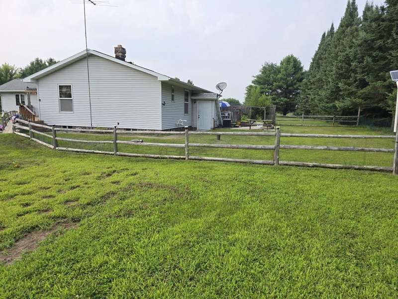 Claim your dream ranch-style home featuring three spacious bedrooms and two baths within 1,800 square feet. The kitchen flows into a large dining area, with hardwood floors and expansive windows showcasing stunning views. Set on an impressive 6.24 acres, this property is a private sanctuary. The family room opens directly to a large deck, perfect for entertaining or enjoying quiet evenings. The insulated 30 x 54 garage, heated by both an outdoor wood-burning furnace and a gas Modine, offers ample space for hobbies. With two adaptable 16 x 54 enclosed additions that can easily be converted into stables, versatility is at your fingertips. Additional features include a full basement, water softener, and tankless water heater for optimal efficiency. National Forest, ATV/UTV Trails, Hines Creek
