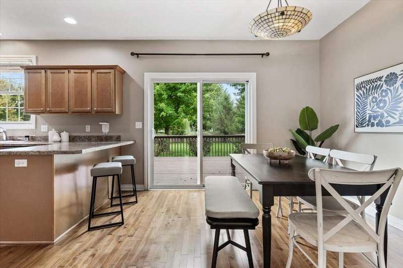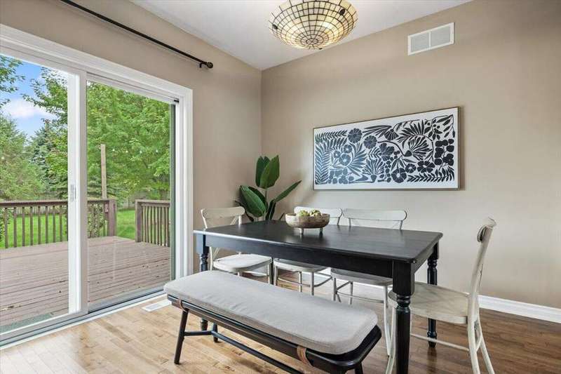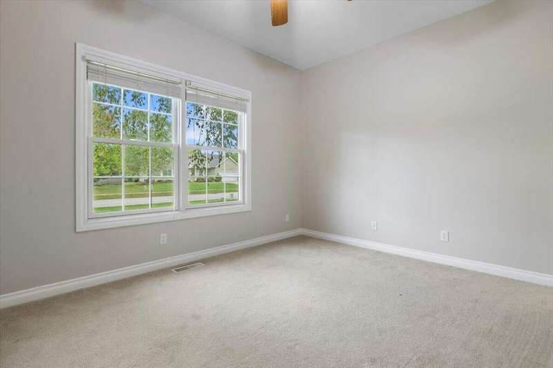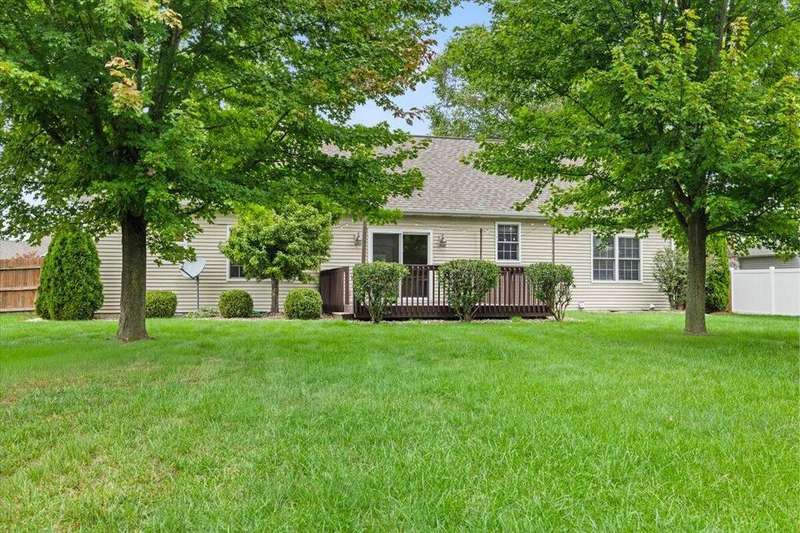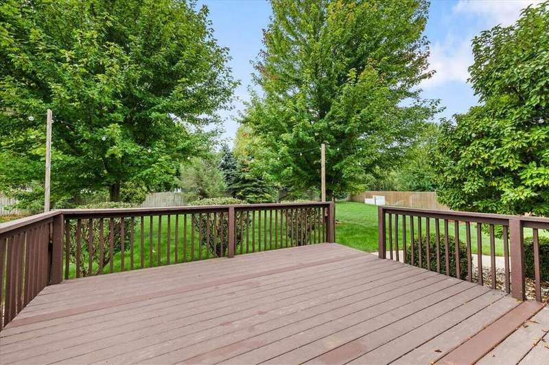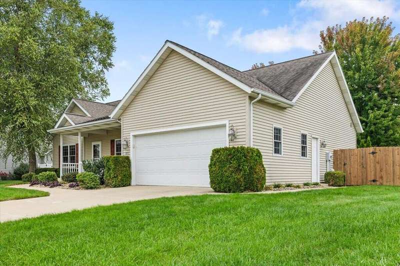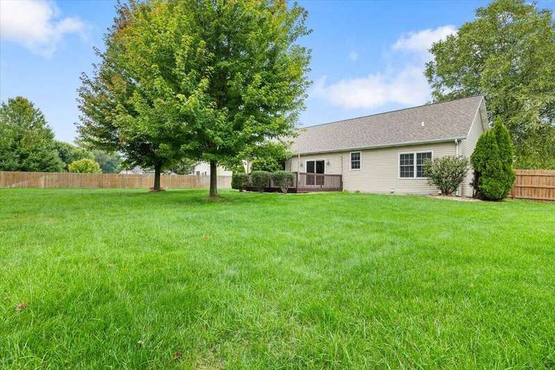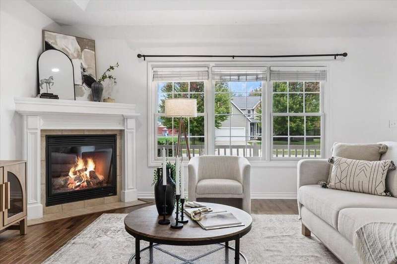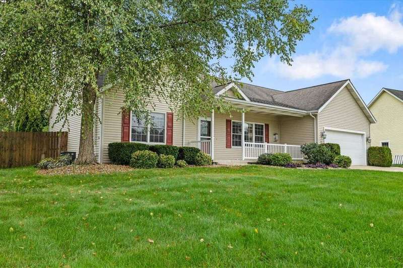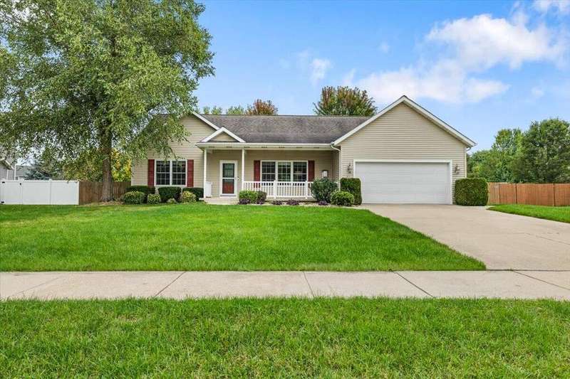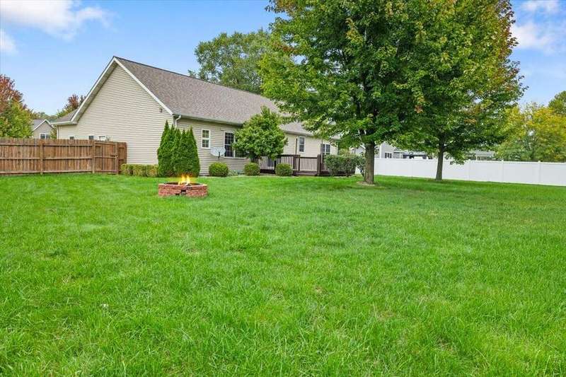 Be a part of the sought after Wyndstone community close to schools, library and parks. Covered front porch welcomes you to this 4 bedroom, 3 full bath ranch style home with attached 2 car garage. Main floor laundry for convenience. Washer/dryer included. Gorgeous hardwood floors in living room, dining area & kitchen. Gas log fireplace is located in the spacious living room w/large front windows letting in an abundance of natural light. Primary suite w/large walk-in closet & full bath w/dual sinks is located at one end of the home giving it privacy from the two bedrooms on the other side of the home. Kitchen has beautiful maple cabinets, pantry, dining area, newer stainless steel appliances & snack-bar for additional seating. Finished basement offers an oversized recreation room as well as a guest suite w/attached full bath, egress window & walk-in closet. Large unfinished storage area with a rinse tub. Slider in dining area leads to a deck in the spacious fenced backyard w/firepit. Underground sprinklers for a manicured lawn. Wonderful Lakeshore Schools neighborhood with sidewalks. Ranch style homes are rare in this neighborhood, so don't miss out on this opportunity.