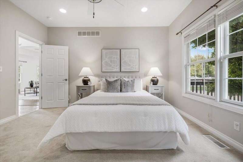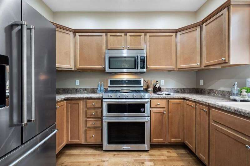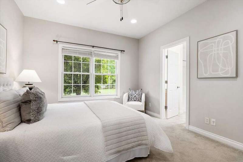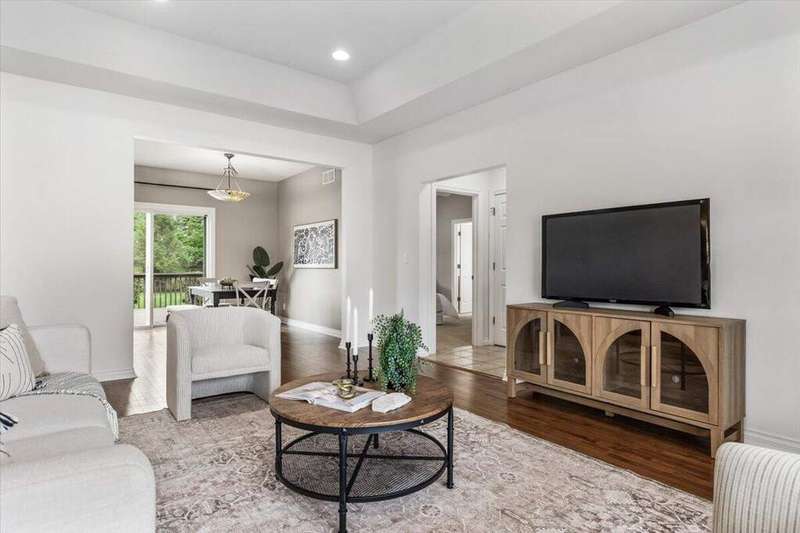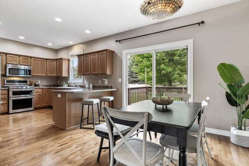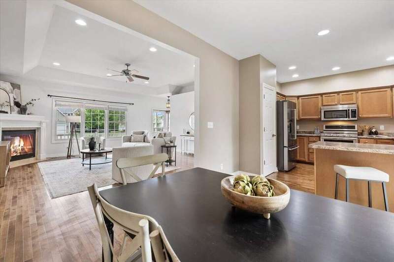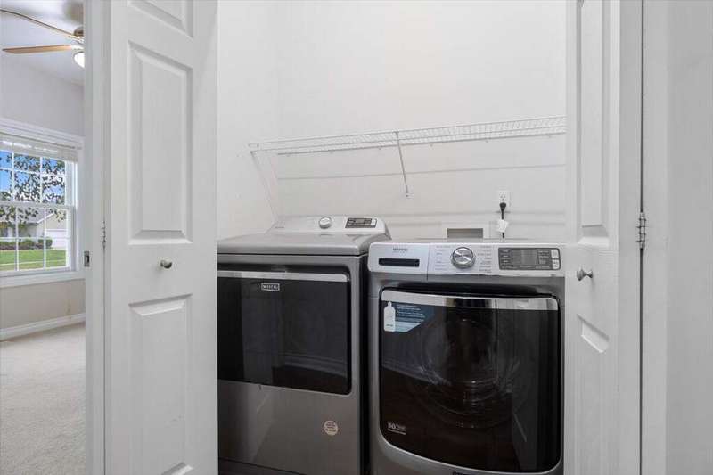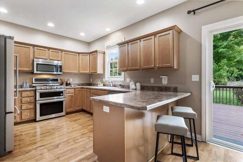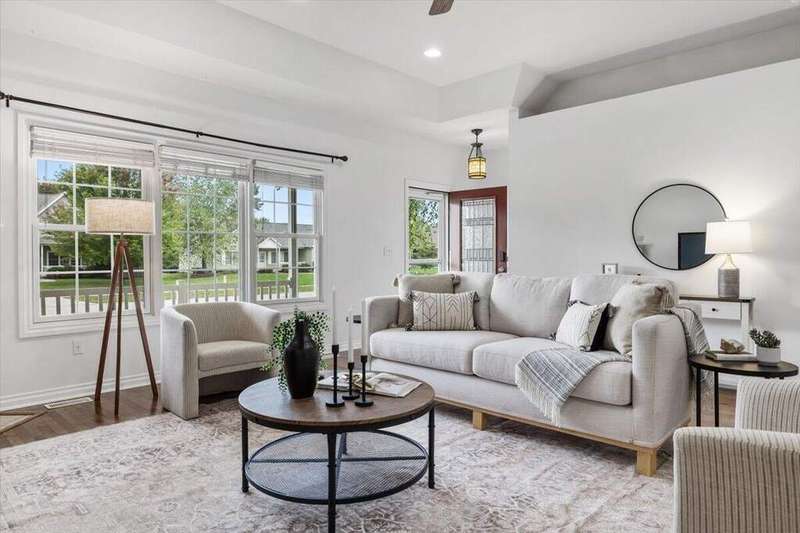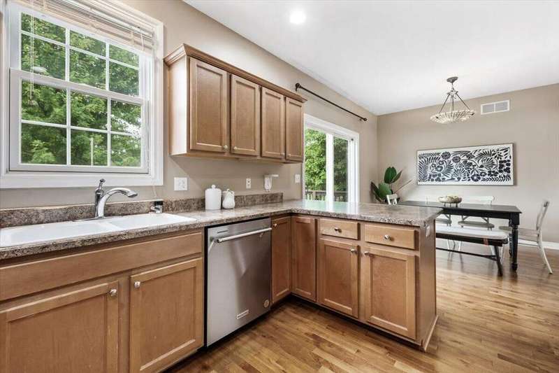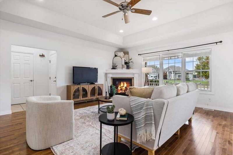 Be a part of the sought after Wyndstone community close to schools, library and parks. Covered front porch welcomes you to this 4 bedroom, 3 full bath ranch style home with attached 2 car garage. Main floor laundry for convenience. Washer/dryer included. Gorgeous hardwood floors in living room, dining area & kitchen. Gas log fireplace is located in the spacious living room w/large front windows letting in an abundance of natural light. Primary suite w/large walk-in closet & full bath w/dual sinks is located at one end of the home giving it privacy from the two bedrooms on the other side of the home. Kitchen has beautiful maple cabinets, pantry, dining area, newer stainless steel appliances & snack-bar for additional seating. Finished basement offers an oversized recreation room as well as a guest suite w/attached full bath, egress window & walk-in closet. Large unfinished storage area with a rinse tub. Slider in dining area leads to a deck in the spacious fenced backyard w/firepit. Underground sprinklers for a manicured lawn. Wonderful Lakeshore Schools neighborhood with sidewalks. Ranch style homes are rare in this neighborhood, so don't miss out on this opportunity.