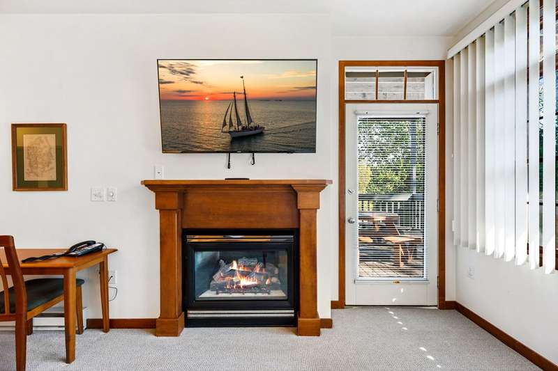 Here's your chance to own a beloved slice of Door County at Scandinavian Lodge. This inviting main-level unit offers 2 bedrooms and 2 bathrooms, with easy access to the tennis court, playground, and both indoor and outdoor pools--perfect for relaxation and fun. Each bedroom features an en-suite bath, with one highlighted by a whirlpool tub, and both open to an expansive private deck. Inside, the open-concept design includes a fully equipped kitchen, dining area, and a spacious living room with a cozy fireplace. Offered fully furnished with brand-new carpet, this turnkey unit also boasts a strong rental history, making it an excellent investment opportunity as well as a wonderful getaway.