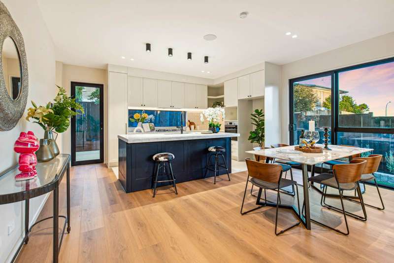 Embrace a modern coastal lifestyle in this brand-new residence proudly positioned in Macleans zone and just steps from the beach. Set on a freehold corner site of 241sqm (mol) with a well-designed 178sqm (mol) floor plan, the home is crafted for modern family living, boasting a spacious living area, 5 bedrooms, 3.5 bathrooms, including 2 ensuites, single garage and fenced yard with deck. Step inside to discover: Ground Floor: Spacious open-plan living and dining, seamlessly connected to a sleek designer kitchen with quality appliances. A private bedroom with ensuite and outdoor access is ideal for guests or extended family. The internal-access single garage with EV charger, and guest toilet are an added bonus. Upstairs: Four sun-filled bedrooms, including a luxurious master suite with walk-in wardrobe and ensuite. A cosy sitting area, perfect for reading or relaxing. Additional family bathroom for convenience. Outdoor Living: Fenced, low-maintenance backyard with a sunny deck – perfect for entertaining or unwinding. Key Features: • 2-level brand-new freehold modern home • 2 living areas + designer kitchen with high quality appliances. • 5 bedrooms, 3.5 bathrooms including 2 ensuites • Internal-access single garage with EV charger plus extra parking space • Gas cooking, integrated sound system, heat pump and double glazing • Alarm system, cameras, digital doorbell and keyless entry Location Highlights: • In-zone for Bucklands Beach Primary, Bucklands Beach Intermediate and Macleans College – all within walking distance • Just minutes to Highland Park with both Woolworths and Pak’n Save, dining and essentials. • Close to Half Moon Bay Marina with shopping and dining options, and Howick Golf Club • Only a 5-minute stroll to the beach This brand-new coastal haven delivers the perfect blend of luxury, location, excellent education opportunities and a beach lifestyle. Don’t miss out – contact us today to arrange a private viewing!