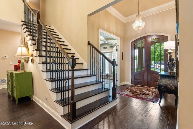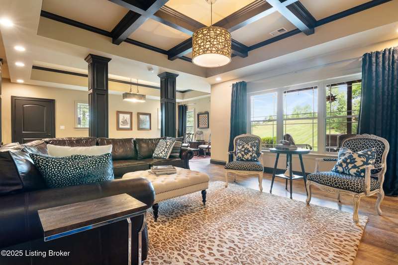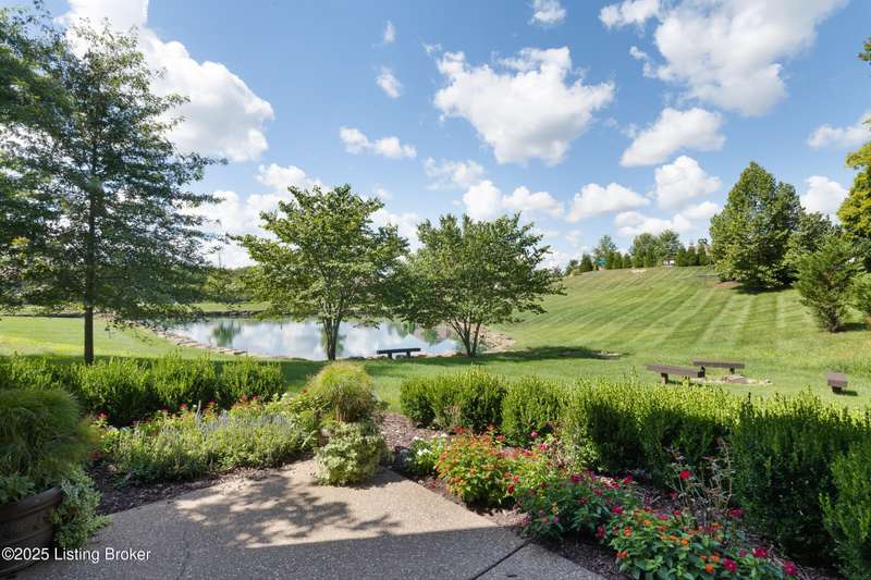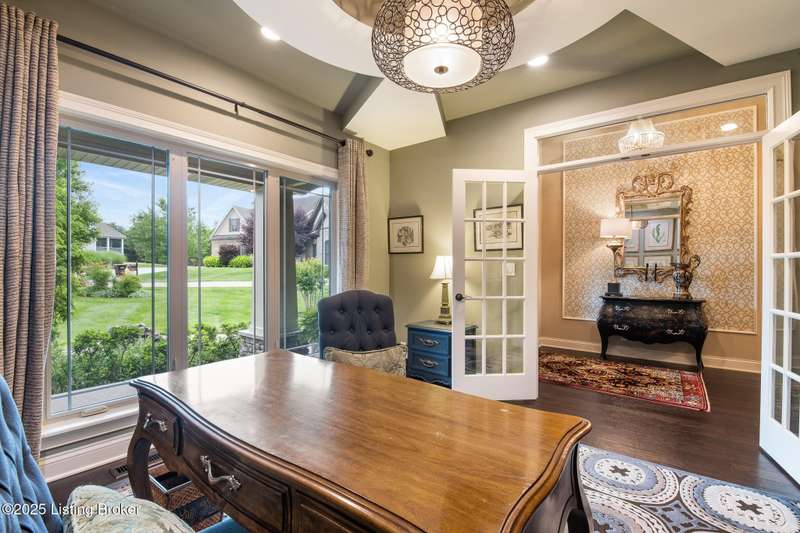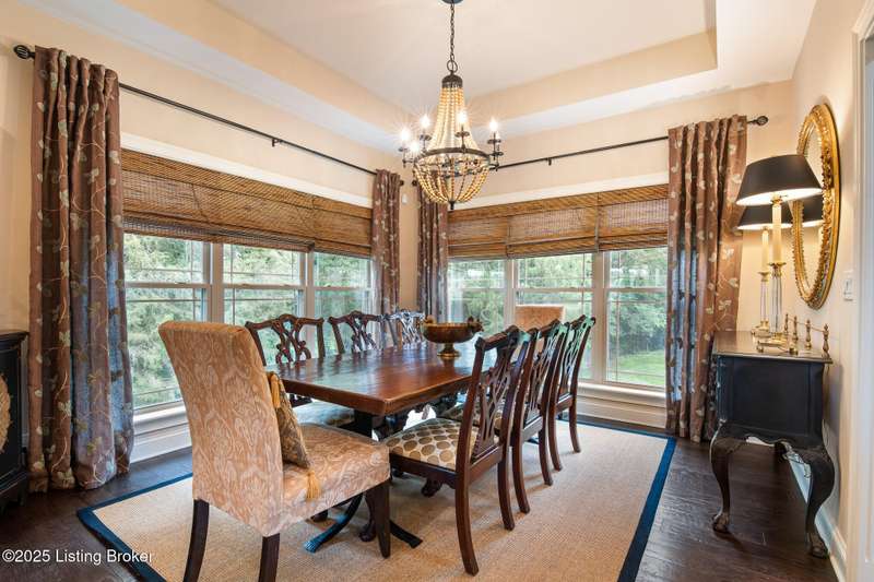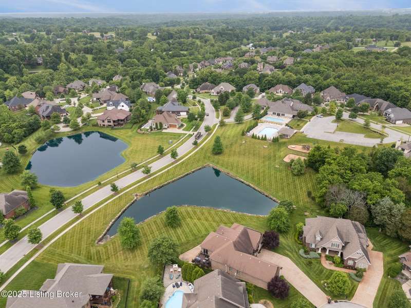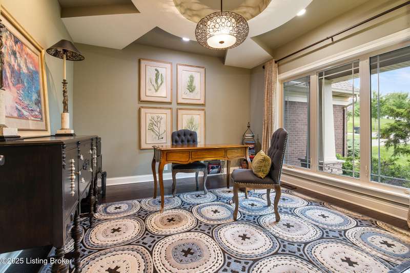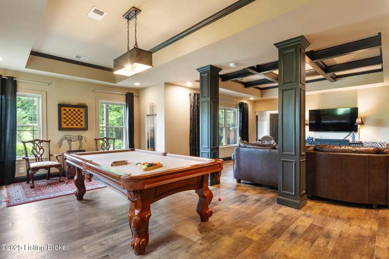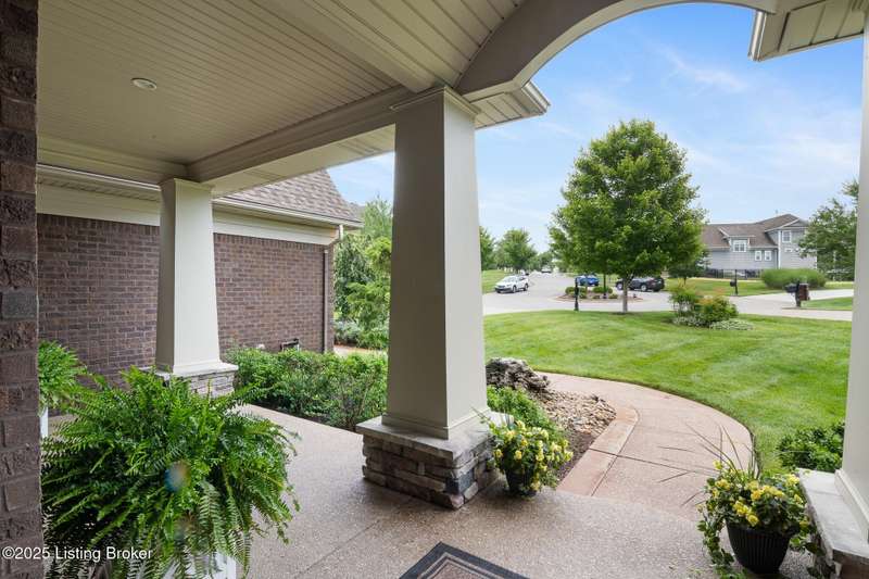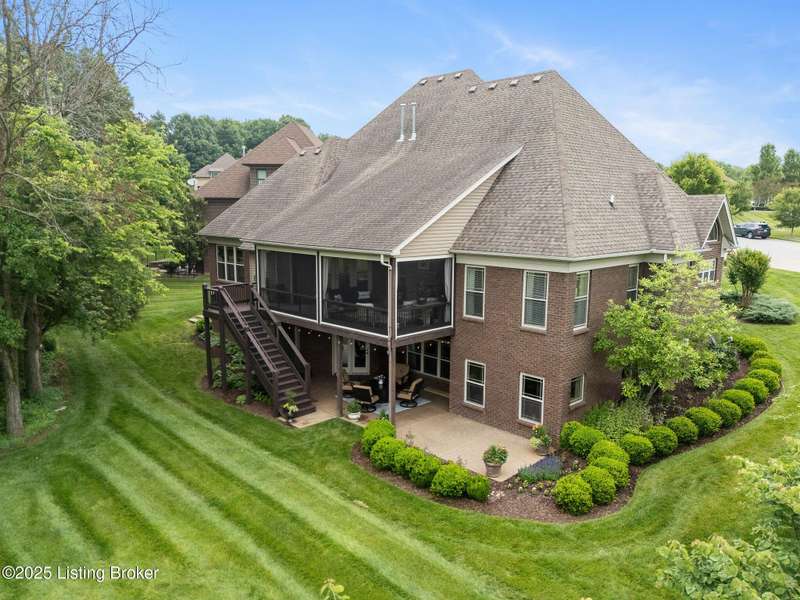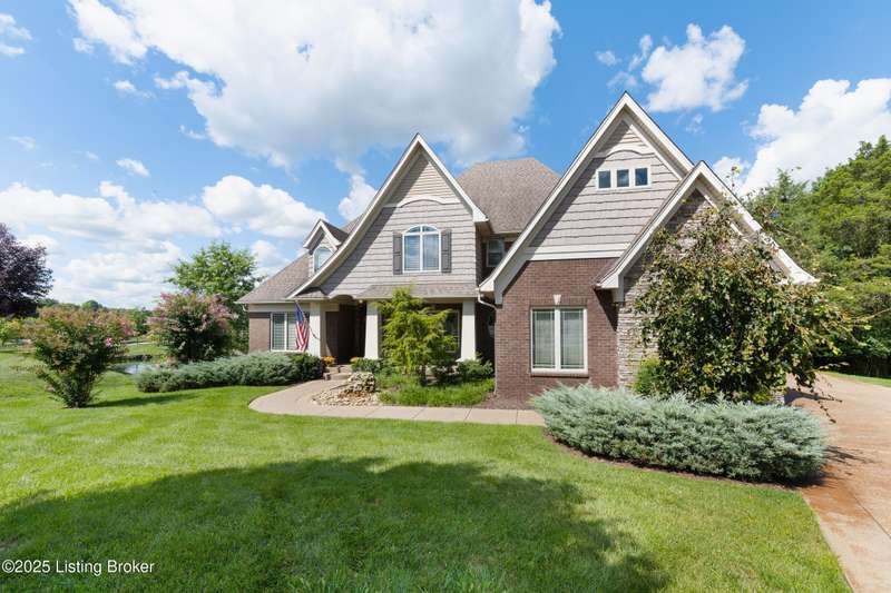 This exceptional home, located in the well-established front section of Shakes Run near The Parklands, offers privacy, luxury, and architectural excellence. Situated at the center of a cul-de-sac, there are unobstructed views of woods, a pond, and the hillside that leads to the clubhouse and two pools: adults & kids! The home's beautiful landscaping on all four sides, featuring the lava rock fountain, and natural stone steps to the backyard, sets the tone for the quality craftsmanship found throughout the home. The wide, covered front porch with stone-based columns invites you in, where a grand foyer opens to a versatile office or flex space. This room is defined by its glass French doors, transom, and a striking architectural ceiling, alongside a wall of casement windows. Equally comfortable for intimate gatherings or larger events, the main living areas are highlighted by rich wood flooring, large windows, and exquisite light fixtures. The two-story great room, kitchen, and dining area flow seamlessly but are delineated by the floor plan angles, with each "room" having distinct ceiling designs and lighting details. The dual-sided fireplace flanked by windows in the great room is shared by the screen porch, bringing the outside in. Ideal for entertaining or quiet moments, the porch also has retractable screens, curtains, a TV mount, room for your grill and steps down to the lower level. Another fireplace, framed in stone, creates a transition space between the kitchen and dining room. The well-appointed kitchen with a barrel-vaulted ceiling is a standout feature of the home, offering a banquet sized, 12'9" x 4'6" granite countertop, perfect for meal preparation, entertaining, or casual dining. Custom Amish-built cabinetry with drawers and pull-outs spans the entire back wall and under both sides of the counter. The dining room, with its two walls of windows, feels like a part of the yard and woods. The back foyer houses the guest half bath, a walk-in pantry with custom wood shelving, laundry room, driveway porch, cubbies and entry to the three-car garage which has additional storage and workspace. The design with two large windows and a retractable screen for the larger garage door creates a comfortable environment for work or hobbies. As an exceptional retreat, the light-filled primary suite also accesses the screen porch. The primary bath features a separated double vanity and a large barrel-vaulted ceiling, highlighted by a crescent window above the columned soaking tub, plus a private, oversized, walk in tiled shower. The closet room is custom fitted, and even has a granite topped chest of drawers. Upstairs, the two front bedrooms both have built-in desk/vanities and their own private baths, offering an ideal layout for family or guests. A third upstairs room provides flexible space for a library, home office, or a possible bedroom. Tailor it to suit your personal needs. The walk-out lower level is a true extension of the home's exceptional design, featuring two levels. The first level, with a cool epoxied floor, houses the card room, a brick and granite bar area, with a full-sized refrigerator, dishwasher, and a TV mount. Take a few steps down to the billiard room with great views of the yard and pond. The beamed, coffered ceiling defines the entertainment area. A private bedroom and a full hall bath are adjacent to the "patio lobby". With two ample storage rooms, the lower level is ideal for both everyday living and entertaining. The patio is adjacent to the pond lined by redbuds, the woods and greenspace that leads up the hill to the clubhouse and the two pools: Serenity and Kids. With its sophisticated design, carefully considered details, and thoughtful integration of natural surroundings, this home offers an unparalleled lifestyle of luxury and comfort. Seller will provide HSA home warranty basic buyer coverage for one year.