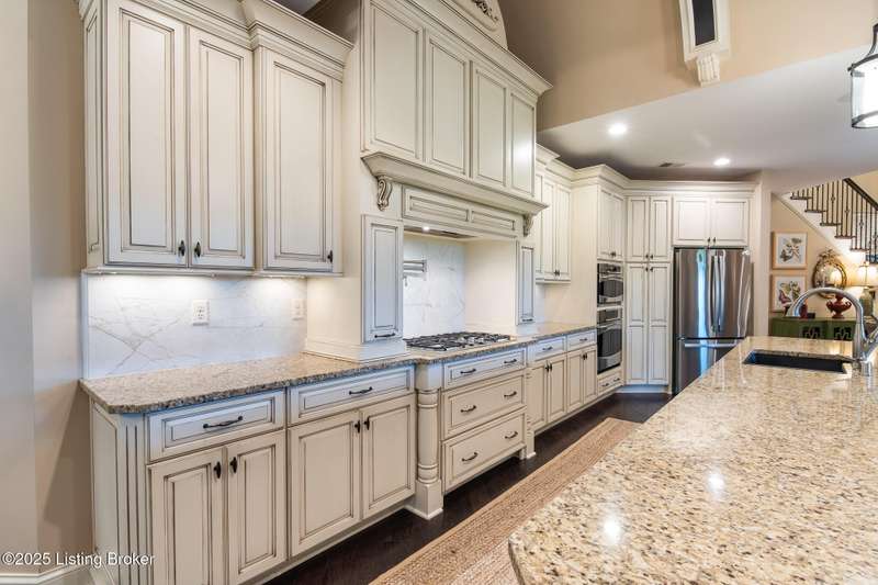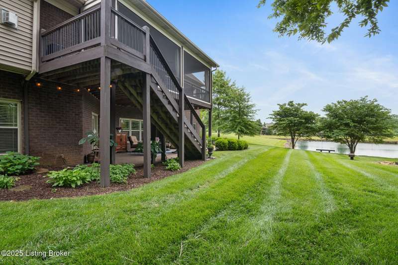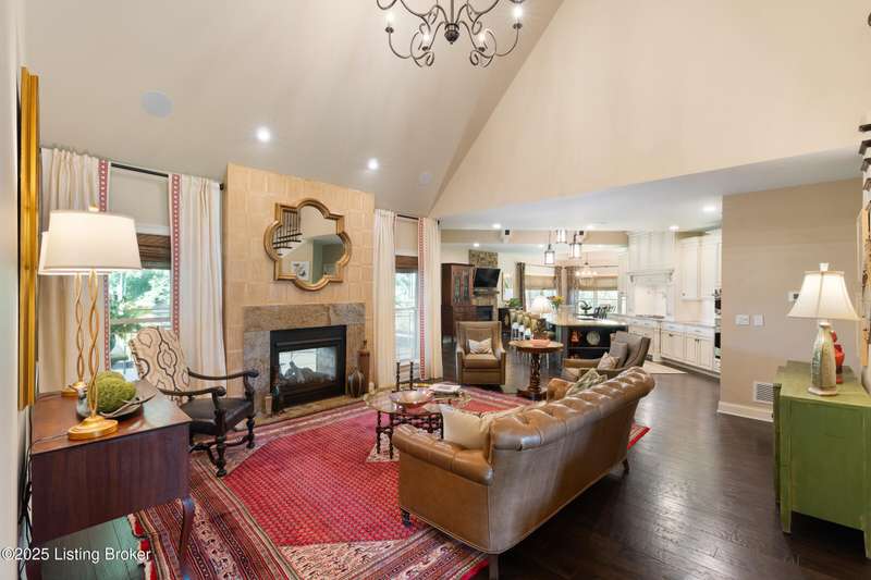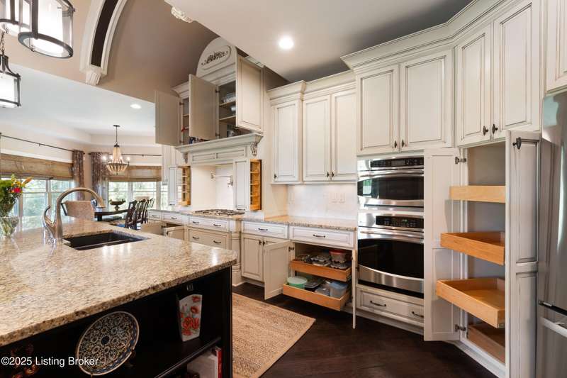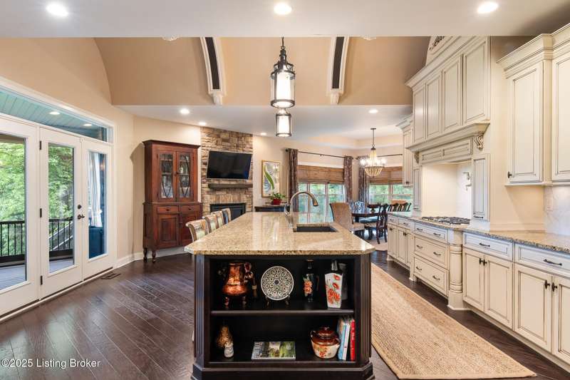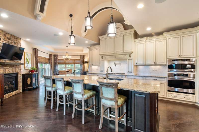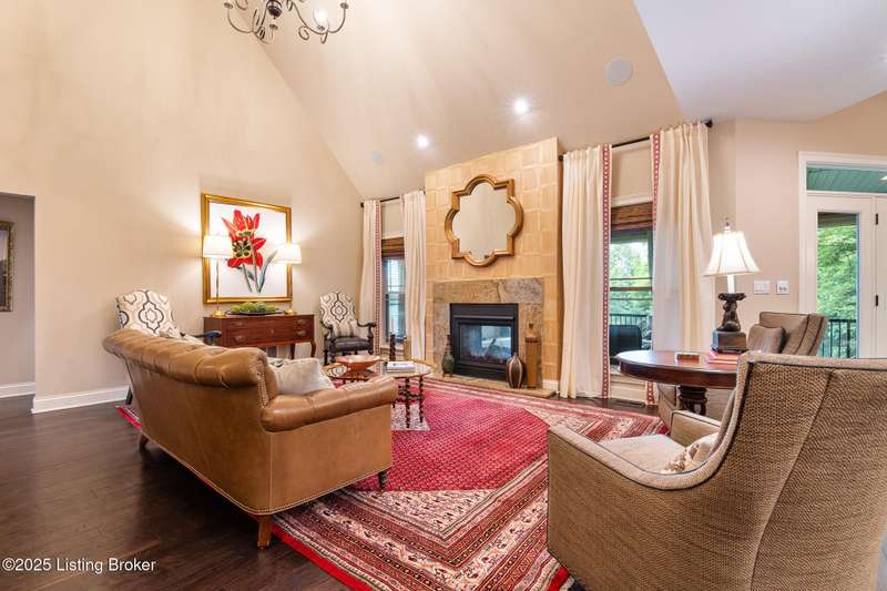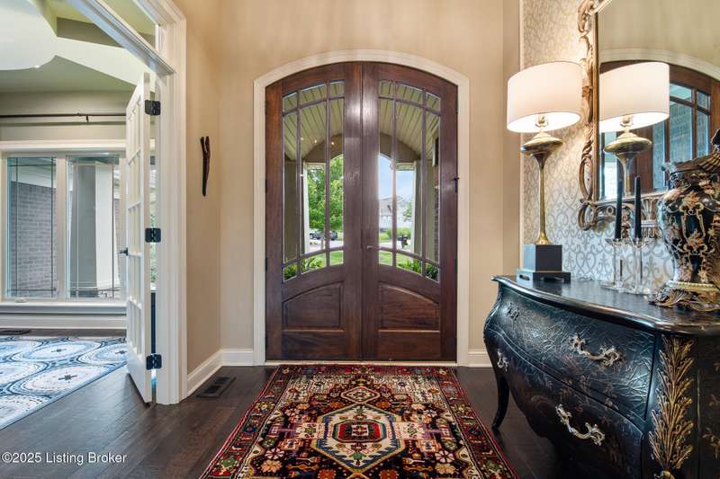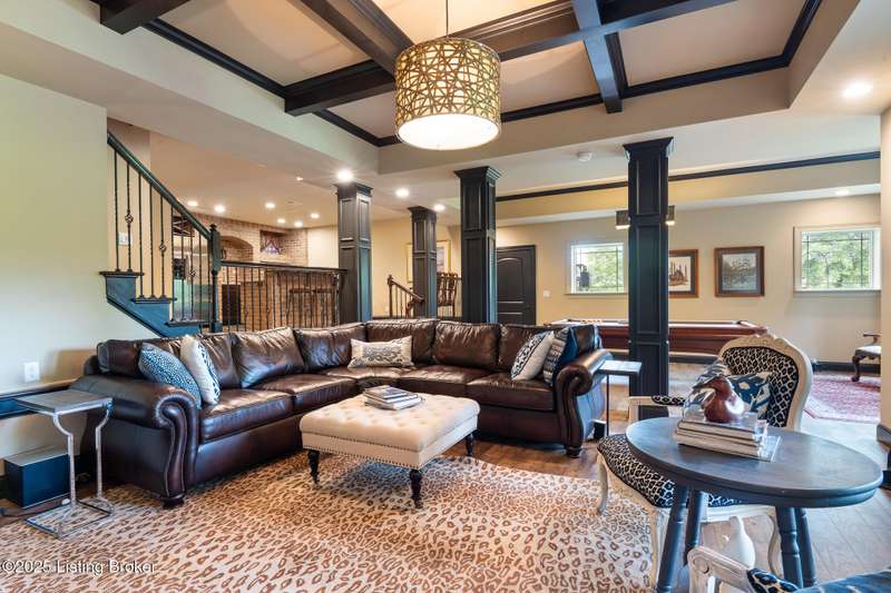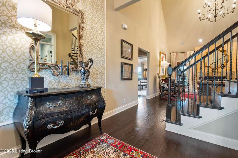 This exceptional home, located in the well-established front section of Shakes Run near The Parklands, offers privacy, luxury, and architectural excellence. Situated at the center of a cul-de-sac, there are unobstructed views of woods, a pond, and the hillside that leads to the clubhouse and two pools: adults & kids! The home's beautiful landscaping on all four sides, featuring the lava rock fountain, and natural stone steps to the backyard, sets the tone for the quality craftsmanship found throughout the home. The wide, covered front porch with stone-based columns invites you in, where a grand foyer opens to a versatile office or flex space. This room is defined by its glass French doors, transom, and a striking architectural ceiling, alongside a wall of casement windows. Equally comfortable for intimate gatherings or larger events, the main living areas are highlighted by rich wood flooring, large windows, and exquisite light fixtures. The two-story great room, kitchen, and dining area flow seamlessly but are delineated by the floor plan angles, with each "room" having distinct ceiling designs and lighting details. The dual-sided fireplace flanked by windows in the great room is shared by the screen porch, bringing the outside in. Ideal for entertaining or quiet moments, the porch also has retractable screens, curtains, a TV mount, room for your grill and steps down to the lower level. Another fireplace, framed in stone, creates a transition space between the kitchen and dining room. The well-appointed kitchen with a barrel-vaulted ceiling is a standout feature of the home, offering a banquet sized, 12'9" x 4'6" granite countertop, perfect for meal preparation, entertaining, or casual dining. Custom Amish-built cabinetry with drawers and pull-outs spans the entire back wall and under both sides of the counter. The dining room, with its two walls of windows, feels like a part of the yard and woods. The back foyer houses the guest half bath, a walk-in pantry with custom wood shelving, laundry room, driveway porch, cubbies and entry to the three-car garage which has additional storage and workspace. The design with two large windows and a retractable screen for the larger garage door creates a comfortable environment for work or hobbies. As an exceptional retreat, the light-filled primary suite also accesses the screen porch. The primary bath features a separated double vanity and a large barrel-vaulted ceiling, highlighted by a crescent window above the columned soaking tub, plus a private, oversized, walk in tiled shower. The closet room is custom fitted, and even has a granite topped chest of drawers. Upstairs, the two front bedrooms both have built-in desk/vanities and their own private baths, offering an ideal layout for family or guests. A third upstairs room provides flexible space for a library, home office, or a possible bedroom. Tailor it to suit your personal needs. The walk-out lower level is a true extension of the home's exceptional design, featuring two levels. The first level, with a cool epoxied floor, houses the card room, a brick and granite bar area, with a full-sized refrigerator, dishwasher, and a TV mount. Take a few steps down to the billiard room with great views of the yard and pond. The beamed, coffered ceiling defines the entertainment area. A private bedroom and a full hall bath are adjacent to the "patio lobby". With two ample storage rooms, the lower level is ideal for both everyday living and entertaining. The patio is adjacent to the pond lined by redbuds, the woods and greenspace that leads up the hill to the clubhouse and the two pools: Serenity and Kids. With its sophisticated design, carefully considered details, and thoughtful integration of natural surroundings, this home offers an unparalleled lifestyle of luxury and comfort. Seller will provide HSA home warranty basic buyer coverage for one year.