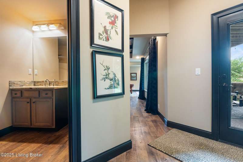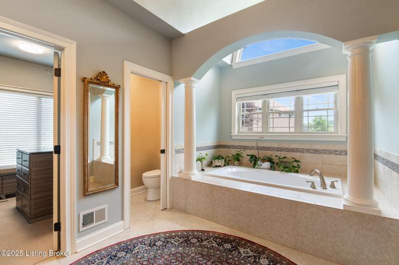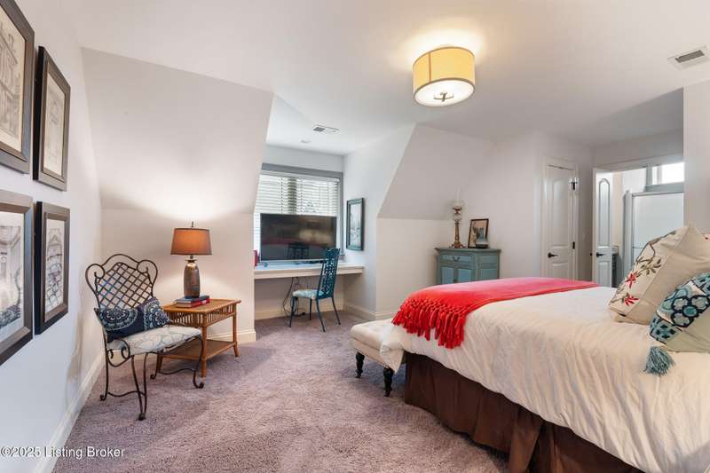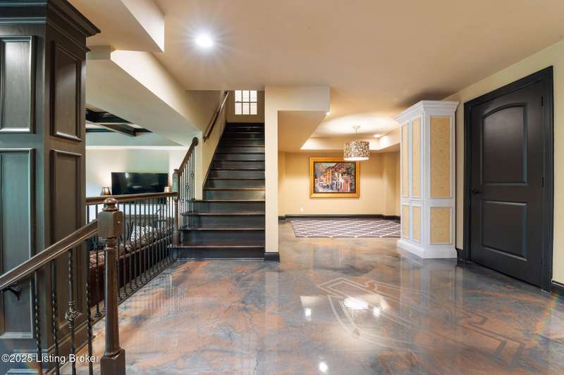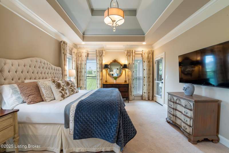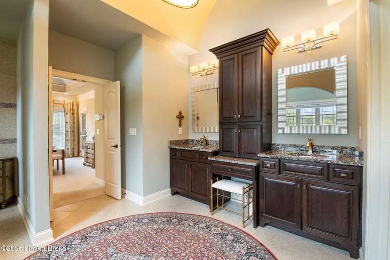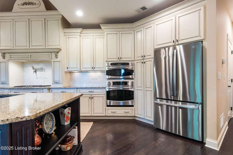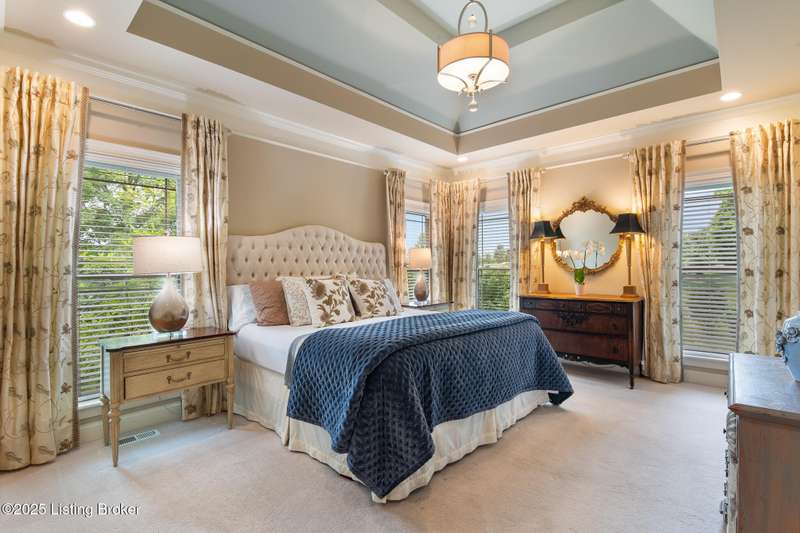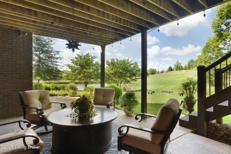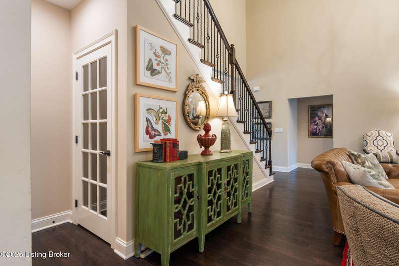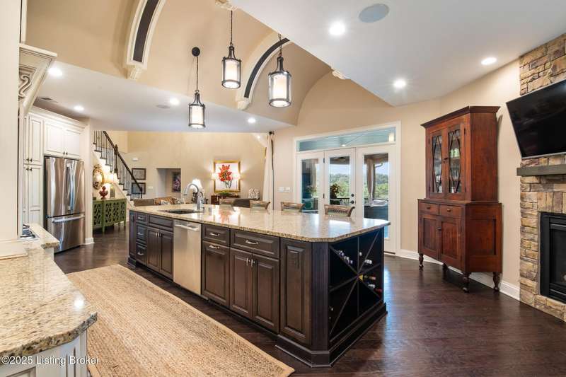 This exceptional home, located in the well-established front section of Shakes Run near The Parklands, offers privacy, luxury, and architectural excellence. Situated at the center of a cul-de-sac, there are unobstructed views of woods, a pond, and the hillside that leads to the clubhouse and two pools: adults & kids! The home's beautiful landscaping on all four sides, featuring the lava rock fountain, and natural stone steps to the backyard, sets the tone for the quality craftsmanship found throughout the home. The wide, covered front porch with stone-based columns invites you in, where a grand foyer opens to a versatile office or flex space. This room is defined by its glass French doors, transom, and a striking architectural ceiling, alongside a wall of casement windows. Equally comfortable for intimate gatherings or larger events, the main living areas are highlighted by rich wood flooring, large windows, and exquisite light fixtures. The two-story great room, kitchen, and dining area flow seamlessly but are delineated by the floor plan angles, with each "room" having distinct ceiling designs and lighting details. The dual-sided fireplace flanked by windows in the great room is shared by the screen porch, bringing the outside in. Ideal for entertaining or quiet moments, the porch also has retractable screens, curtains, a TV mount, room for your grill and steps down to the lower level. Another fireplace, framed in stone, creates a transition space between the kitchen and dining room. The well-appointed kitchen with a barrel-vaulted ceiling is a standout feature of the home, offering a banquet sized, 12'9" x 4'6" granite countertop, perfect for meal preparation, entertaining, or casual dining. Custom Amish-built cabinetry with drawers and pull-outs spans the entire back wall and under both sides of the counter. The dining room, with its two walls of windows, feels like a part of the yard and woods. The back foyer houses the guest half bath, a walk-in pantry with custom wood shelving, laundry room, driveway porch, cubbies and entry to the three-car garage which has additional storage and workspace. The design with two large windows and a retractable screen for the larger garage door creates a comfortable environment for work or hobbies. As an exceptional retreat, the light-filled primary suite also accesses the screen porch. The primary bath features a separated double vanity and a large barrel-vaulted ceiling, highlighted by a crescent window above the columned soaking tub, plus a private, oversized, walk in tiled shower. The closet room is custom fitted, and even has a granite topped chest of drawers. Upstairs, the two front bedrooms both have built-in desk/vanities and their own private baths, offering an ideal layout for family or guests. A third upstairs room provides flexible space for a library, home office, or a possible bedroom. Tailor it to suit your personal needs. The walk-out lower level is a true extension of the home's exceptional design, featuring two levels. The first level, with a cool epoxied floor, houses the card room, a brick and granite bar area, with a full-sized refrigerator, dishwasher, and a TV mount. Take a few steps down to the billiard room with great views of the yard and pond. The beamed, coffered ceiling defines the entertainment area. A private bedroom and a full hall bath are adjacent to the "patio lobby". With two ample storage rooms, the lower level is ideal for both everyday living and entertaining. The patio is adjacent to the pond lined by redbuds, the woods and greenspace that leads up the hill to the clubhouse and the two pools: Serenity and Kids. With its sophisticated design, carefully considered details, and thoughtful integration of natural surroundings, this home offers an unparalleled lifestyle of luxury and comfort. Seller will provide HSA home warranty basic buyer coverage for one year.