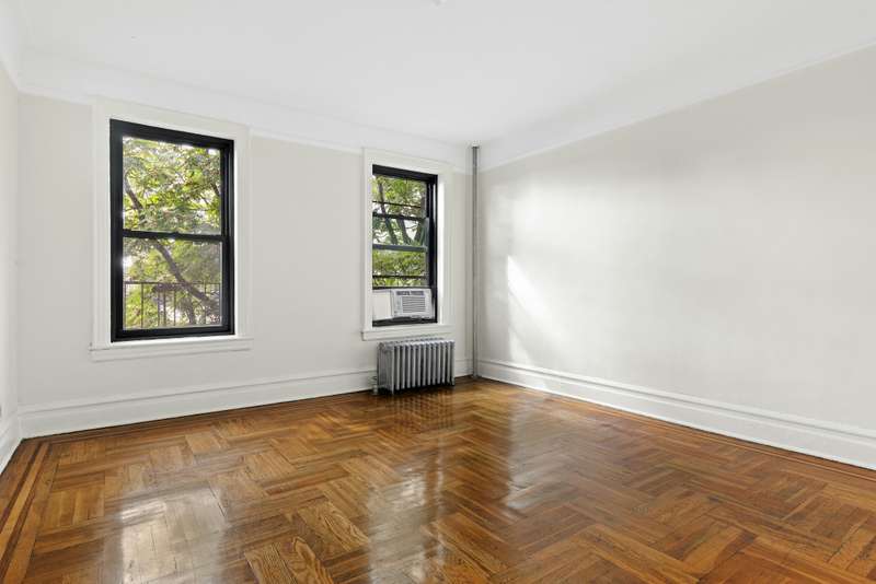 This fourth floor coop apartment overlooks the treetops of Prospect Park.  ;It features large rooms with tall ceilings 9 feet tall, windows in every room to let the sunshine in, and beautiful parquet flooring. The kitchen has been renovated and offers a dishwasher and room for a table and chairs.  ;The bedroom and living room are especially large. ; ;