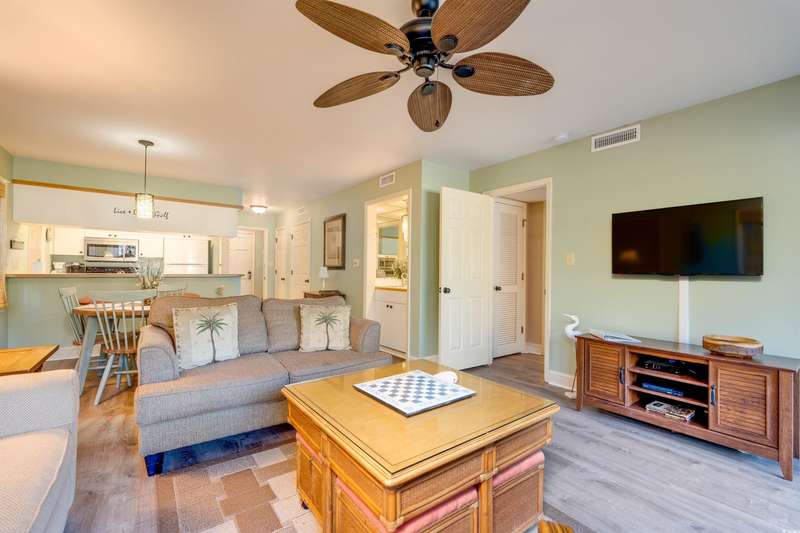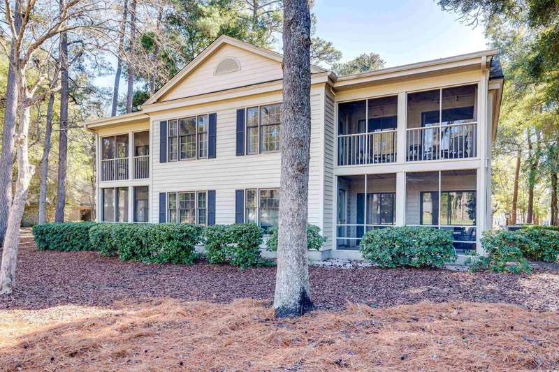 Welcome to 14-2 Stillwood Drive located within Weehawka Woods in the gated community of Pawleys Plantation. Enjoy views of the 11th green of the Jack Nicklaus signature golf course from your screened in porch accessed from the primary bedroom or family room. The porch also has vinyl sliders adding to the flexibility of this space. This fully furnished condo is turn key ready to serve as your primary, vacation or investment property. As you enter the foyer, the washer/dryer area is located on your right. Turn left and enter the guest bedroom with a private bathroom. Continue straight to enter the main living space including kitchen with pantry, light filled open living and dining area with wet bar and primary bedroom and bath. These condos can be configured as lock-outs so that both areas of the condo can be rented together or separately. This community has a pool for owners and guests and is pet friendly. Social and golf memberships are available through Pawleys Plantation Golf & Country Club. This community is close to pristine beaches, world class golf courses and unique shopping and culinary experiences. The main bathroom has been renovated, and all kitchen appliances are now stainless steel (4/25/25).