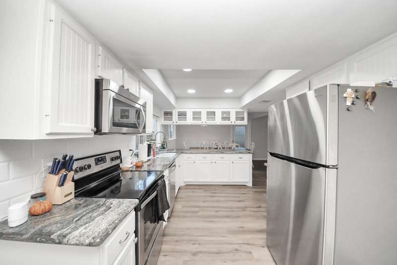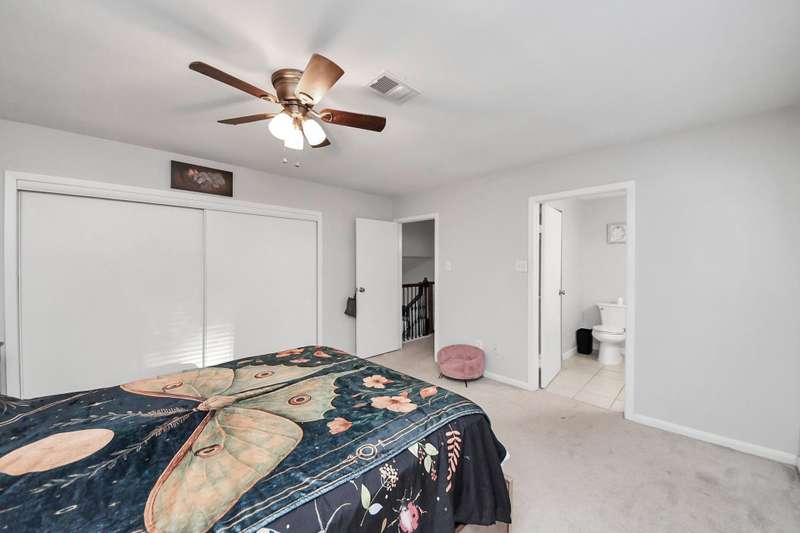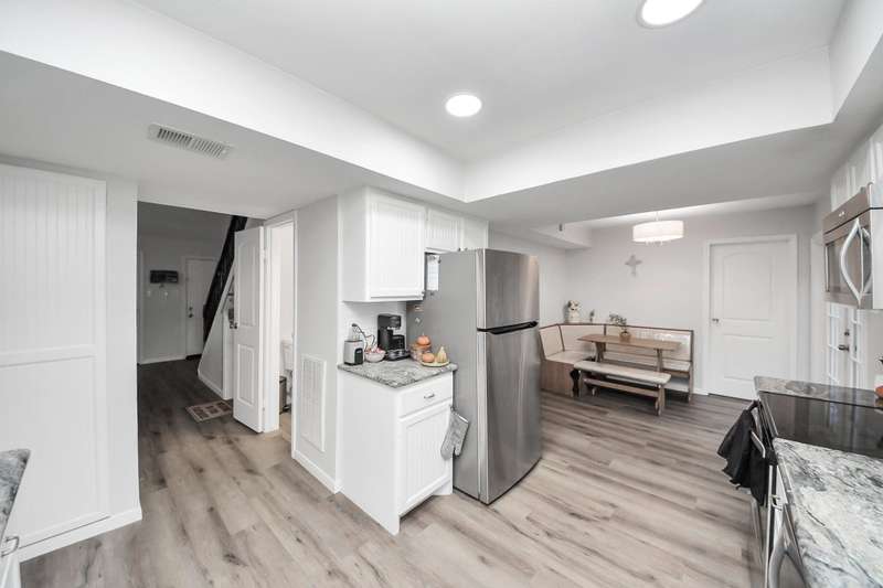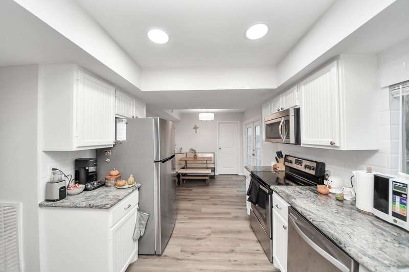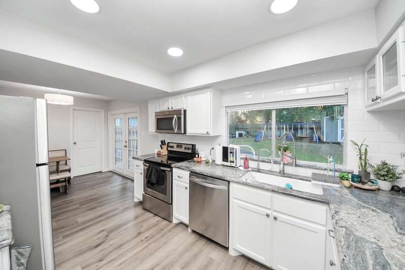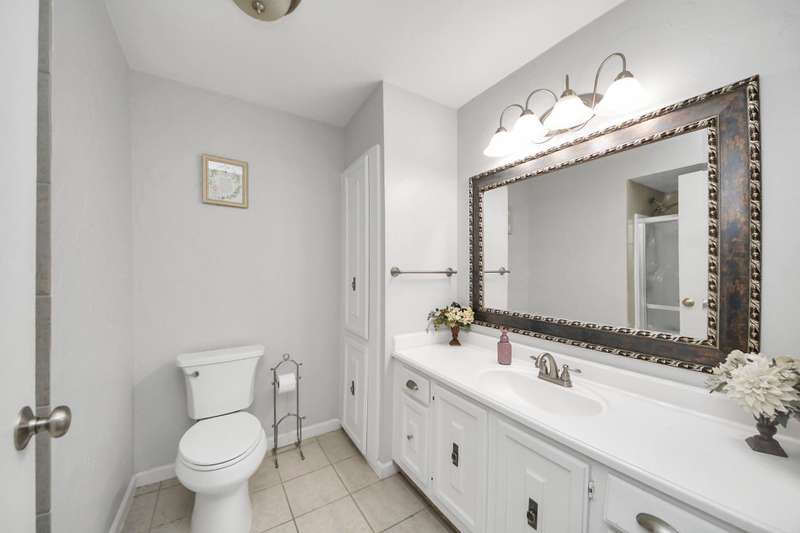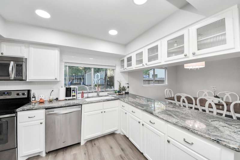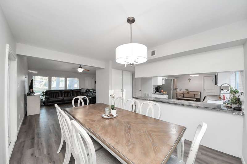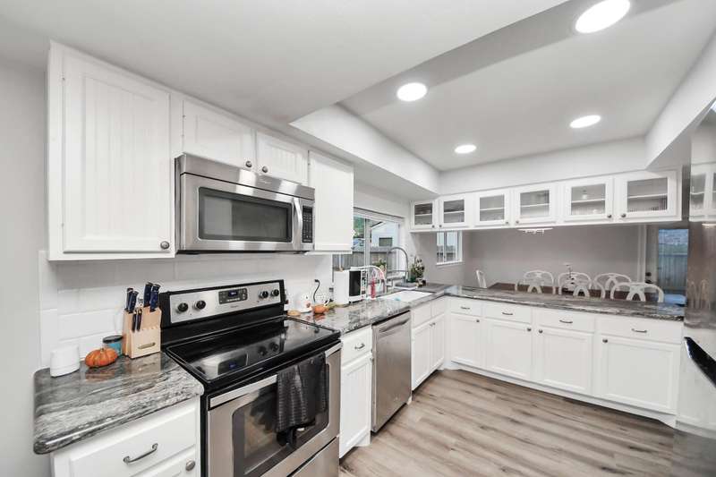 Beautifully home located in Grogan’s Mill, The Woodlands, TX! Step inside to soaring vaulted ceilings and wide luxury vinyl plank wood flooring that spans the entire first floor, creating a warm and elegant feel. Large windows fill the home with natural light, complemented by new 2" cordless blinds throughout. Enjoy a cozy evening by the gas fireplace, highlighted by stunning tile detail. The kitchen is a showstopper with crisp white cabinets, classic subway tile backsplash, and matching stainless steel appliances. The staircase features newly installed oak treads and a custom hand railing. Every light fixture has been replaced, adding a modern touch throughout. Both the interior and exterior were freshly painted in 2021. Step outside to your private backyard oasis with a wooden deck, perfect for entertaining or relaxing. Ideally located in the heart of The Woodlands, close to premier shopping, dining, parks, pools, and scenic nature trails.