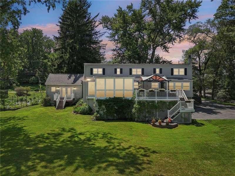 Enchanting Showplace! Stunning walkway to front entrance! Open concept layout! Formal light filled Living room w/bay window & gleaming hardwood & marble fireplace! Fabulous Chefs Kitchen featuring, double sinks, abundant cabinet space w/glass doors, granite counter tops, tile floor, stainless appliances w/double ovens & stove tops w/hood, skylights, & recessed lights! Breakfast room w/floor to ceiling windows plus stained glass window & glass door leading to screened in porch! Family room w/recessed lights & fireplace w/door leading to deck! First floor Home Office w/built in book cases leading to breathtaking Great room w/vaulted & beamed ceiling plus french doors to back yard! Master Bedroom w/Master Bath featuring whirlpool tub & walk in shower & wall of closets! Updated Main Bath on 2nd floor + 3 more bedrooms! Finished lower level w/half bath! Large level lush yard w/cascading decks! Home across from Fox Chapel High school and Park! Minutes to 28, shopping & dining! A True DREAM!