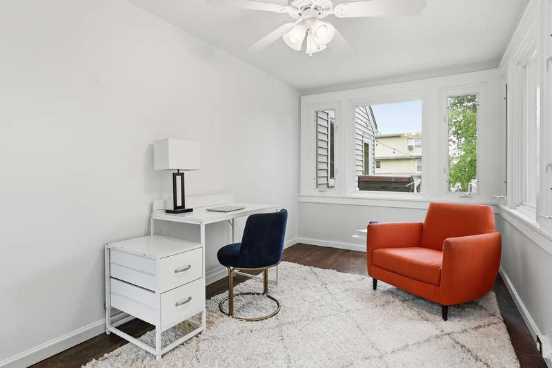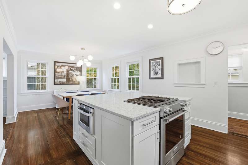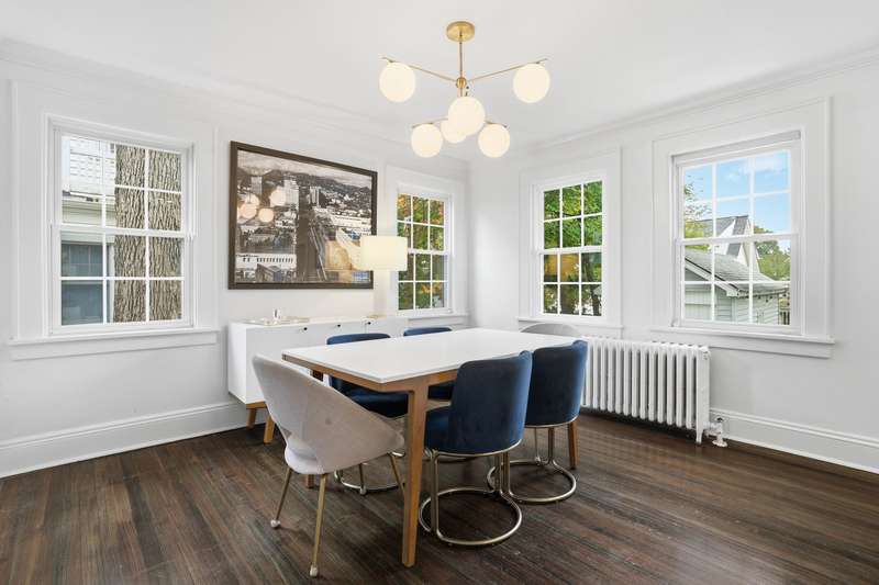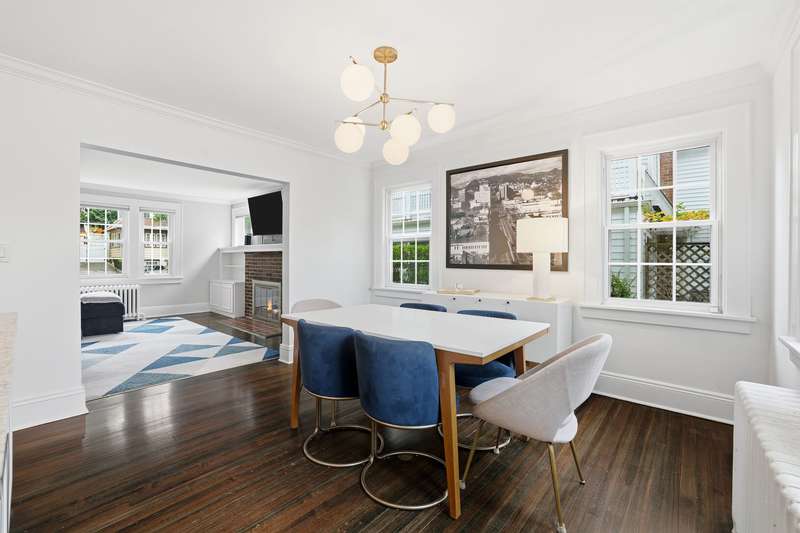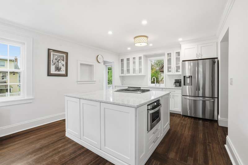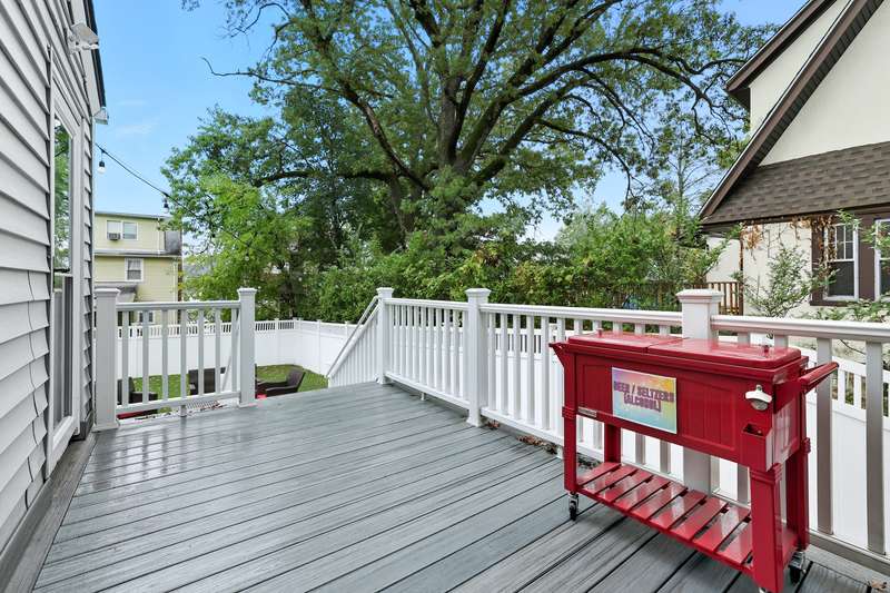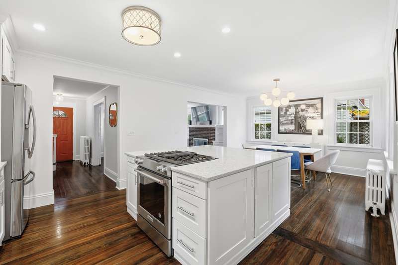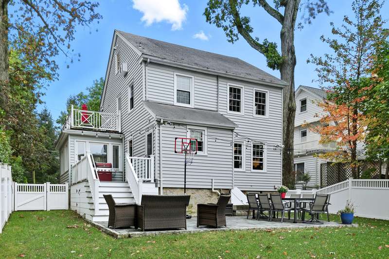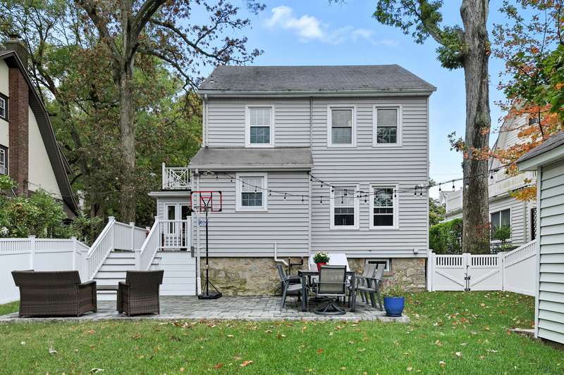 Welcome to this picture-perfect Colonial that blends timeless character with fresh, stylish updates. The inviting exterior features crisp gray siding with black shutters and a charming arched entryway. Lush landscaping and a brand-new stone walkway add to the homes welcoming curb appeal. Inside, sunlight fills the first floor, where a flowing layout connects the living, dining and kitchen spaces. The living room is bright and airy, framed by large windows and French doors that open to the entry foyer. The open-concept dining area and kitchen create a modern gathering space with custom white cabinetry, stone countertops and stainless-steel appliances offering both style and function. A sunroom provides a serene spot for a home office or den, while the mudroom, with powder room and access to the rear deck, completes the main level. Upstairs, the second floor offers three sun-filled bedrooms, including a spacious primary, a full bath with white tile and modern fixtures, and access to a rooftop deck/balcony - perfect for morning coffee or evening relaxation. Highlights include classic crown molding, built-ins, freshly painted interior, new windows and warm hardwood floors throughout the home. Step outside, and the fenced backyard is an inviting space with a new spacious Trex deck and a beautifully finished stone patio, ideal for dining al fresco or unwinding outdoors. The property offers level lawns, thoughtful landscaping, and a convenient location within walking distance to New Rochelle High School and only 1.5 miles to Metro North station. Thoughtfully updated yet full of classic details, this home offers an effortless balance of comfort and character.