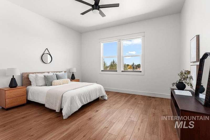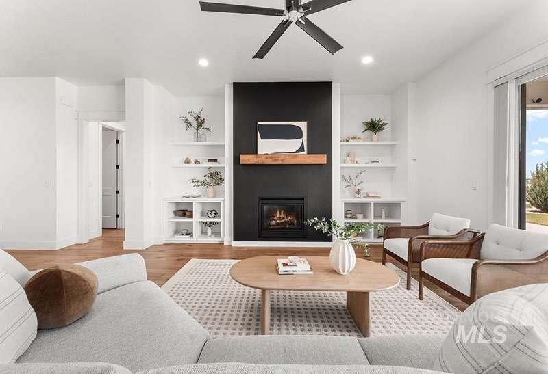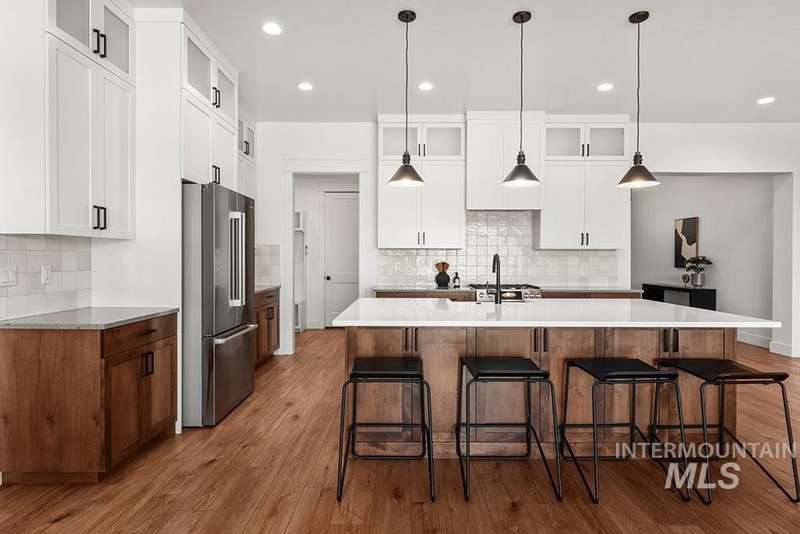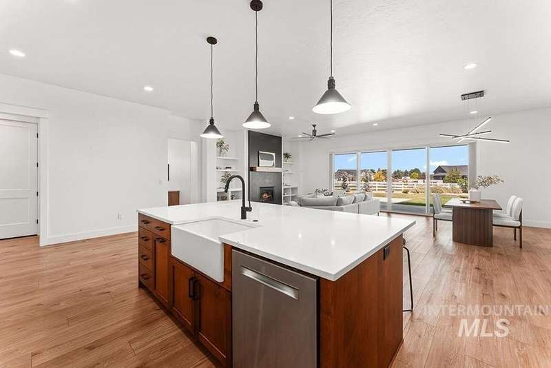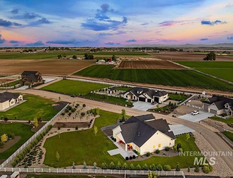 An extraordinary single-level home set on a sprawling 1+ acre corner lot in Arbor Landing! The impressive homesite features a fruit orchard & strawberry garden, along with a customized shop/fitness/RV garage ideal for the at-home hobbyist. Inside, the spacious open layout features LVP flooring throughout, walls of windows, and seamless indoor/outdoor living. The chef’s kitchen is set behind an oversized entertaining island, with Bosch stainless steel appliances and a large walk-in pantry. The master suite has direct patio access, an en suite with a frameless glass shower, dual vanities, freestanding soaker tub, and a dressing room with direct laundry access. Additional highlights include a private well, septic, propane tank, pressurized irrigation, home security system, and low HOA fees. The RV garage/shop has dual heating/cooling & epoxy flooring. Just outside the community is Midway Park, a 52-acre recreation hub with sports courts, walking paths, and an amphitheater.