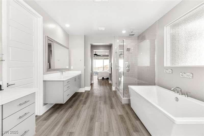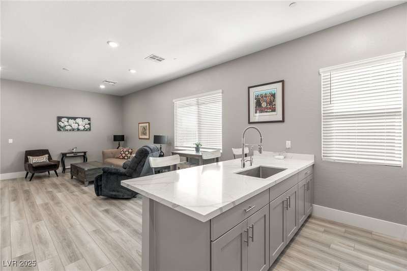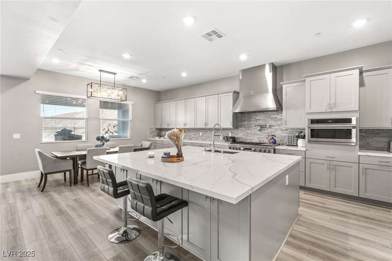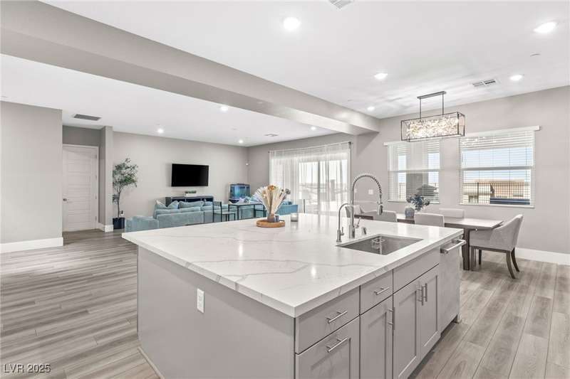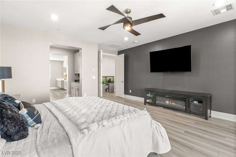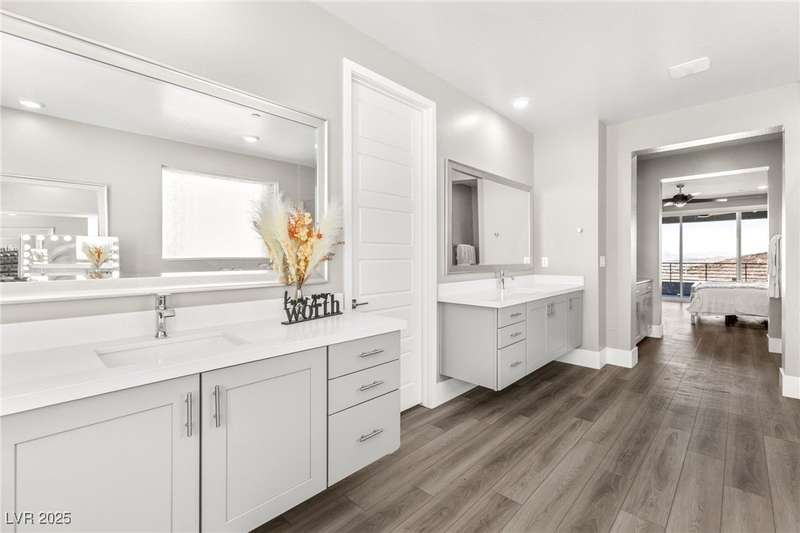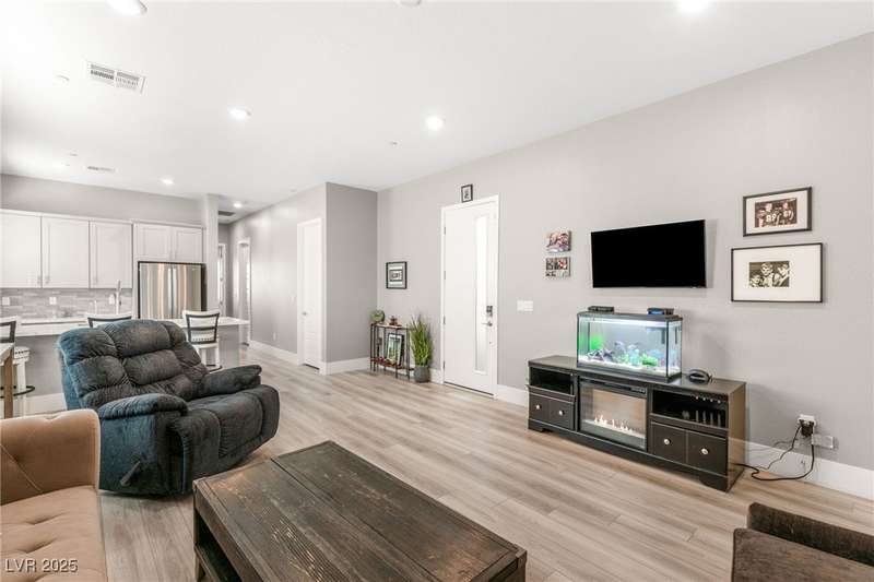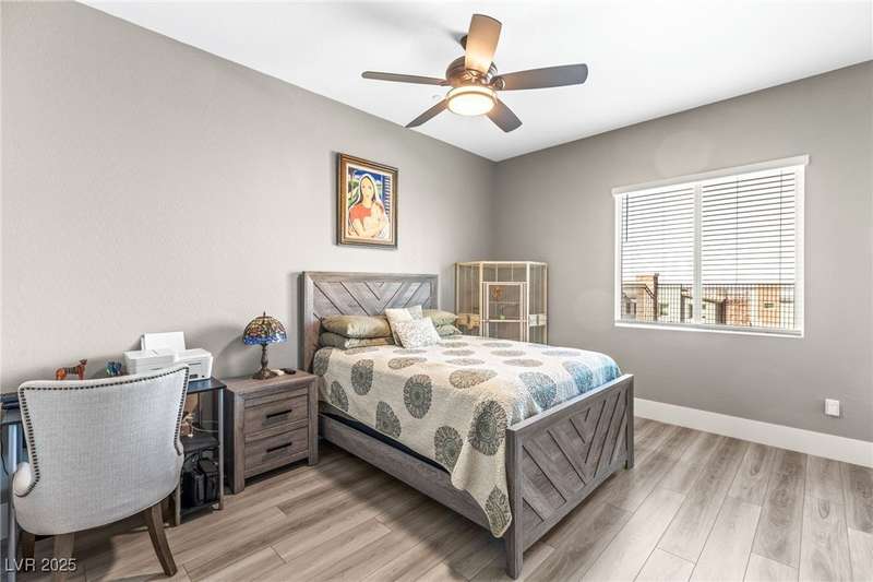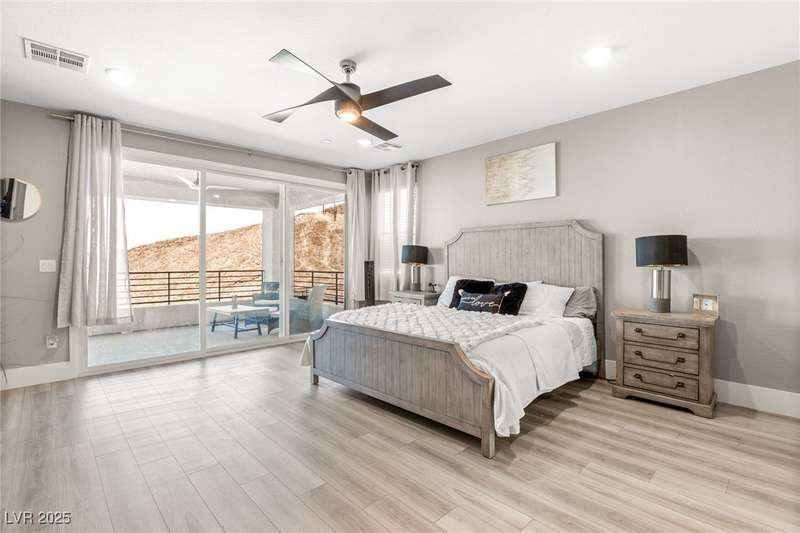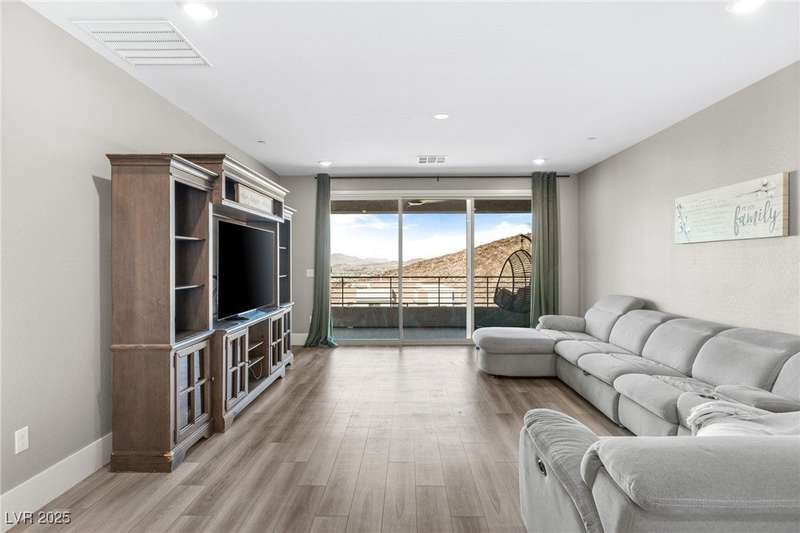 Welcome to your luxurious 2-story home nestled on an elevated lot in gated community of Tresor at Black Mountain Vistas. This stunning residence offers a blend of elegance and functionality, perfect for modern living. As you enter through the courtyard, a separate entry leads to a multi-gen space, ideal for guests or extended family. This space features a fully equipped kitchen, a comfortable living area, a stylish bathroom, and a private bedroom. In the main house you're greeted by luxury vinyl planks throughout the home. The downstairs area boasts a spacious great room, and impressive kitchen with a large island adorned with quartz countertops and a tasteful tile backsplash. Upstairs, a loft area provides additional living space. The primary bedroom is a retreat featuring a private balcony where you enjoy the surrounding views. With its thoughtful design, premium finishes, within a gated community, this home offers a rare opportunity! **VA Assumption available - rate is 5.25%**