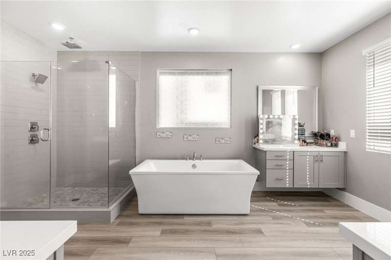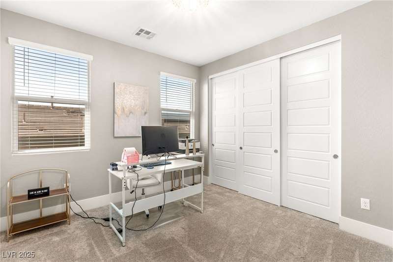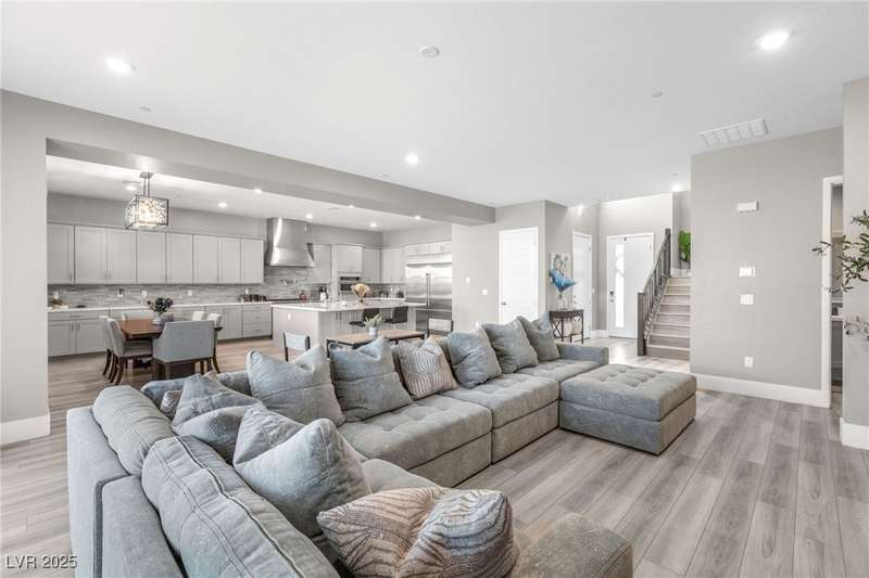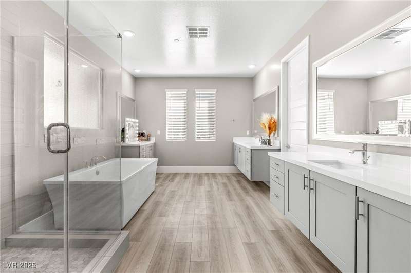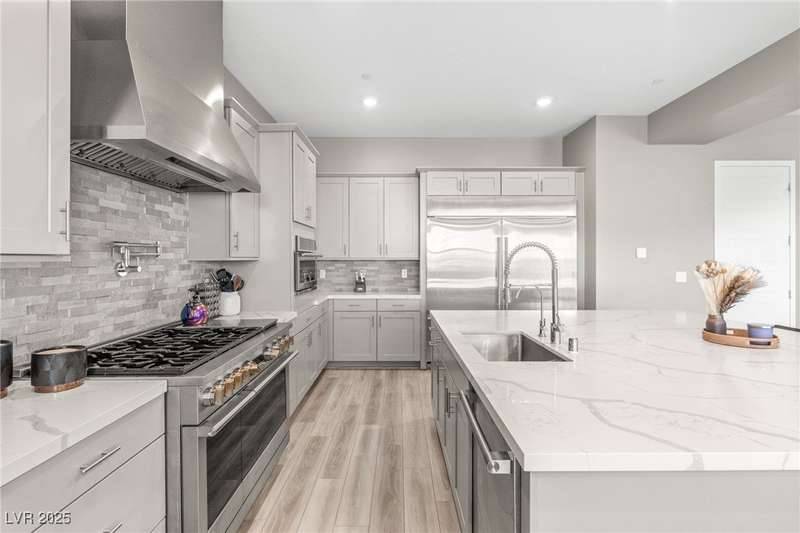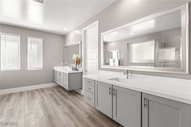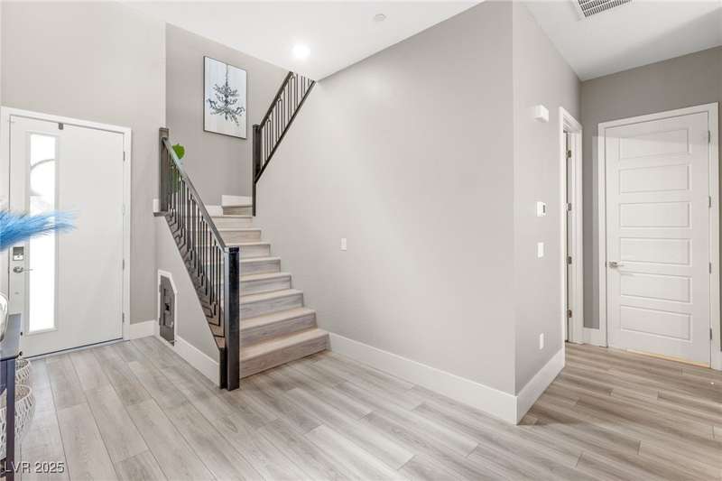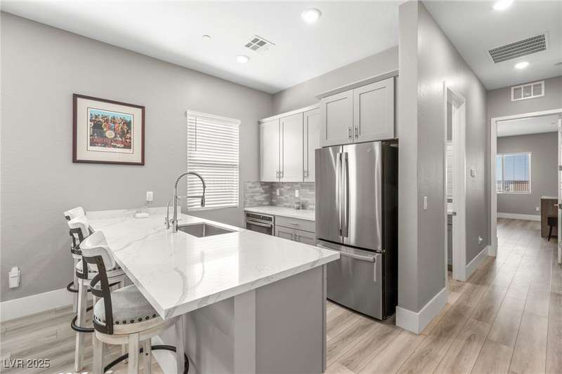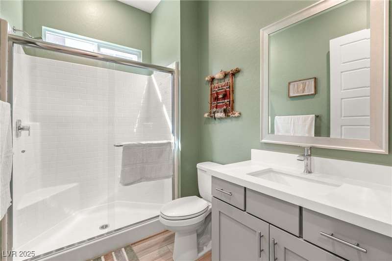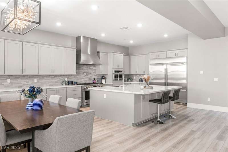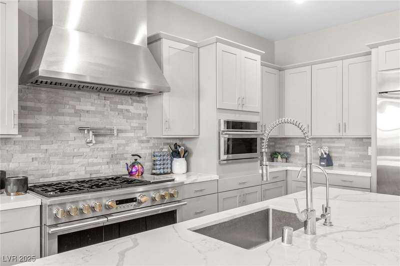 Welcome to your luxurious 2-story home nestled on an elevated lot in gated community of Tresor at Black Mountain Vistas. This stunning residence offers a blend of elegance and functionality, perfect for modern living. As you enter through the courtyard, a separate entry leads to a multi-gen space, ideal for guests or extended family. This space features a fully equipped kitchen, a comfortable living area, a stylish bathroom, and a private bedroom. In the main house you're greeted by luxury vinyl planks throughout the home. The downstairs area boasts a spacious great room, and impressive kitchen with a large island adorned with quartz countertops and a tasteful tile backsplash. Upstairs, a loft area provides additional living space. The primary bedroom is a retreat featuring a private balcony where you enjoy the surrounding views. With its thoughtful design, premium finishes, within a gated community, this home offers a rare opportunity! **VA Assumption available - rate is 5.25%**