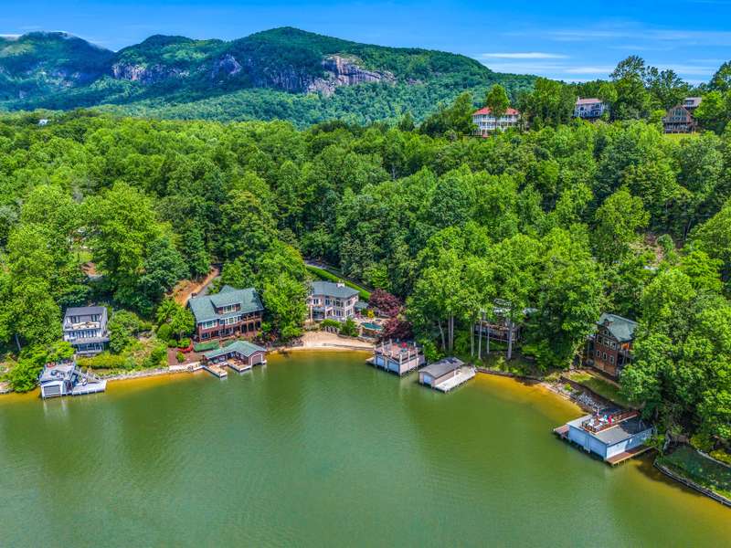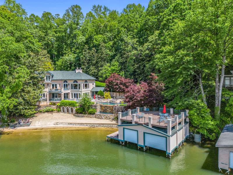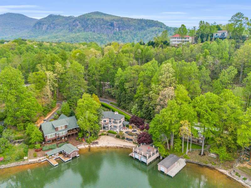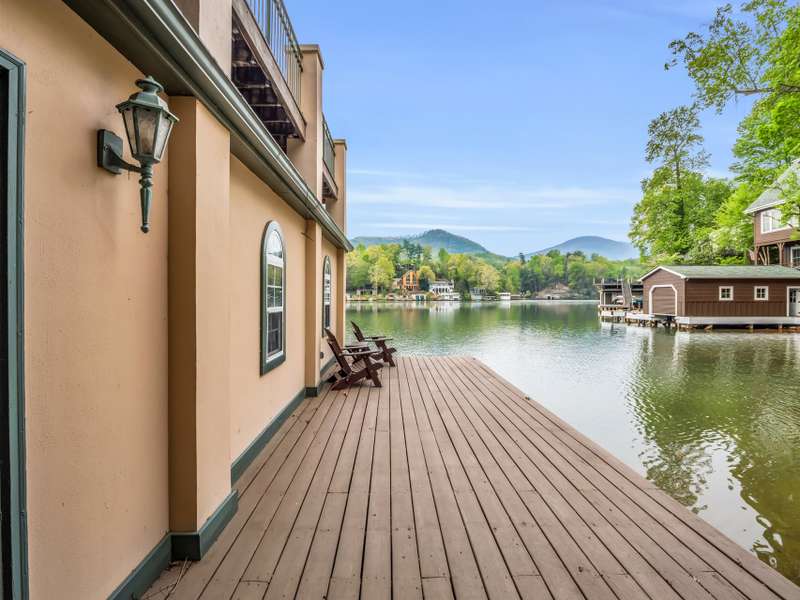 Welcome to Villa Rosa! This historic estate is renowned for its stunning architecture and picturesquesetting. Spanning over 4,500 square feet, this lakefront chateau offers five bedrooms suites each with its own recently upgraded bathroom. Featuring high-end fixtures, designer tilework, and spa-like finishes that bring a modern touch to the classic design. Inside, you'll find luxurious amenities including marble floors, intricate woodwork, and a gourmet chef's kitchen. Enjoy panoramic lake views from multiple balconies and terraces. Outdoor amenities include a heated ionic infinity waterfall pool, private beach, and a fully remodeled double boathouse with an expansive waterfront deck. This estate is being offered fully turnkey and has proven to be a highly successful vacation rental. With direct lake access, refined entertaining spaces, and unmatched detail throughout, Villa Rosa is a rare opportunity to own one of Lake Lure's most iconic and luxurious waterfront properties.