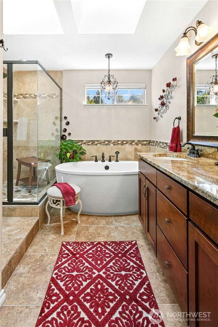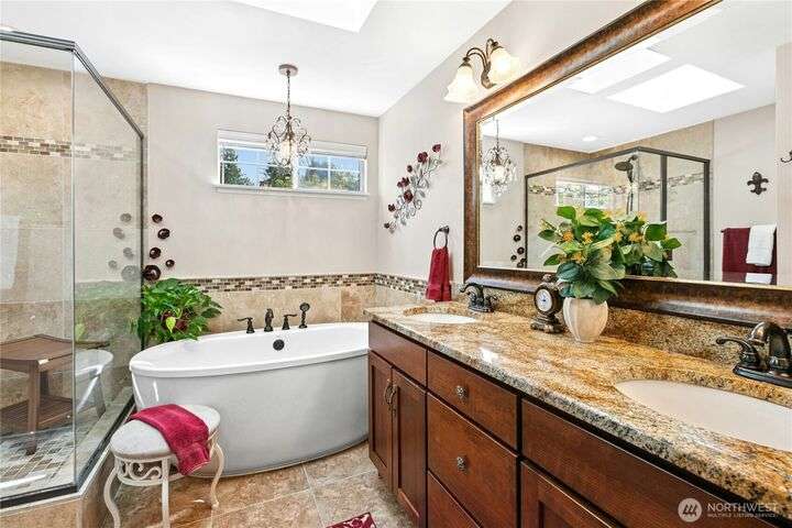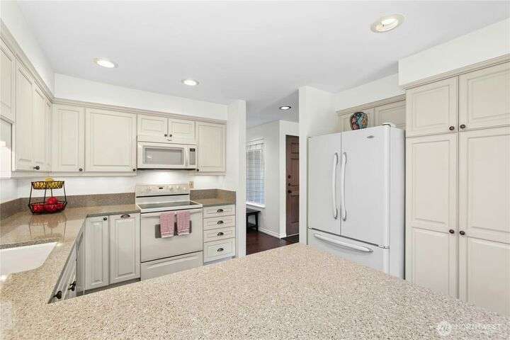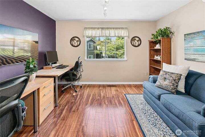 Step into this immaculate 2-story Kenloch home, where vaulted ceilings, natural light, and an open floor plan create bright,inviting spaces.Cozy up by the gas fireplace on chilly days or stay cool in summer w/central AC.The living room flows effortlessly to the dining area and modern kitchen,w/quartz countertops,a breakfast bar, and direct access to the newly updated composite deck—perfect for barbecues or relaxing outdoors.The primary suite is a true retreat, with a spa-like 5-piece bath including a deep soaking tub and a custom walk-through closet w/accent lighting.Hosting is a breeze w/a guest rm featuring a Queen wall bed.Enjoy low-maintenance landscaping and Klahanie’s pools, sports courts, trails, and top-rated schools. Pre-inspected!