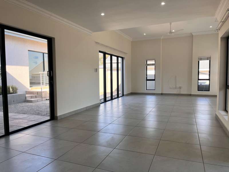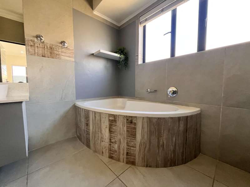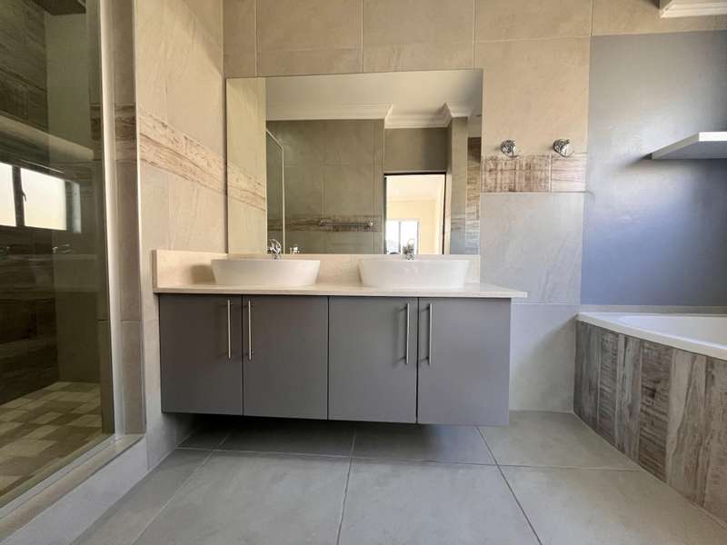 This stunning home is the epitome of upmarket living, boasting a striking feature entrance that opens onto spacious, light-filled living areas. The gourmet kitchen is finished with Caesarstone countertops and offers a separate scullery, seamlessly flowing into the open-plan dining and lounge areas. Stacking doors lead out to a private patio with built-in braai and a sparkling swimming pool?Çöperfect for entertaining. The home is elegantly tiled throughout in calming, neutral tones, with generously sized bedrooms featuring modern built-in cupboards. Beautifully appointed bathrooms add to the home?ÇÖs luxurious appeal. Double automated garages provide direct access into the home. Ideally positioned in the sought-after Western section of The Rest Eco Estate in Sonheuwel Ext 08, this home enjoys strict gated security, lush green belts, scenic views, and walking distance to Curro Private School.