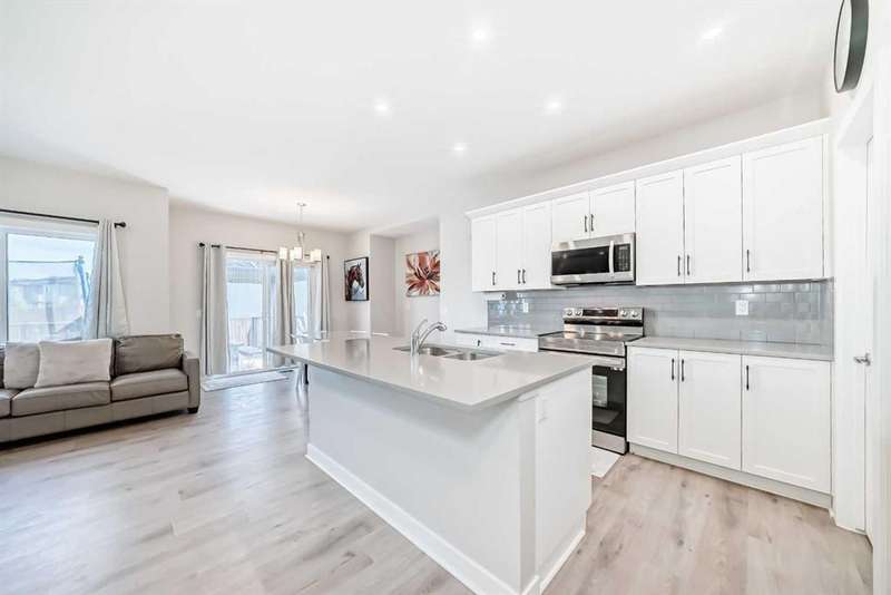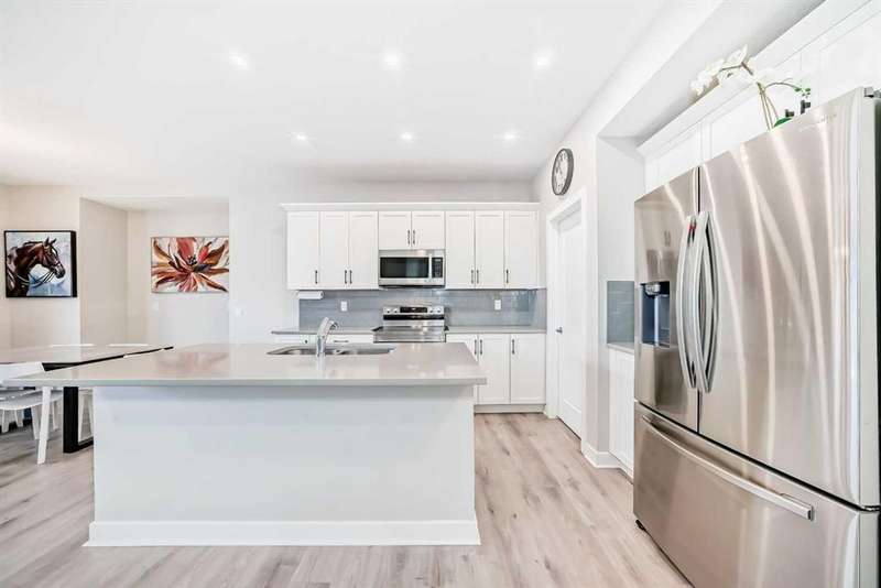 Welcome to Hampton Hills in High River. This well-maintained 4-bedroom, 2.5-bath home, built by Timber Creek Homes in 2021 offers over 2170 square feet of developed living space with 9-foot ceilings on both the main floor and basement family room. Step inside to a bright and open-concept layout, where the spacious living and dining areas flow seamlessly into a modern kitchen. The kitchen features ample cabinetry, a large island with quartz countertops, and stylish finishes-perfect for both everyday living and entertaining. A convenient 2-piece powder room completes the main level. Upstairs you'll find a generous primary bedroom with a walk-in closet and a 4-piece ensuite , along with two additional spacious bedrooms and another 4-piece bathroom off the hallway. The partially finished basement includes a cozy family room and a fourth bedroom. A bathroom with tub is partially finished -offering the new owner the opportunity to finish it to their taste. There's also potential for a future laundry area or a den/flex room - ideal for a gym or home office. Additional features include a double attached garage, a finished deck, and low-maintenance landscaping in both the front and backyard. Located in a quiet community close to schools, parks, and shopping, this home is perfect for families or investors. Don't miss out-book your showing today!