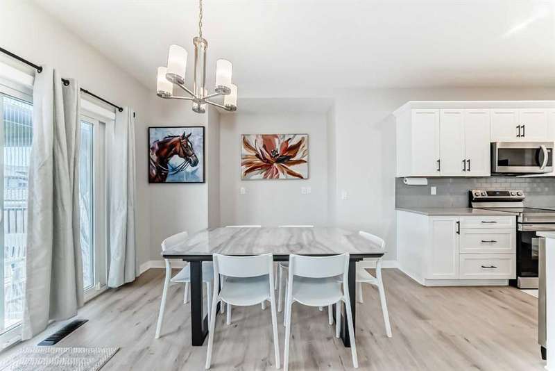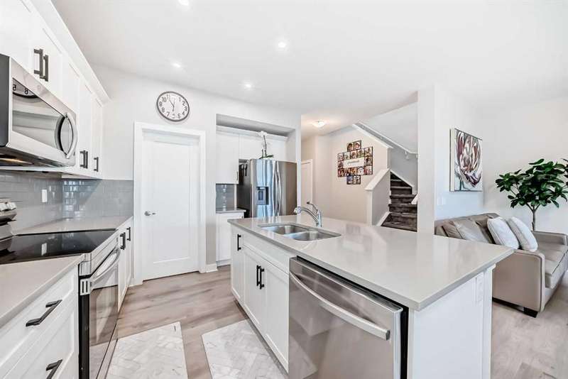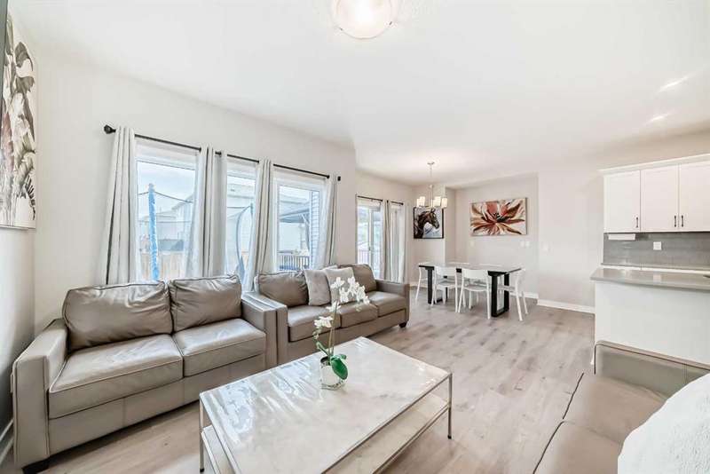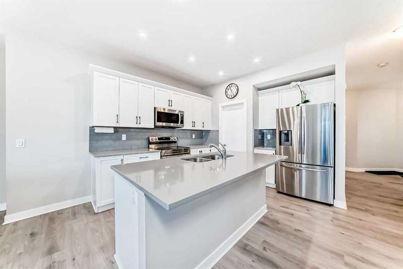 Welcome to Hampton Hills in High River. This well-maintained 4-bedroom, 2.5-bath home, built by Timber Creek Homes in 2021 offers over 2170 square feet of developed living space with 9-foot ceilings on both the main floor and basement family room. Step inside to a bright and open-concept layout, where the spacious living and dining areas flow seamlessly into a modern kitchen. The kitchen features ample cabinetry, a large island with quartz countertops, and stylish finishes-perfect for both everyday living and entertaining. A convenient 2-piece powder room completes the main level. Upstairs you'll find a generous primary bedroom with a walk-in closet and a 4-piece ensuite , along with two additional spacious bedrooms and another 4-piece bathroom off the hallway. The partially finished basement includes a cozy family room and a fourth bedroom. A bathroom with tub is partially finished -offering the new owner the opportunity to finish it to their taste. There's also potential for a future laundry area or a den/flex room - ideal for a gym or home office. Additional features include a double attached garage, a finished deck, and low-maintenance landscaping in both the front and backyard. Located in a quiet community close to schools, parks, and shopping, this home is perfect for families or investors. Don't miss out-book your showing today!