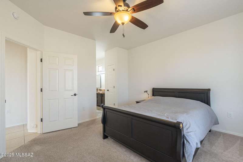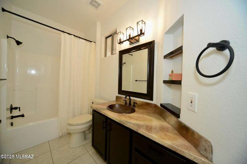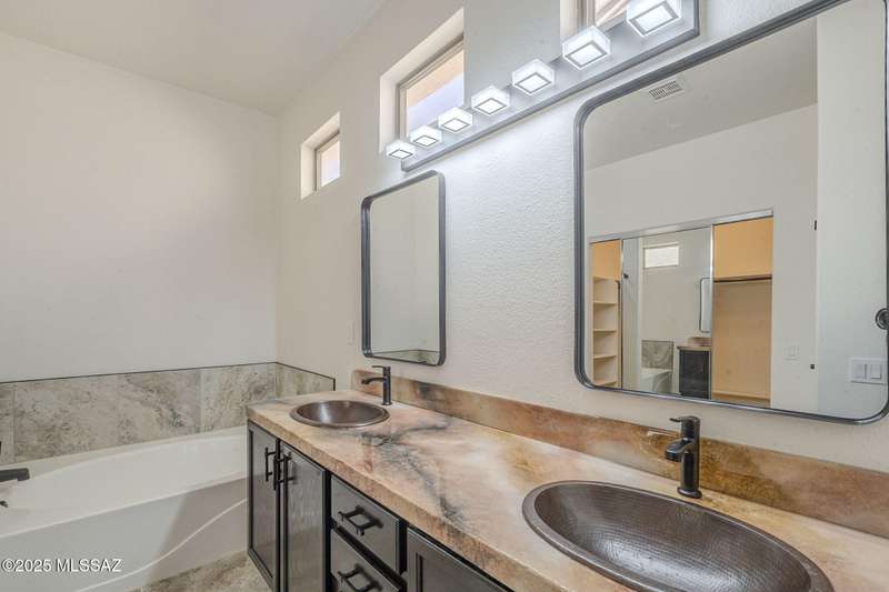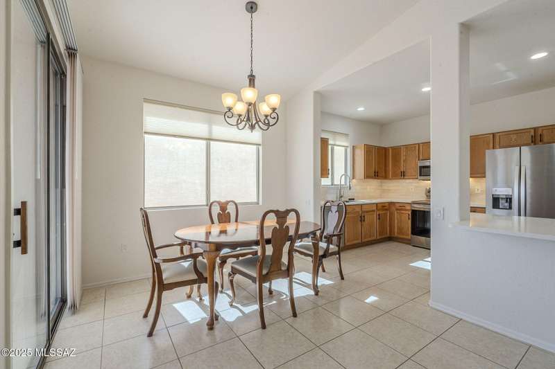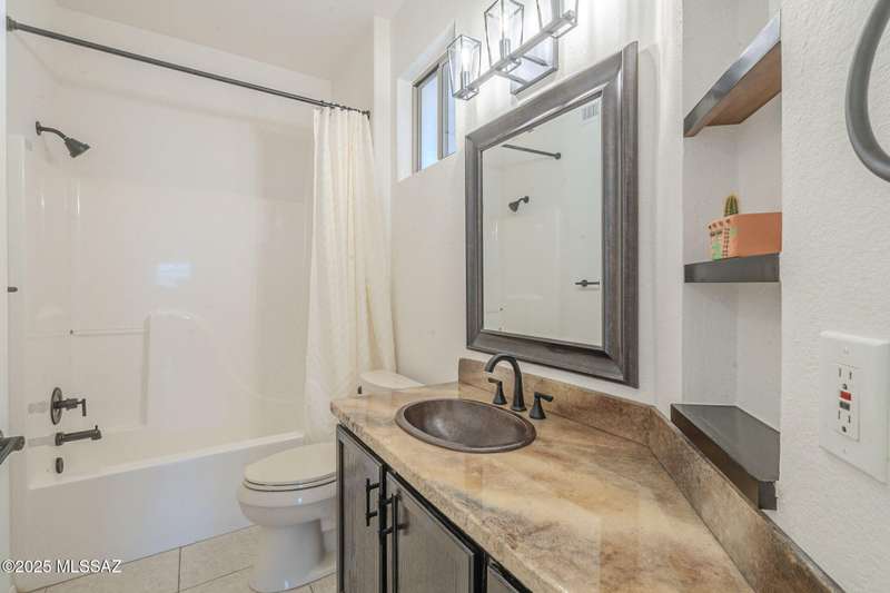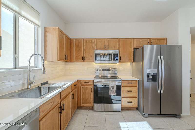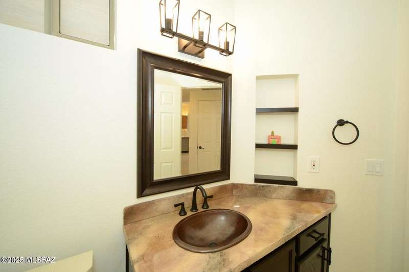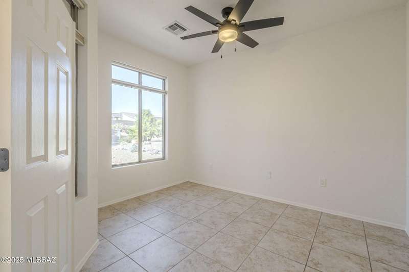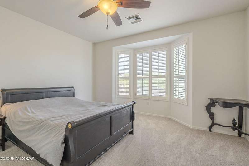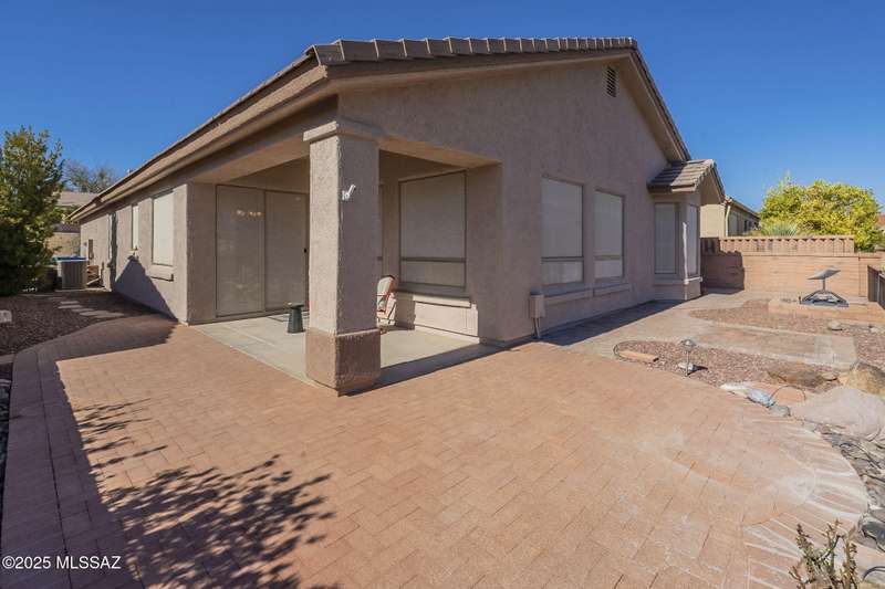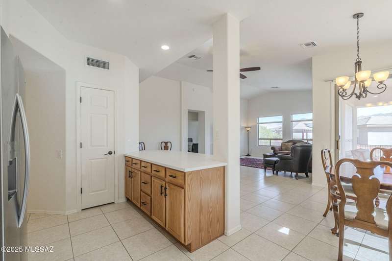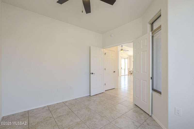 Welcome home to this beautifully updated 2-bed, 2-bath, 1,684 sq ft split floor plan w/ a versatile den ideal for an office, hobbies, or quiet retreat. Oversized windows & soaring cathedral ceilings fill the home w/ natural light, creating a bright, airy vibe. The open layout features neutral tile flooring, fresh interior/exterior paint & smart built-in storage throughout. The kitchen shines w/ a sleek one-level quartz island, subway tile backsplash, SS appliances & ample pantry space. Bathrooms add Southwest charm w/ hammered copper sinks & custom epoxy counters. Energy-efficient upgrades include full-house solar screens, 48'' blown-in insulation & new roof underlayment (2021). Quiet location w/ peek-a-boo mountain views.