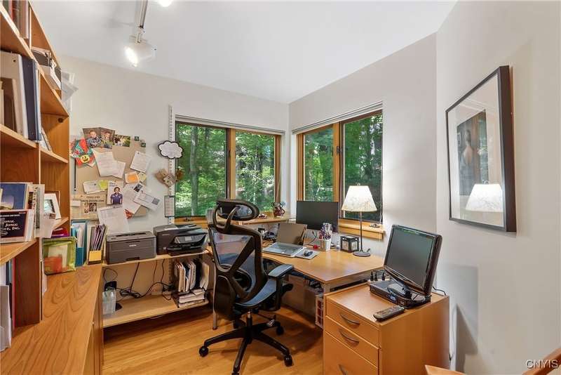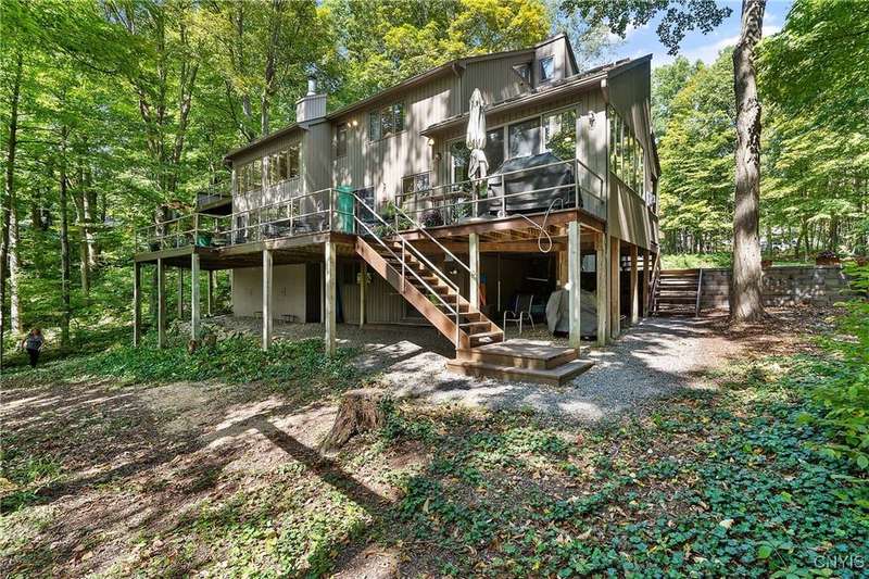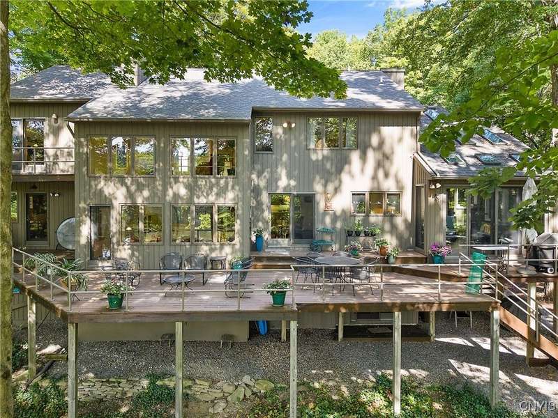 Stunning, Custom built Contemporary, 1.7 acres, on Snooks Pond, with 122 feet of deeded waterfront. Drive down your private driveway to your future home and be impressed !! As you open the front door to your large foyer, you will see a wall of windows viewing Snooks Pond from your great room. Open concept. Wood burning fireplace. Light & bright, chef's dream kitchen with Thermador, gas stovetop, Bosh 3 tier dishwasher, double, Bosh, convection ovens. Counter space galore ! Built in China cabinet. Large mudroom with wet sink to the 3 car garage. Year round sunroom has a gas fireplace, 9 ft glass sliders to the 35 ft deck. Off the great room is a large, 1st floor bedroom with full bath, also a private, office/music room. Upstairs has a spacious loft with large bookcases, sitting area, all with hardwood flooring ! Exceptional, primary bedroom, cathedral ceiling & balcony off. Huge, walk-in closet /extra sink/vanity area. Primary bathroom with large, walk-in shower, Jacuzzi tub, bidet/vanity/sink, all in pristine condition. There are 2 additional bedrooms, each having a ladder to an upper loft/sleeping area, or area for stuffed animals-decor. In the 2 bedrooms are walk-in closets with their own vanity/sinks. Full bath is shared between the 2 bedrooms. Your family will enjoy the 2nd floor laundry room/skylights. Walkout basement has a recreation room, full bath, and 2 large storage rooms, 1 having a walkout to the backyard. Wonderful, wooded oasis backyard to the spectacular, waterfront with floating dock. Swim, Kayak, windsurf, & entertain in your backyard !! Plenty of room for the kids to play ! It doesn't get better than this within 5 minutes to all F-M Schools. This is the total package that will make your friends envy ! Buyer could save $610. off School taxes for BASIC STAR if they apply. Come See !!