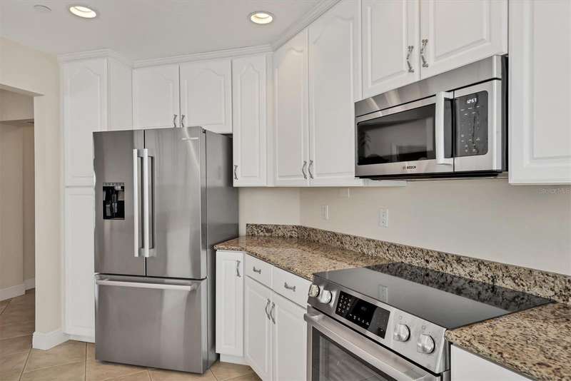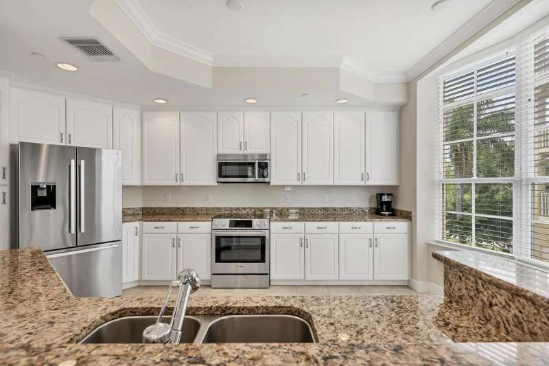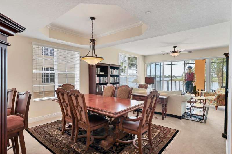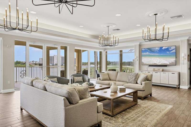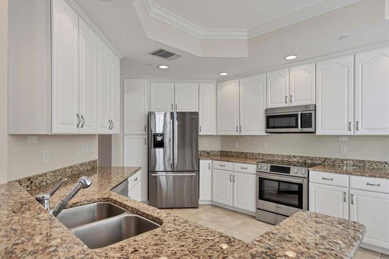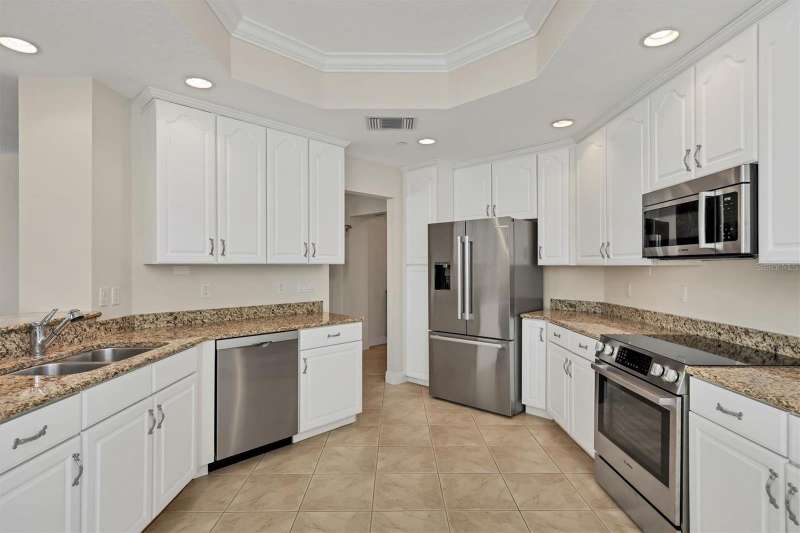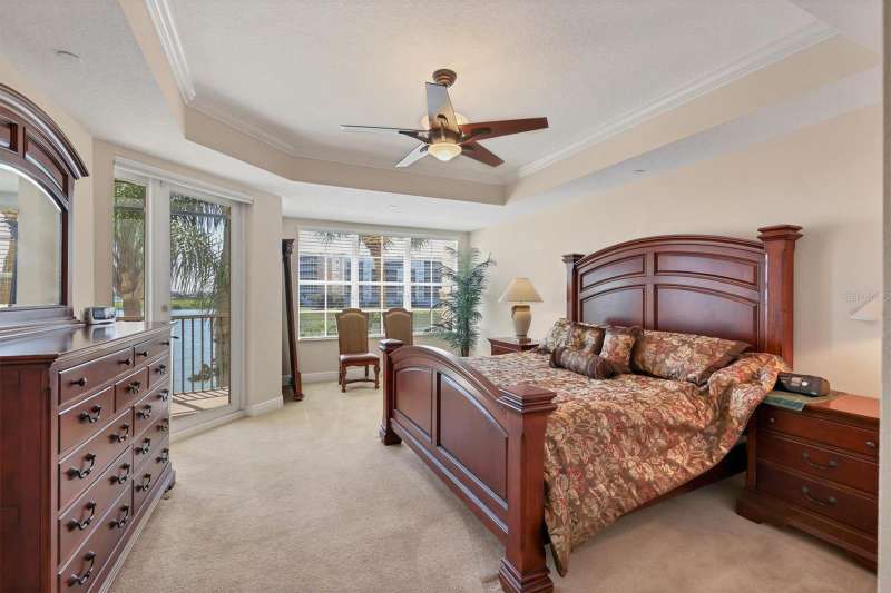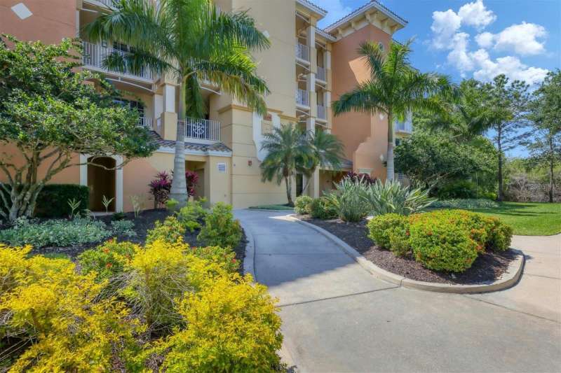 Live the Florida lifestyle you have always dreamed of in this luxurious 3 bedroom 3 bath condo located in the heart of Lakewood Ranch. This elegant condo lives large like a home. Upon entering the grand foyer, you will be impressed with the expansive open floor plan filled with bright natural light from being an end unit with large windows. The living room & dining room are comfortable spaces for family and friends to visit and enjoy the sparkling water views of Lake Uihlien. A new A/C unit was installed in 2025. Chefs will love the well-appointed kitchen with new Bosch stainless steel appliances, wood cabinetry, granite countertops, a pantry closet, and designer touches. A newer garbage disposal has also been installed. There is a breakfast bar for morning coffee or late-night snacking. The splendid primary master bedroom has large windows with gorgeous water views. It features crown molding and two walk-in custom closets. The master bath is an en-suite bathroom with soaking tub, separate shower stall, dual vanities, makeup counter, & solid surface countertops. On the opposite side of the condo there are two spacious guest bedrooms, one with an en-suite bathroom with walk in shower. Another hall bathroom features a tub shower combination with a vanity for all your guests. The inside utility room features a full-size washer & dryer plus a laundry sink and closet. The spacious screened lanai is a perfect spot where you can totally relax and enjoy the scenic water views of Lake Uihlein and the Legacy Golf Course. To top it all off, there is an oversized two car private garage, plus a storage area. The WaterCrest community is a private gated community featuring buildings with a secured elevator & lobby. The resort style amenities include a beautifully appointed two-story clubhouse, large fitness center, meeting rooms, kitchen, heated pool and spa, and a community manager. The community’s location is within easy walking distance of all the amenities in downtown Lakewood Ranch, including restaurants, movie theatre, shops, and community events. Also very conveniently located to Sarasota, the UTC Mall, Nathan Benderson Park, Mote Marine’s Science Education Aquarium, Sarasota/Bradenton airport, and the I-75 corridor. Come and enjoy the Lakewood Ranch lifestyle at Watercrest!