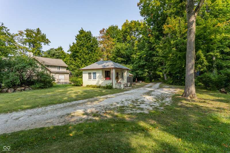 1414 E 116th Street has a prime location on the north side of 116th street just west of the Westfield Blvd/Rangeline Rd roundabout in Carmel. Tucked between two established neighborhoods it is close to shopping, Central Park and more. This property offers 3.62 wooded acres with two detached homes. The main residence, approx. 4,212 sqft, includes 5 bedrooms, 4 full and 2 half baths. Originally built in the 1930s with later additions. The front home home is a 702 sqft 1 bed/1 bath bungalow, formerly a rental. The lot includes mature trees, partial fencing, an outbuilding, and a currently inoperable in-ground pool. Roof is newer. Property sold AS IS.