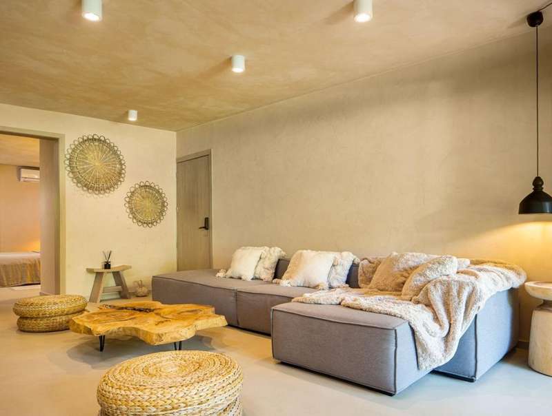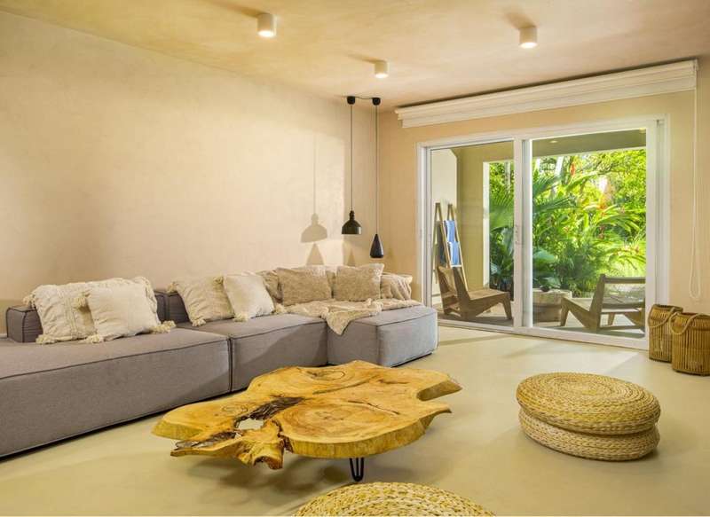 * The air-conditioned living area with a very comfortable couch opens towards the covered terrace and private garden.
