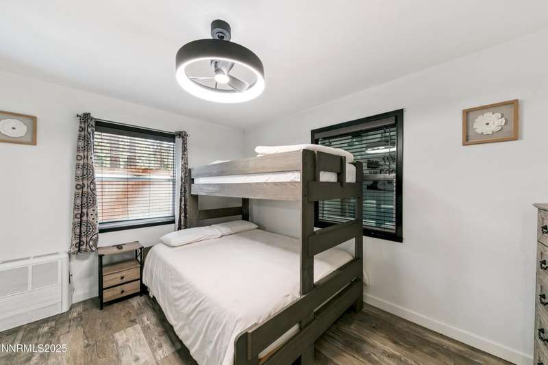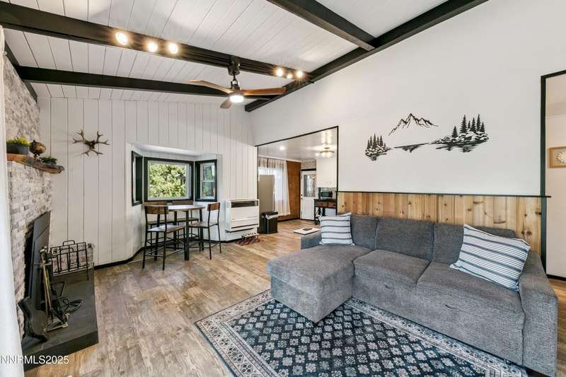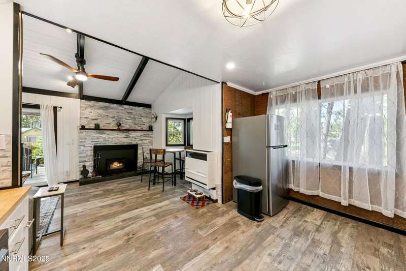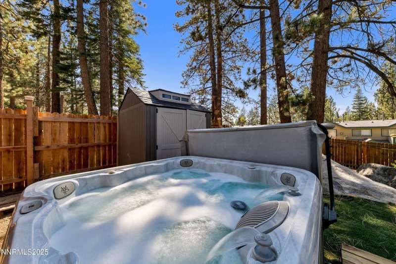 A perfect little cabin that is totally remodeled and located at the end of a cul-de-sac in Lower Kingsbury. Featuring modern comforts with a rustic charm, this stylish remodel includes a new gas stove & refrigerator, stainless steel appliances, new interior paint, new windows, blinds, flooring, lighting, fixtures, light switches, walk-in shower, heated towel rack, on demand hot water heater, electrical, and all new furnishings. There is a mud room/entry room with washer, dryer & heated floors, and a bonus room in back with new sauna. The exterior features a brand-new roof, paver walkway, back deck, hot tub and new completely fenced back yard, along with two storage sheds. Location wise is fantastic! Being able to walk to several local eateries & bars, Kahle Park & Gym, Nevada Beach, and even to all the action in the casino corridor, including the New Tahoe Blue Event Center, and also only a five-minute drive to world class Heavenly Valley Ski Resort. Located on a .27-acre lot with plenty of parking, and in a Green Zone, which is approved for a vacation rental permit, makes this a great investment or a perfect little Tahoe getaway.