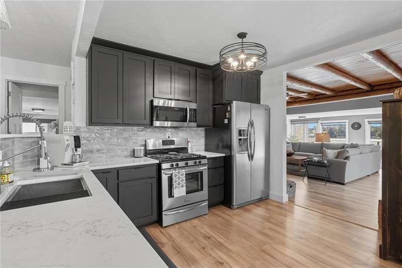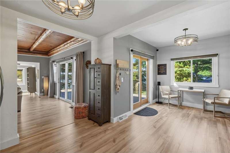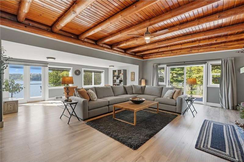 Stunning lakefront home with 3 bedrooms, 2.5 baths and panoramic views of Lake Chetek! Offering over 2,000 sq. ft. of main-level living, this residence blends modern renovations with the timeless charm of exposed beam ceilings, creating a warm and inviting lakeside atmosphere. Set on a rare south-facing 235 x 170 lot, the home is centrally located on Lake Chetek, providing premier access to the entire 3,800-acre chain of lakes -- perfect for boating, fishing and enjoying the many waterfront restaurants and bars. A massive 36 x 30 garage ensures plenty of space for vehicles and lake toys, while the peaceful setting is just minutes from town and everyday conveniences. Lakefront living at its finest -- move-in ready and truly unforgettable!