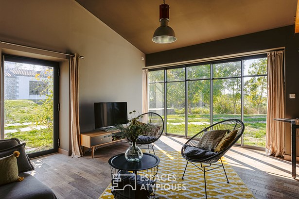 Formerly the lock keeper's house, it has preserved its soul of yesteryear while offering contemporary fittings and high-end noble materials. The main house overlooks the marsh and reveals a view across the surrounding countryside and its various waterways.