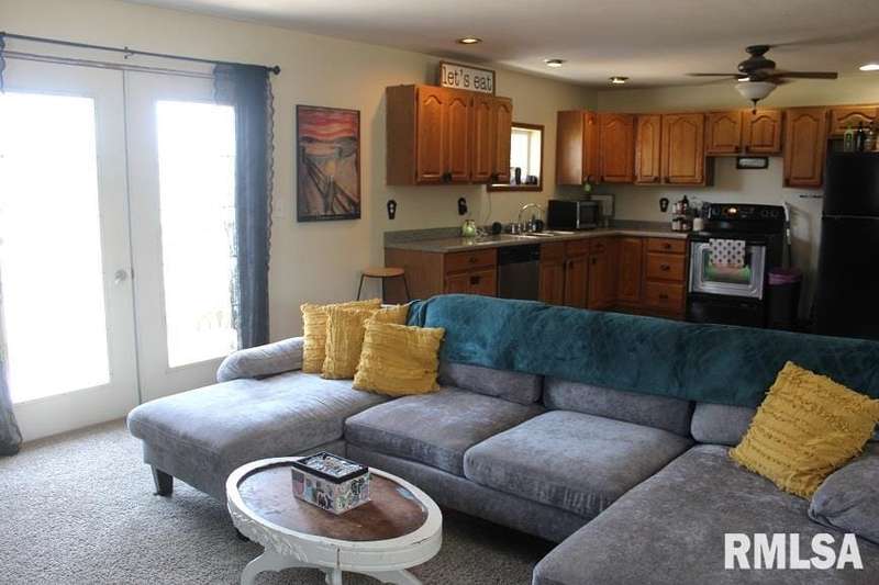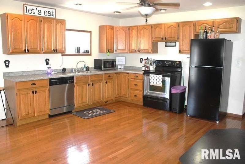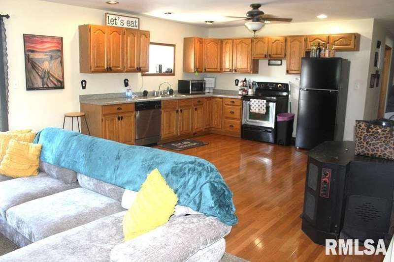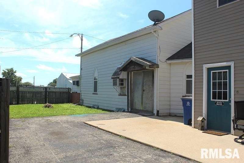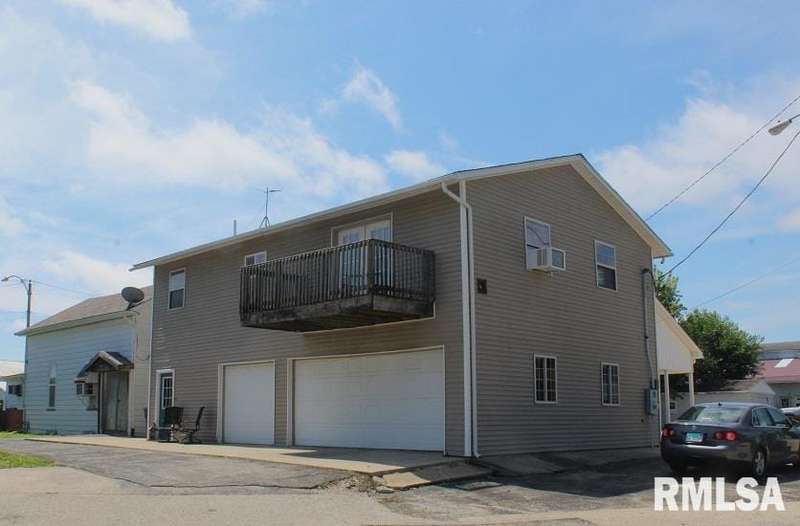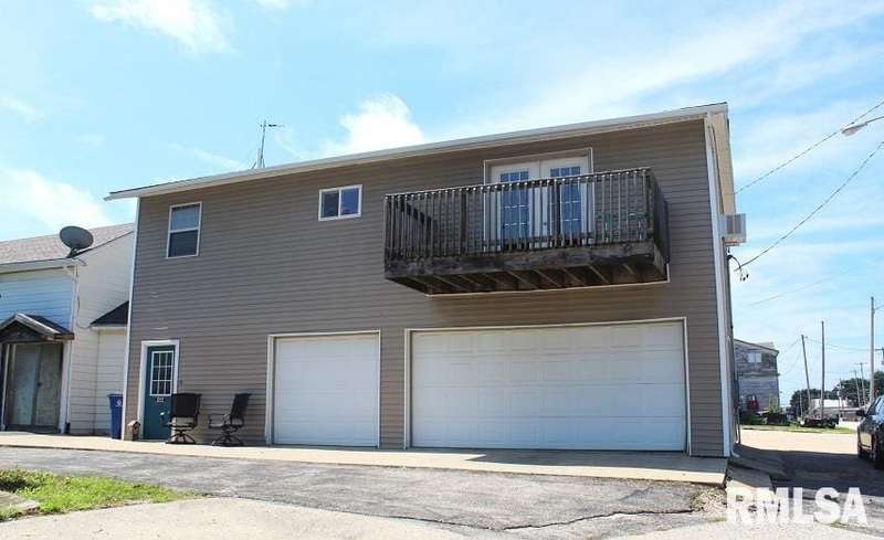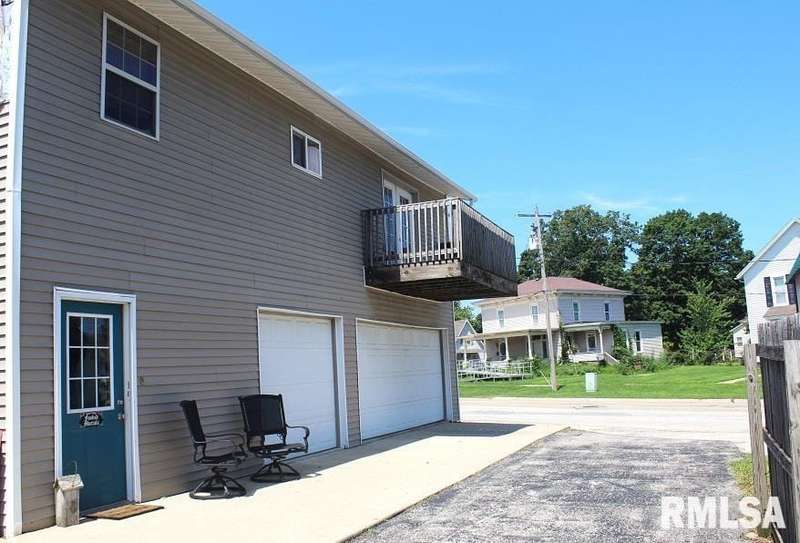 Nice 2 bedroom, 1.5 bath home with a 3-car heated garage plus an additional 992 SF older building that would make a nice workshop. Enter this home thru the main floor side entrance by driveway. This floor features an entry room, an unfinished half bath & a 3-car garage. This floor has radiant floor heat & is heated by a water heater in the entry. The water heater in the closet provides hot water to the second floor. The upper-level features a living room with French doors that lead to the wood balcony (a corn burner stays but has not been installed), an eat-in kitchen with nice oak cabinetry, counters & stove & refrigerator that stays, 2 nice bedrooms & a full bath with tub/shower combination, sink with vanity & stool plus the laundry area. This floor has electric BB heat. Two window air conditioners stay. The house was built in 2008 & has had lots of updating since 2020. The house address is 17 NW 2nd St. but is on 1 parcel with 104 Front St which is the bldg. that is on this property. The water lines to this building have been cut and the old furnace has not been used in a long time. Age of the bldg. is unknown.