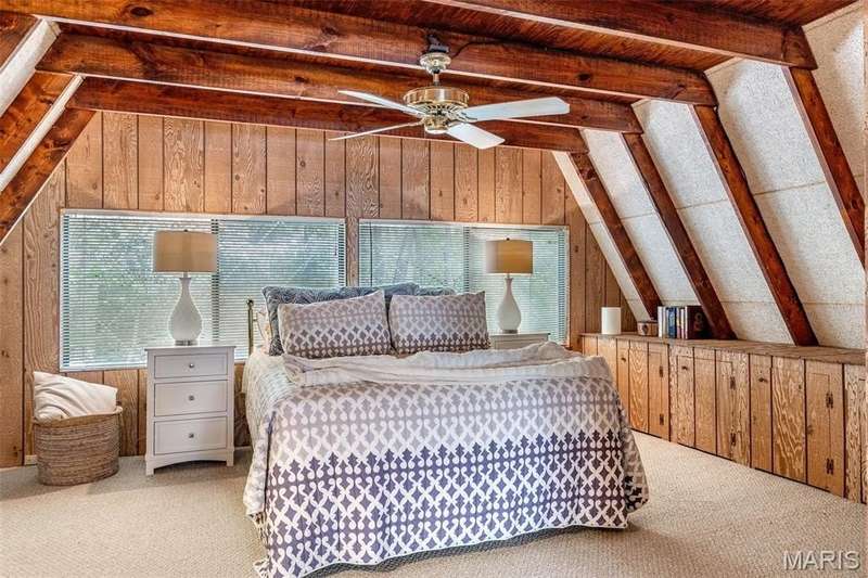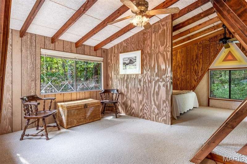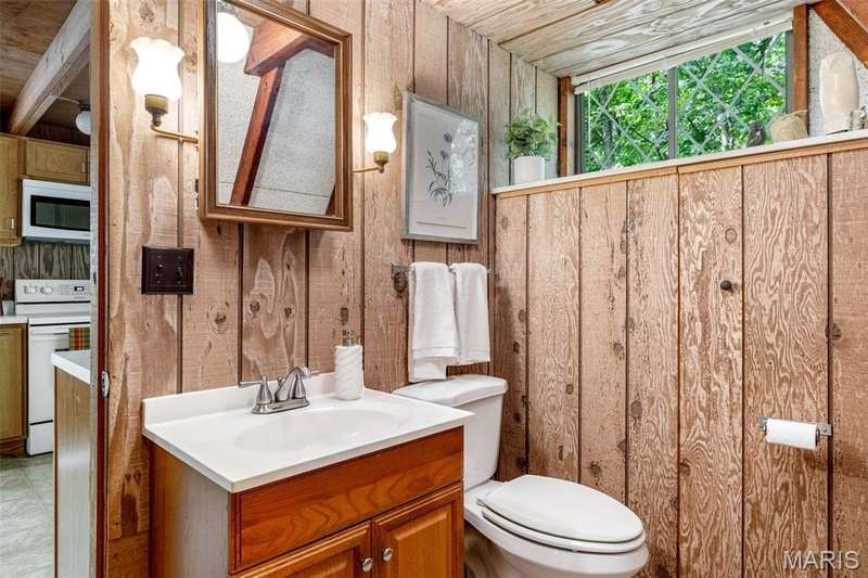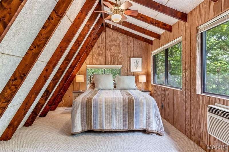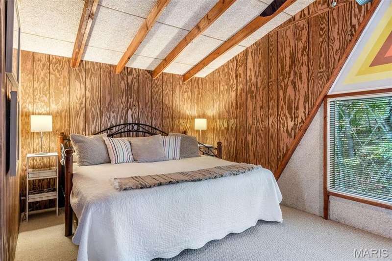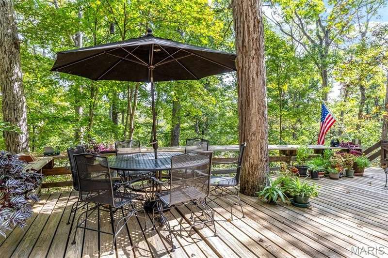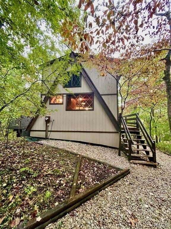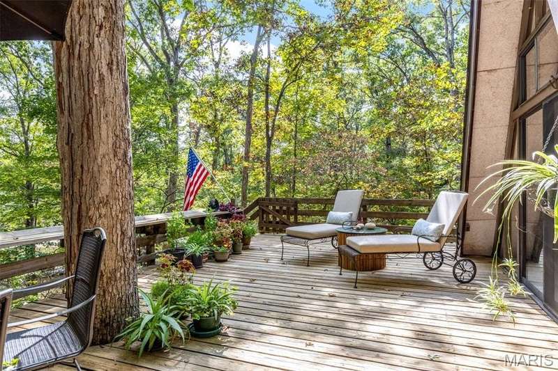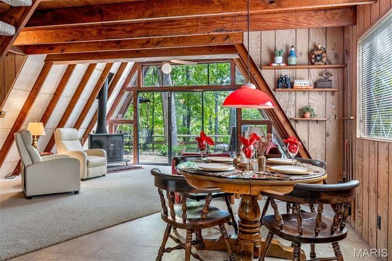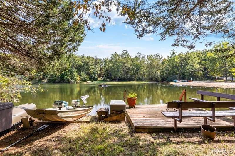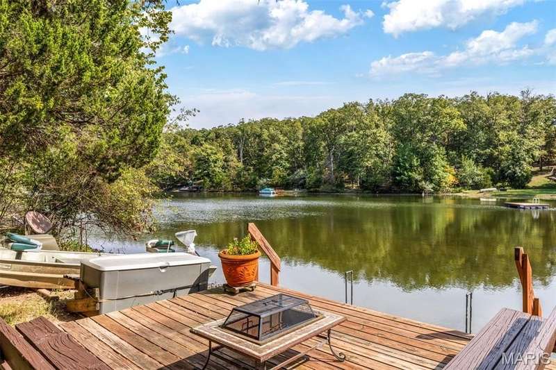 This well-maintained lakefront chalet-style retreat on the shores of highly sought-after Lake St. Gallen combines rustic charm with modern resort living. Featuring vaulted ceilings, expansive windows, and an open layout, the home is filled with natural light and wooded views. Step outside to a spacious deck—perfect for grilling, entertaining, or simply relaxing—or stroll down to the water’s edge for boating, fishing, and swimming on one of Innsbrook’s most popular lakes. Just around the corner from the beach—or kayak or swim over from your own dock—you’ll have endless ways to enjoy the lake lifestyle. Inside, the home offers 2 bedrooms and 1.5 baths, designed to function equally well as a cozy weekend getaway, an income-producing vacation rental, or a peaceful family retreat. The open living area flows easily for gatherings, enhanced by a charming wood-burning stove, while the expanded kitchen provides extra space for cooking and entertaining. Large windows frame the serene natural surroundings, creating a warm and inviting atmosphere. Outdoors, the property shines with direct access to Lake St. Gallen and all the recreation it offers. A shed built in under the deck provides excellent storage for lake and outdoor gear. From sunrise kayaking to evening fireside relaxation, every season here invites you to slow down and connect with nature. Beyond your doorstep, Innsbrook’s gated community provides countless amenities—multiple lakes and beaches, hiking trails, golf, dining, concerts, and year-round activities. Just an hour from St. Louis, this private yet convenient lakeside escape captures the true Innsbrook lifestyle. Furniture is negotiable (please inquire). Don’t miss your chance to own a sought-after lakefront chalet on Lake St. Gallen—your piece of paradise in one of Missouri’s premier resort communities.