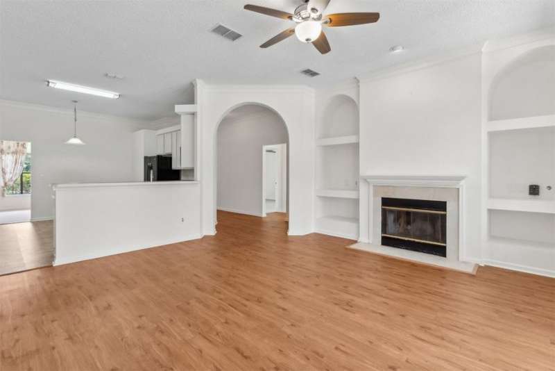 Located just 7 miles from the BEACH and move-in ready, this well-maintained home sits on an expansive interior corner lot in a sought-after community with low-HOA and no CDD fees. Boasting 3 Bedrooms, 2 Baths PLUS a separate office/den and over 2,100 sqft of open living space, this home truly offers both comfort and functionality. Inside, youll find a welcoming formal dining room, cozy fireplace, and French doors that lead to a spacious Florida room overlooking the fenced backyard. The courtyard-entry garage adds great curb appeal, and the nearly quarter acre lot provides plenty of space to enjoy outdoor living. Other great features include fresh landscaping, irrigation, large laundry room, 1 Year Home Warranty, and a spacious kitchen that offers a breakfast bar, appliances and plenty of cabinet/counter space! Located in a highly desirable area near A-rated schools, great shopping, local dining, and recreation?this home offers the space you want in the location you need.