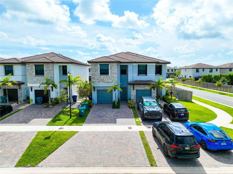 Stunning new construction corner twin home located in highly sought after Campo Bello, featuring 3 bedrooms and 2.5 bathrooms. Open floor plan includes a living area, a kitchen with plenty of built-in cabinets for storage, a breakfast counter and a dining area. Upstairs, find 3 bedrooms, including a primary bedroom with a walk-in closet and a spacious primary bath with a dual vanity sink. Designated laundry room and extended driveway. Step outside the oversized fenced backyard with a covered patio to enjoy relaxation in privacy or entertaining guests. HOA amenities include a clubhouse, pool, outdoor spa, and fitness center. Conveniently located near FL Turnpike, Black Point Marina, Florida Keys, and Homestead Air Force Base. Enjoy an immersive 3D virtual tour. May the force be with you!