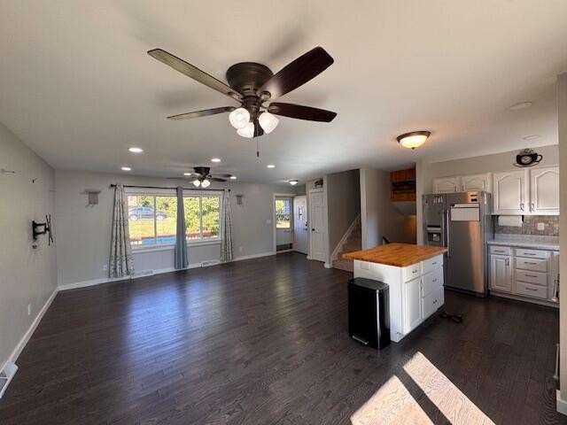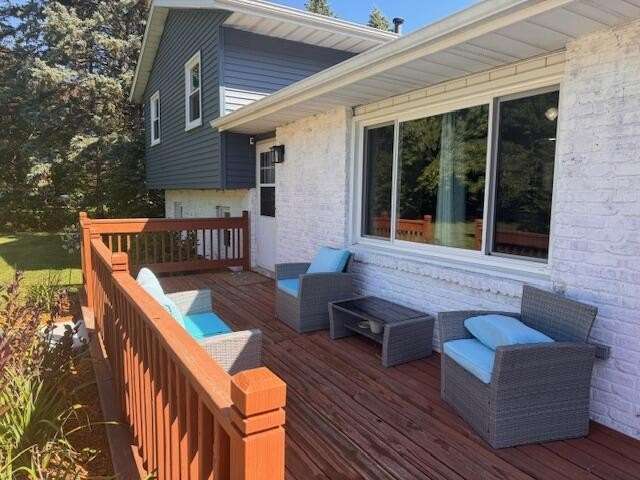 Welcome Home! This 3bd/2ba tri-level has been very nicely updated. You're greeted with an abundance of natural light with open concept living/dining/kitchen and beautiful hardwood flooring, All 3 bedrooms upstairs have brand new carpeting. Both bathrooms and laundry room have been completely updated. And the lower level family room is spacious and equipped with surround AV and an electric wall fireplace. This home also has a lovely front porch/deck with the same in the backyard leading into the pool. The backyard is open and flat - plenty of room for entertaining and play - and also includes a shed for storage.