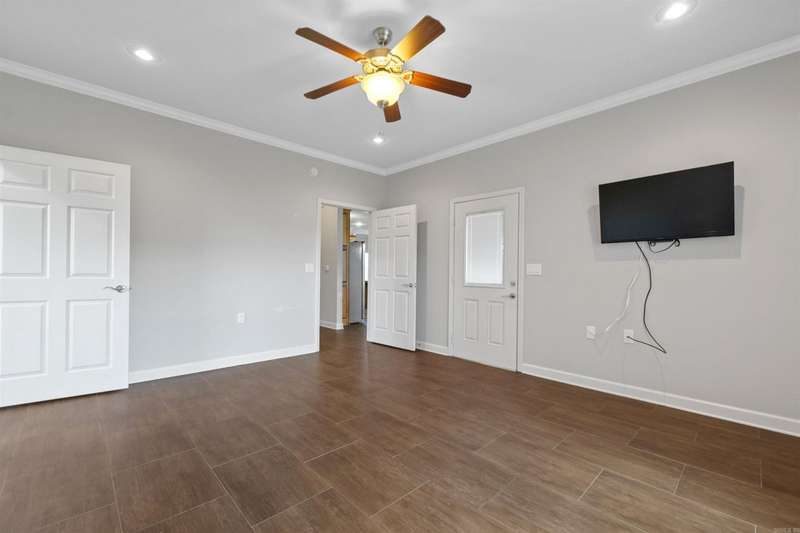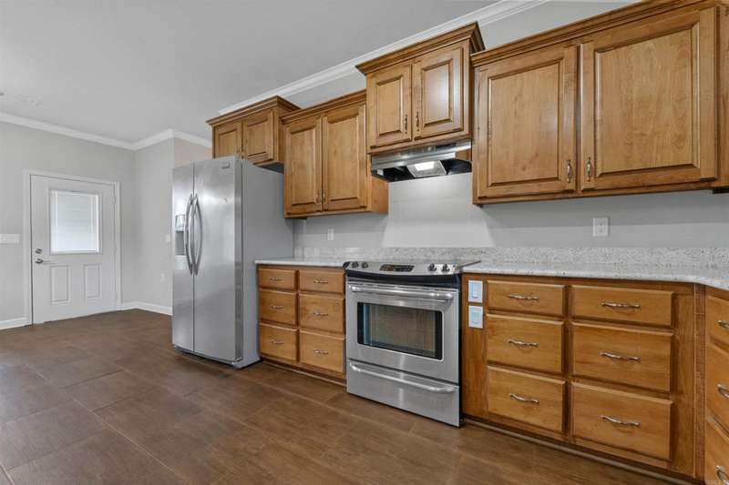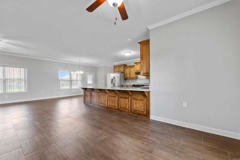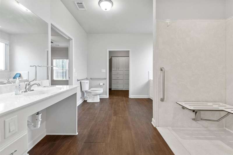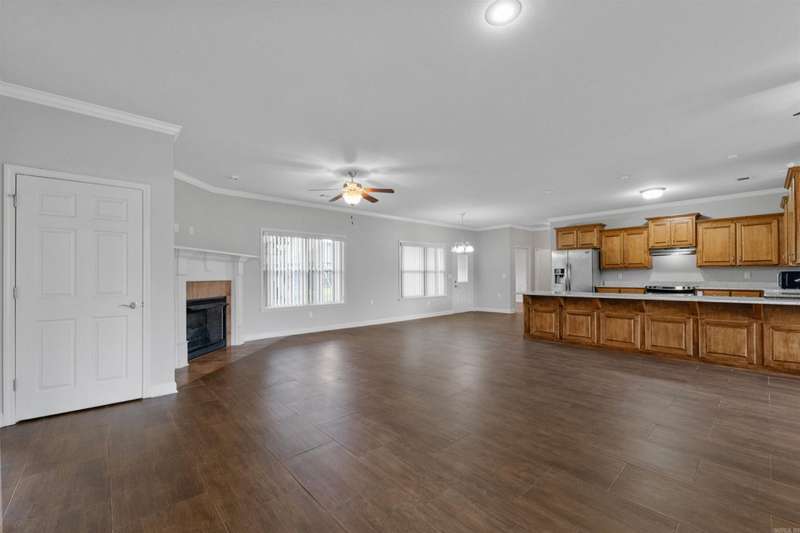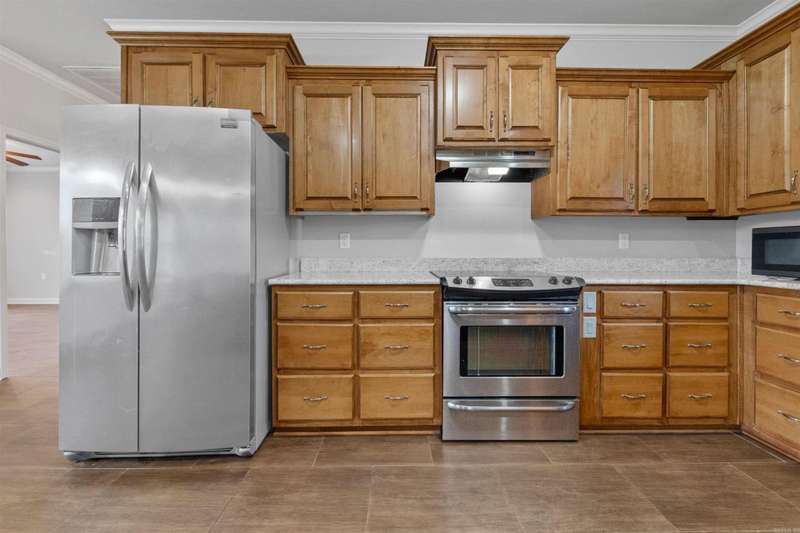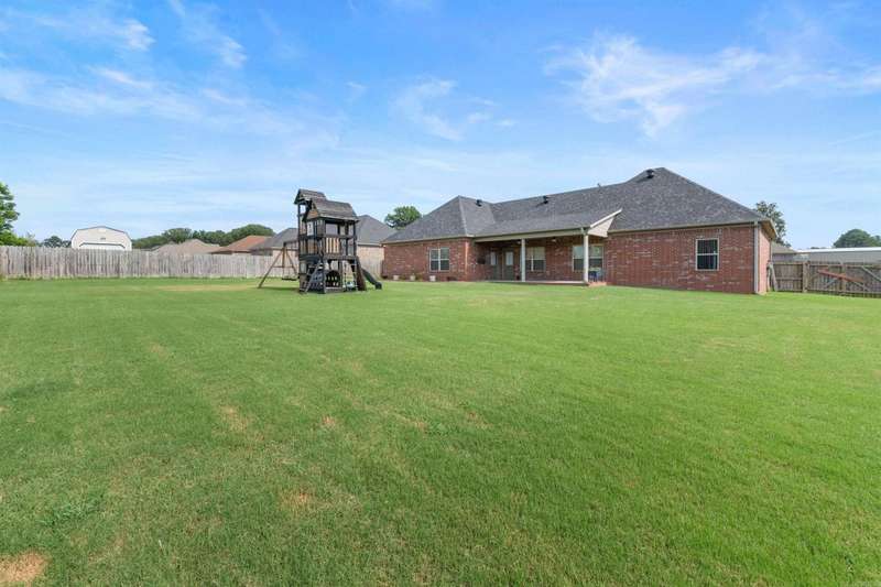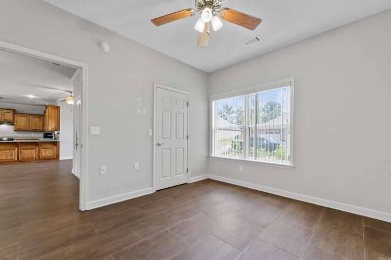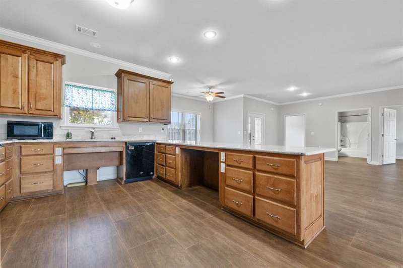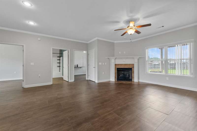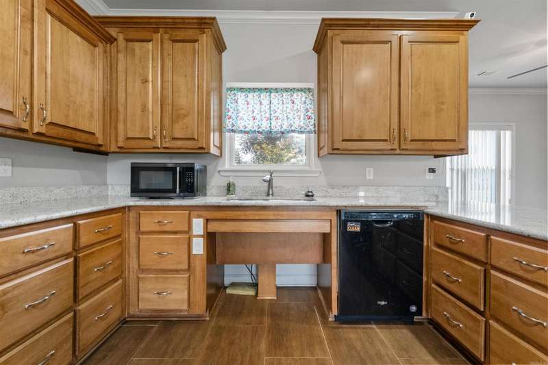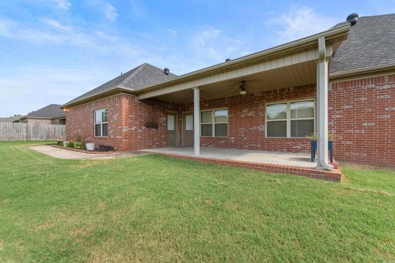 Discover comfort and style in this thoughtfully designed handicap-accessible home. Featuring an open concept layout with nonslip tile flooring throughout and 36" wide doorways for easy mobility. The spacious open-concept living area is anchored by a cozy fireplace, creating an inviting atmosphere. The kitchen boasts granite countertops, stainless appliances, and ample workspace. The primary suite is a true retreat w/direct access to the back porch. It's luxurious bath offers a huge walk-in closet with a built-in dresser, a luxurious walk-in heated jetted tub, and a custom walk-in shower with a retractable seat, a large vanity that allows open chair access. Step outside to enjoy the large fully privacy fenced yard. Plenty of space to unwind. The covered patio provides a perfect spot for outdoor dining or simply enjoying the view. A two car garage completes this exceptional property designed to meet accessibility needs without sacrificing elegance. Measurement is not approximate. Measuring encouraged