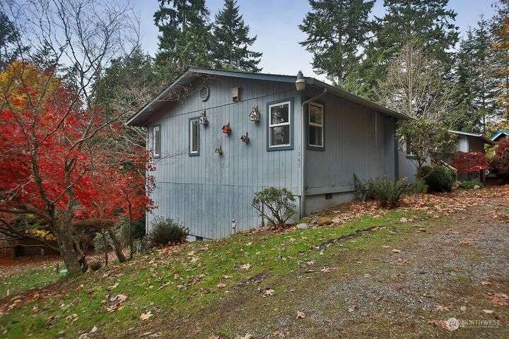 Nestled amongst the gorgeous trees, this charming 2-bedroom, 1.75-bath modular home offers quiet seclusion and main level living with an open floor plan. Abundant storage between the unfinished storage space under the house and two-car garage. Feels extremely quiet, but close to all amenities of Freeland, public beaches and so much more. Wired for generator. Good bones, but needs a little TLC, bring your vision & make this home your own. Perfect for first time buyers or those wanting to simplify and enjoy the Whidbey Island life.