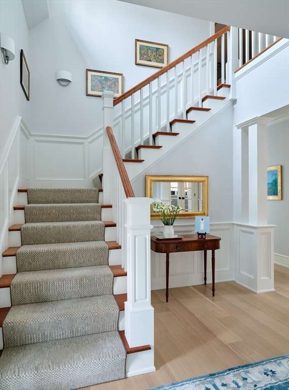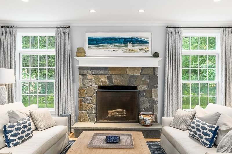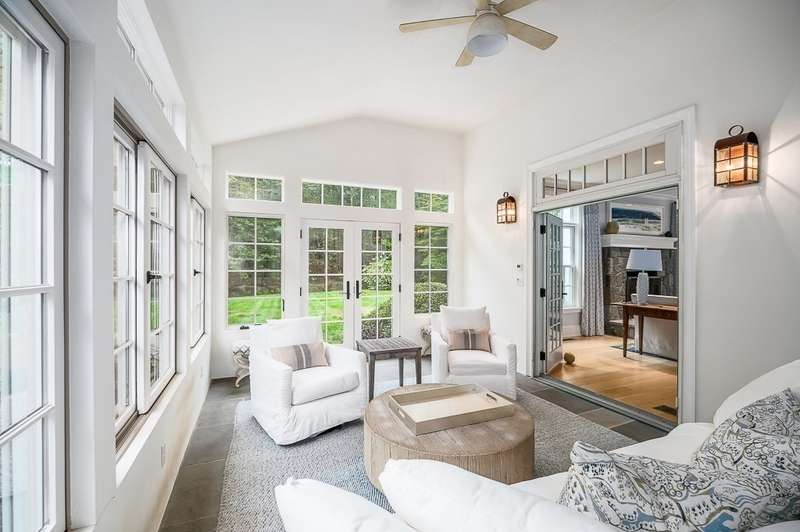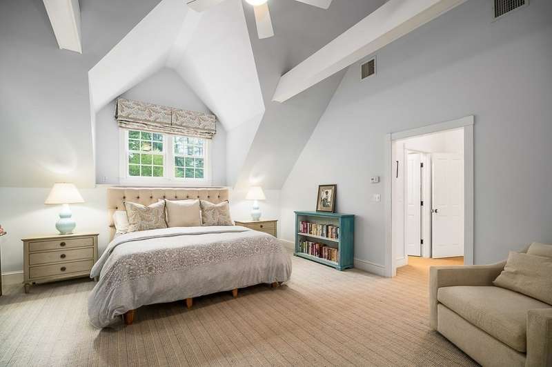 This exquisite shingle-style home, built in 2004 & updated in 2018, offers elegant country living on a secluded 6.5-acre lot with forest views. The residence showcases quality craftsmanship, detailed built-in cabinetry, and oversized windows that fill the space with natural light. At its heart is a gorgeous gourmet kitchen featuring two large islands with walnut and quartzite countertops, a large pantry, a wrap-around bar and seamless flow into the family & sunroom. The grand entry foyer opens to a formal dining room and a front-to-back living room, which also functions as a media room. Upstairs, the spacious primary suite boasts a cathedral ceiling, a window seat, double closets, and an ensuite bath, while three additional bedrooms, a bathroom, and a laundry room complete the second floor. The top level offers a private retreat with a large bedroom, a sleeping window seat, and a luxurious bathroom. The large level fenced backyard features a bluestone patio with a firepit and hot tub.