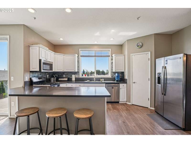 A grand entrance to this bright & airy, circular & open concept floor plan! Newer landscape in front & back that leaves an intentional open canvas. Quartz countertops, backsplash, SS appliances. Spacious primary suite w/awesome skyline view to Oregon, a huge walk-in closet. Park, pool, decked out clubhouse, high school and more all within walkable distance!