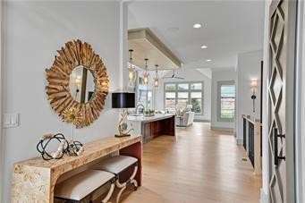 Lambie Homes WINFIELD luxury villa on walkout lot 9/D18 in Regents Park is pure perfection! Over 4000 square feet on two levels provides all the space you need, with two bedroom suites on main level, along with formal dining, great room, and amazing kitchen with a huge island. Great room has fireplace and built-in walk up bar where you can serve your guests in style. Every detail is thoughtfully executed in this grand home, and you will love the treed view from your covered porch! Lower level has very generous living space with large bedroom sizes, spacious rec room, and full bar. THIS HOME HAS A SPACE FOR AN ELEVATOR. Photos shown are of a previous model, and price reflects similar level of finish. Maintenance-provided lifestyle in Regents Park features a pool, clubhouse, dog park, pickleball court, and walking trails! PLUS Fantastic location just minutes away from the 135th corridor with all of the shopping, restaurants and services!