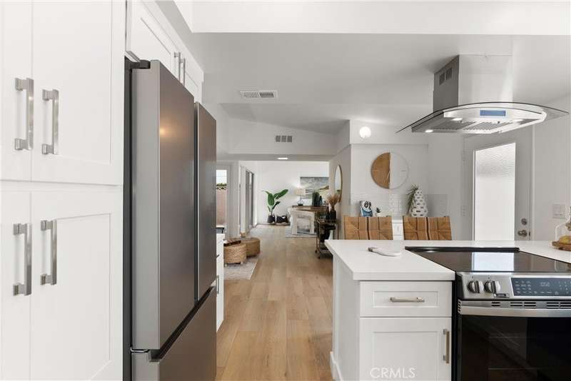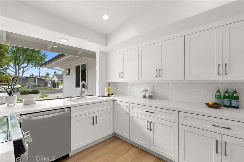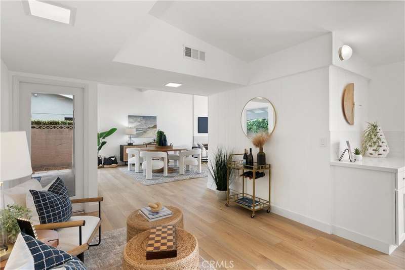 The possibilities for tomorrow are usually beyond our expectations. Welcome to the prestigious Rossmoor enclave, where refinement, good manners, & friendly neighbors make every day a reason to smile. The pace of daily life is in slow motion as neighbors wave hello, kids ride bikes, & folks jog by getting their fitness on. This neighborhood is for those seeking a throwback to the tranquility & comfort of days gone by. The curb appeal of this beautifully remodeled, single level home is enhanced by dual pane windows, new white paint, & a lush, manicured lawn. Now step inside. Natural light cascades through the floor to ceiling windows illuminating the charm & beauty within. A life well lived is born of good music, literature, art & entertainment. The flow of this expansive floor plan, & the size of these rooms, is an invitation to explore the essence of what it means to live well. The heart of the home is the kitchen & this newly upgraded masterpiece will delight the family chef. New white shaker cabinets, smooth quartz countertops, & stainless steel appliances create a space where stories are told, cookies are baked, & kids linger for morning hugs. Adding to the charm, beauty & panache’ are new luxury vinyl flooring, two upgraded bathrooms with new vanities & quartz countertops. Fresh, interior & exterior paint, an interior utility room, & a 2 car garage. The warm glow of a cozy fire in the living room fireplace makes for good movie nights & romantic encounters. Walls of sliding glass blur the lines between indoor & outdoor living & offer an invitation to step outside to relax & rejuvenate. Whether you seek solitude with a good book or a celebration of life’s blessings with friends & family, this multi-functional yard delivers. When day is done & moonlight fills the nighttime sky, lift a glass, flip burgers, dine al fresco under the expansive, covered patio, play games & share stories. This residence is served by the coveted Los Alamitos school district, renowned for its educational excellence, providing a top-tier learning environment for growing families. Nearby, Little Cottonwood Park offers a year-round fun fest for adults & kids alike with play-center, sand volleyball & basketball courts, picnic shelters, & BBQ’s. Experience the epitome of the SoCal lifestyle where comfort, convenience & natural beauty converge in perfect harmony in the desirable Rossmoor enclave. Life is what you make it & yours just got exceedingly better. Welcome home.