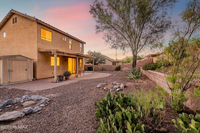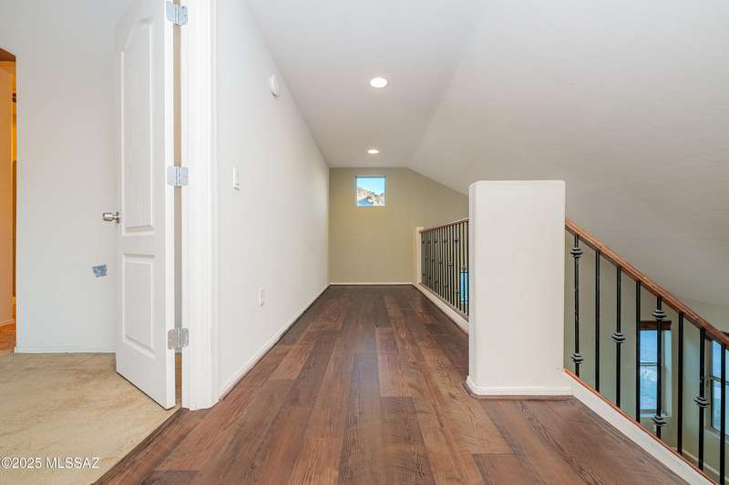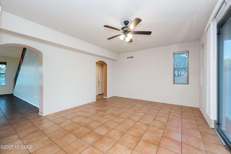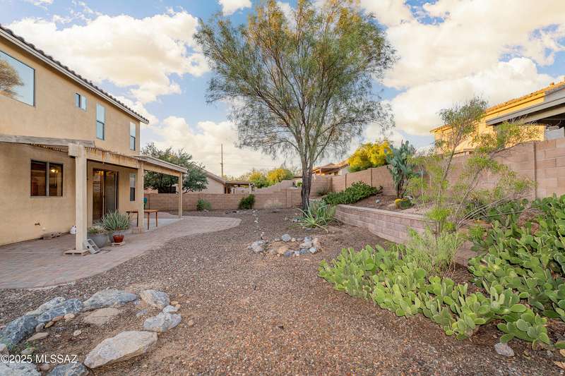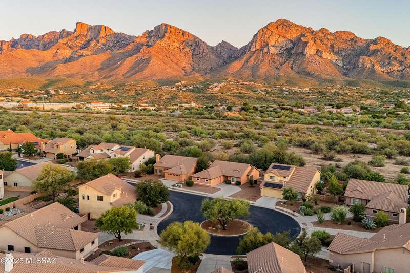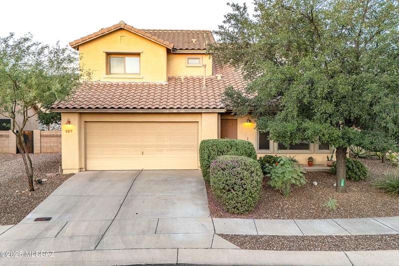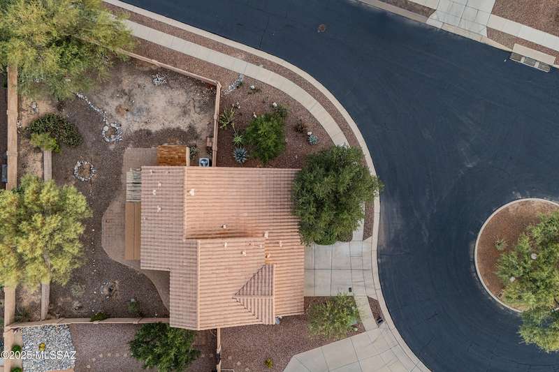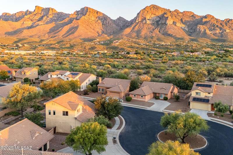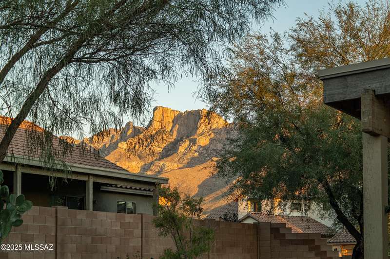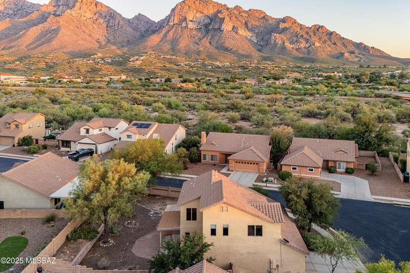 Welcome Home to Oro Valley Living! Ideally situated on a quiet cul-de-sac and corner lot with mature trees, this 3-bedroom, 3-bath home offers flexibility and comfort. The versatile first floor includes a full bedroom and bath with a private rear entrance, perfect for use as an office, guest quarters, or a mother-in-law suite.The front entry opens to a living and dining area, beautifully accented by a wrought-iron staircase and an open loft above. Toward the back of the home, you'll find the kitchen, casual dining area, and family room, an inviting space for everyday living and entertaining.Upstairs, the spacious primary suite includes an attached sitting room or dressing area that can easily be converted into a fourth bedroom.