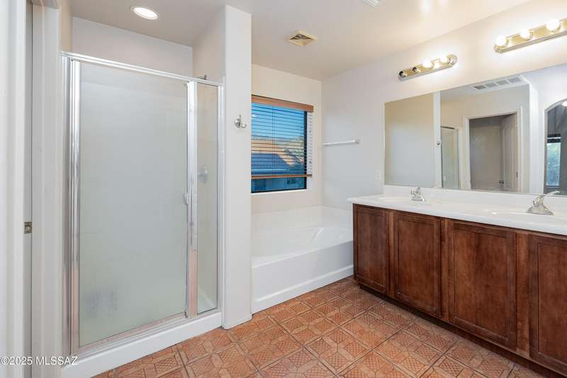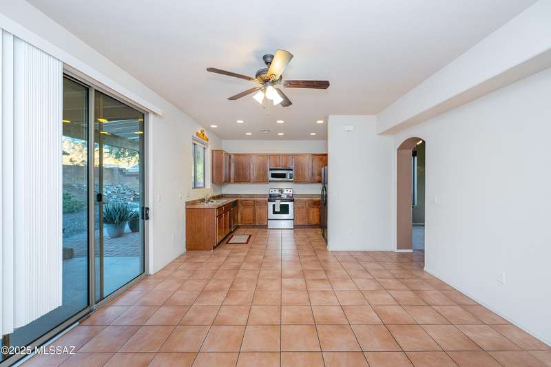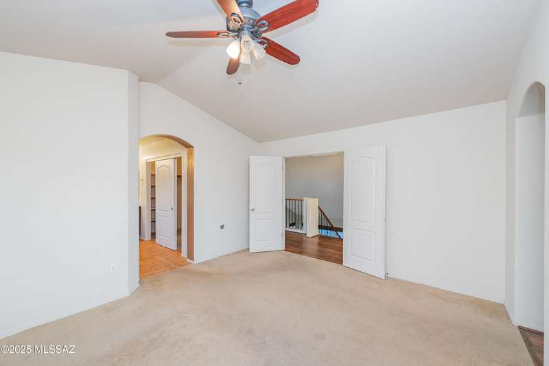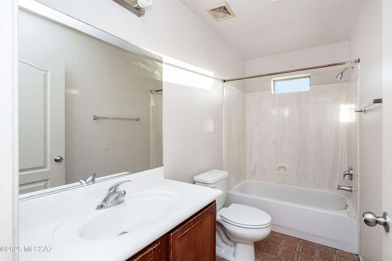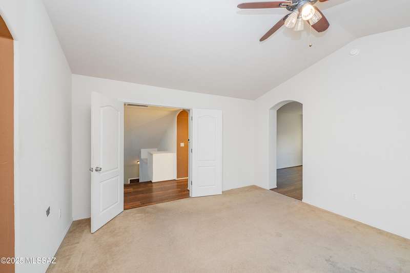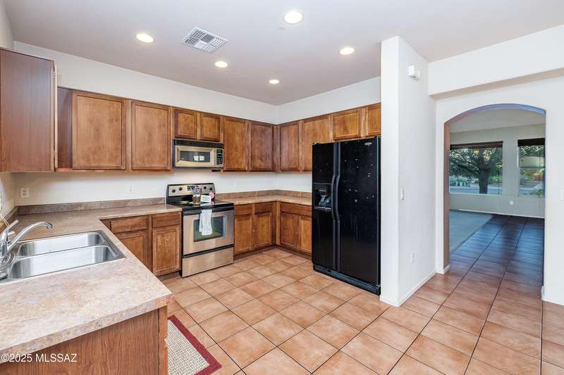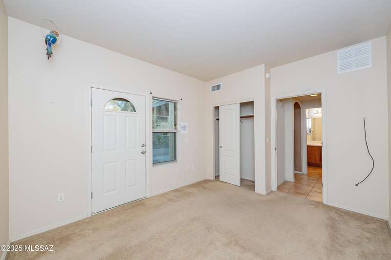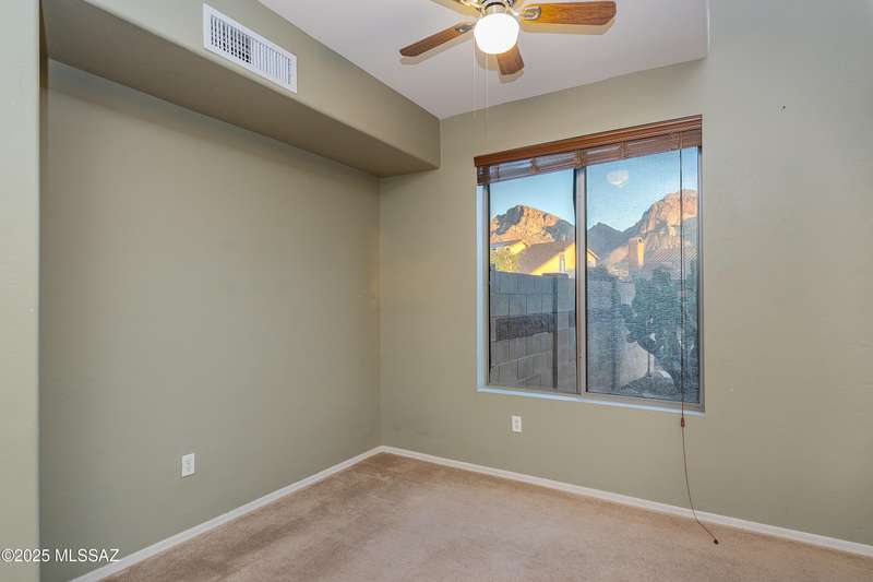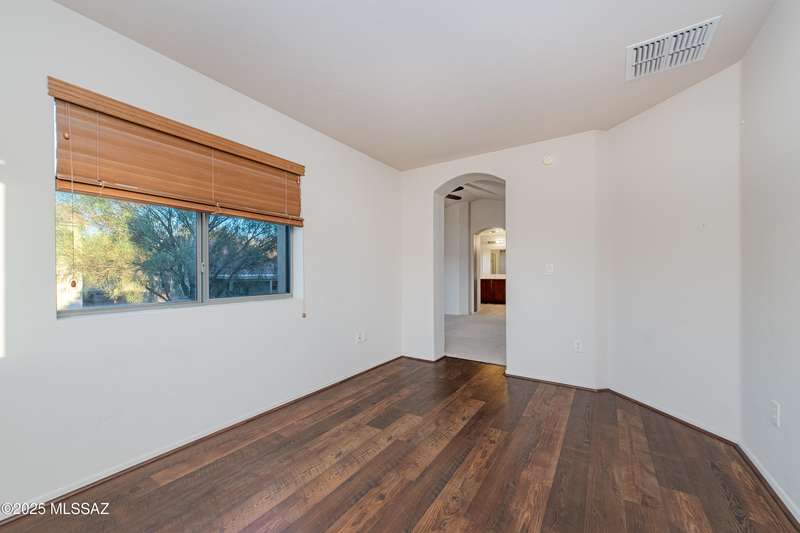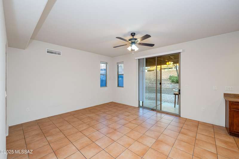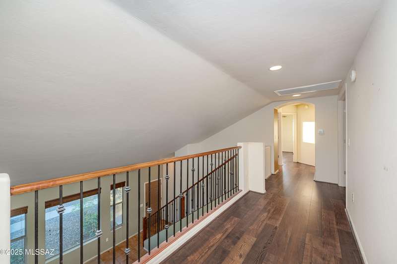 Welcome Home to Oro Valley Living! Ideally situated on a quiet cul-de-sac and corner lot with mature trees, this 3-bedroom, 3-bath home offers flexibility and comfort. The versatile first floor includes a full bedroom and bath with a private rear entrance, perfect for use as an office, guest quarters, or a mother-in-law suite.The front entry opens to a living and dining area, beautifully accented by a wrought-iron staircase and an open loft above. Toward the back of the home, you'll find the kitchen, casual dining area, and family room, an inviting space for everyday living and entertaining.Upstairs, the spacious primary suite includes an attached sitting room or dressing area that can easily be converted into a fourth bedroom.