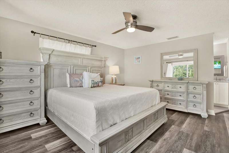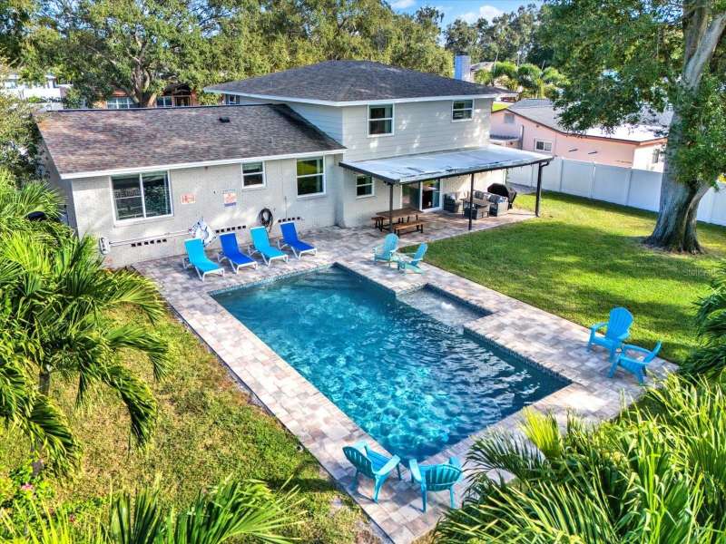 Welcome to this spacious 4-bedroom, 3-bathroom home in Seminole’s highly sought-after Whispering Pines Neighborhood! Nestled on a large corner lot on a low traffic cul-de-sac, this beautifully landscaped property features an inviting front entrance and impressive curb appeal. Step inside to a split-level open floor plan with an UPDATED KITCHEN, bright living and dining areas, and a cozy lower-level family room with a wood-burning fireplace perfect for gatherings. The 1st level also includes a full bath and convenient interior laundry room! Upstairs, you’ll find 4 generous bedrooms with ample closet space. The oversized garage with NEW EPOXY FLOORING provides plenty of room for vehicles and storage. Recent updates include a NEW A/C MOTOR, irrigation pump, new pool heater/cooler pump, and new electric panel. Enjoy your private backyard oasis featuring a BEAUTIFUL PEBBLETEC SALTWATER POOL, spacious patio, and large yard ideal for entertaining. Located in a NON-FLOOD ZONE, close to award-winning Gulf beaches, top-rated schools, parks, shopping, and dining. Don’t miss your chance to call this Whispering Pines gem home—schedule your private showing today!