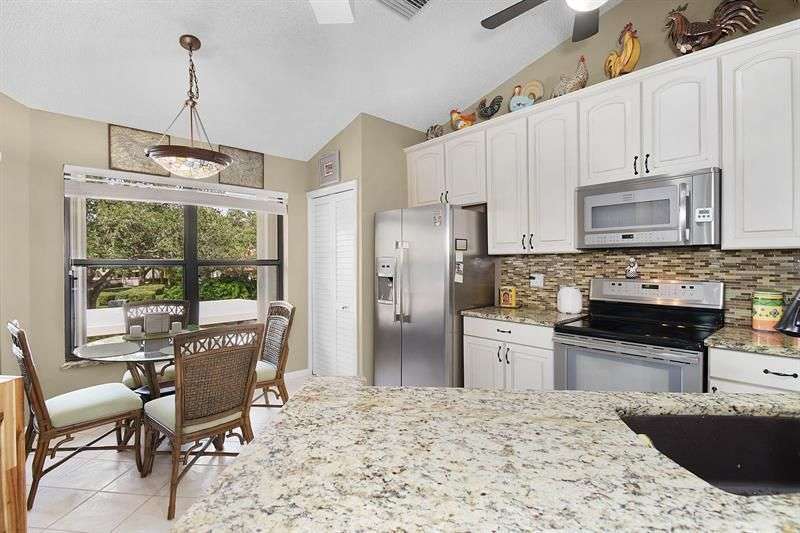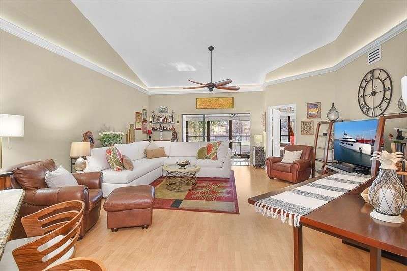 COME SEE THIS GORGEOUS REMODELED 2 BED, 2 BATH CONDO. OPEN KITCHEN WITH UNDER COUNTER LIGHTING AND GRANITE COUNTERTOPS, LOVELY COFFE BAR AND BREAKFAST NOOK . SPACIOUS LIVING ROOM OFFERS CROWN MOLDING WITH INDIRECT LIGHTING AND VAULTED CEILING . THE LANAI WAS CONVERTED INTO AN EXTRA AIR CONDITIONED ROOM WITH DOUBLE HUNG WINDOWS AND HAS A SPECTACULAR LAKE VIEW. BEAUTIFUL BATHROOMS PROFESSIONALLY REDONE. ONE COVERED PKG + COURTYARD. UPDATES: NEW 2025 AC + DUCTWORK, 2023 HOT WATER HEATER , SPECIAL WINDOW TREATMENTS FOR EXTRA SUN PROTECTION, FULL SIZE WASHER-DRYER. MONTHLY FEES OF $700 INCLUDE, CABLE + 2 POOLS, TENNIS, PICKLE BALL AND LIBRARY. SOCIALLY ACTIVE 55+ COMMUNITY LOCATED CLOSE TO ALL SERVICES AND 15 MINUTE DRIVE TO BEACHES . DOG SIZE MAX 15 LB. MUST OWN FOR 2 YEARS BEFORE RENTING.